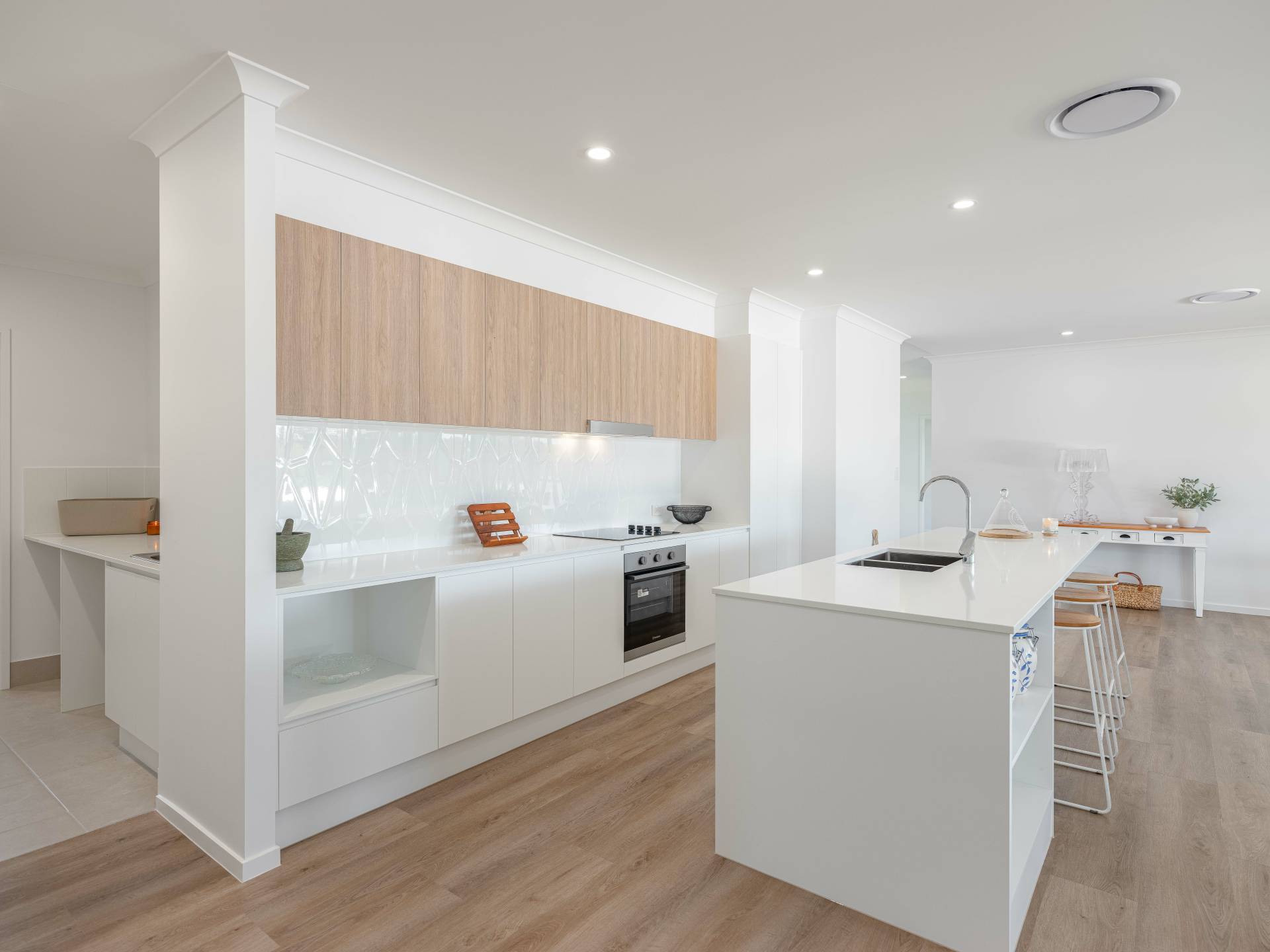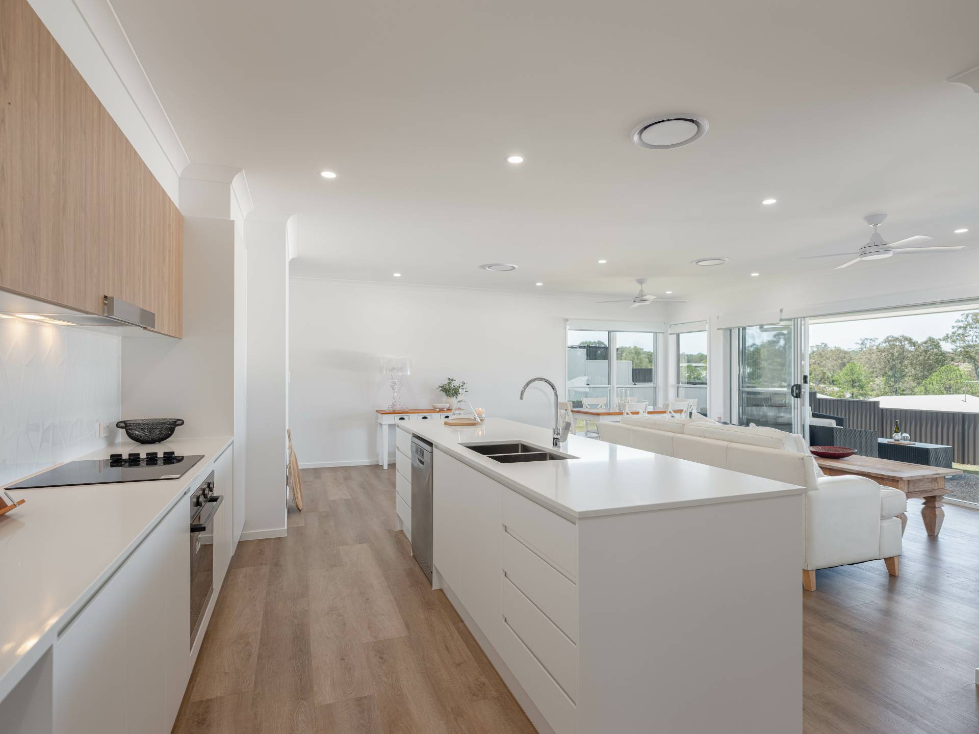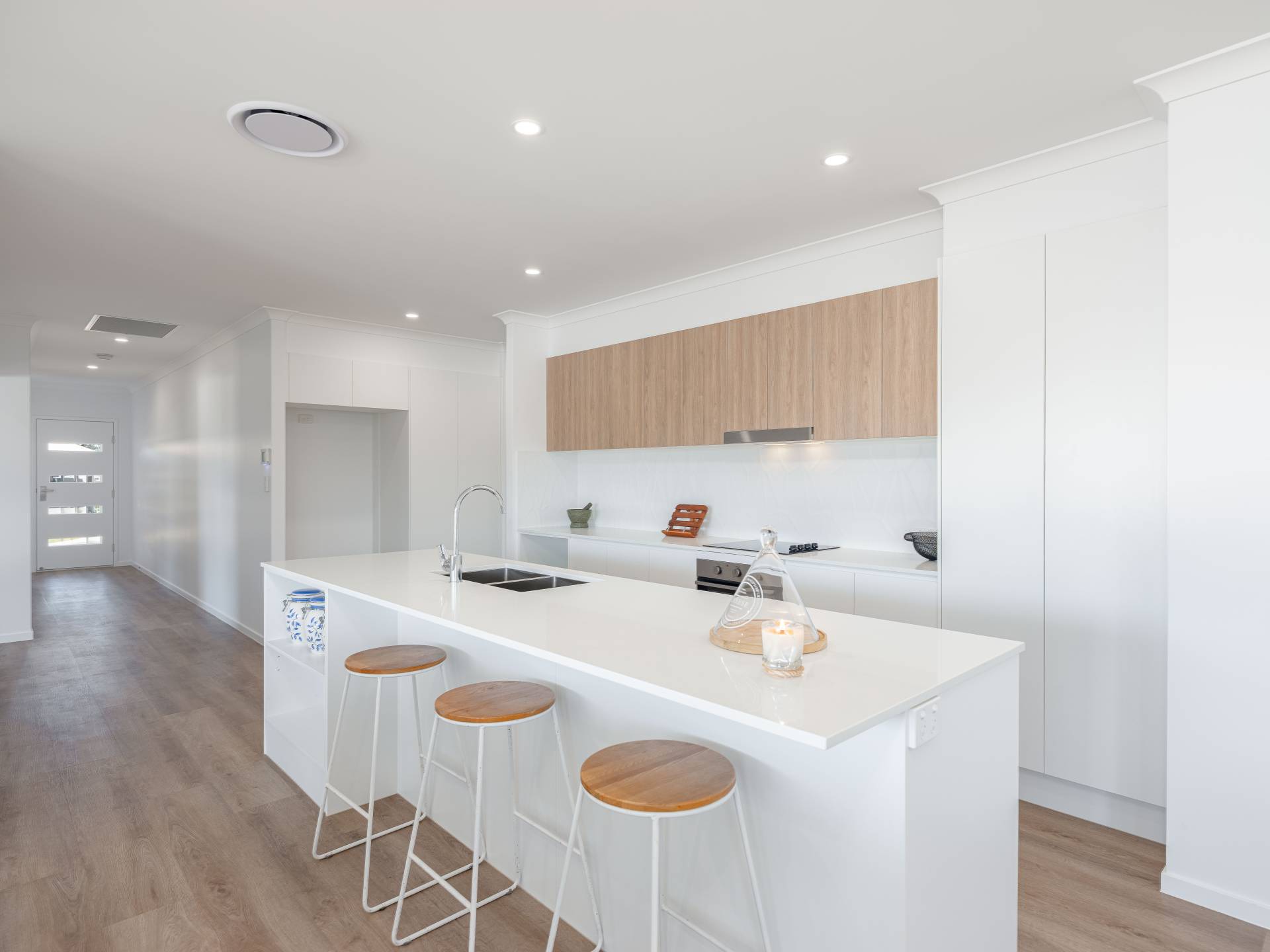 Perched on an elevated, flat 712m² block, this beautifully finished brand new modern-style home captures refreshing breezes and sweeping views... the perfect blend of elegance, comfort, and modern family living!