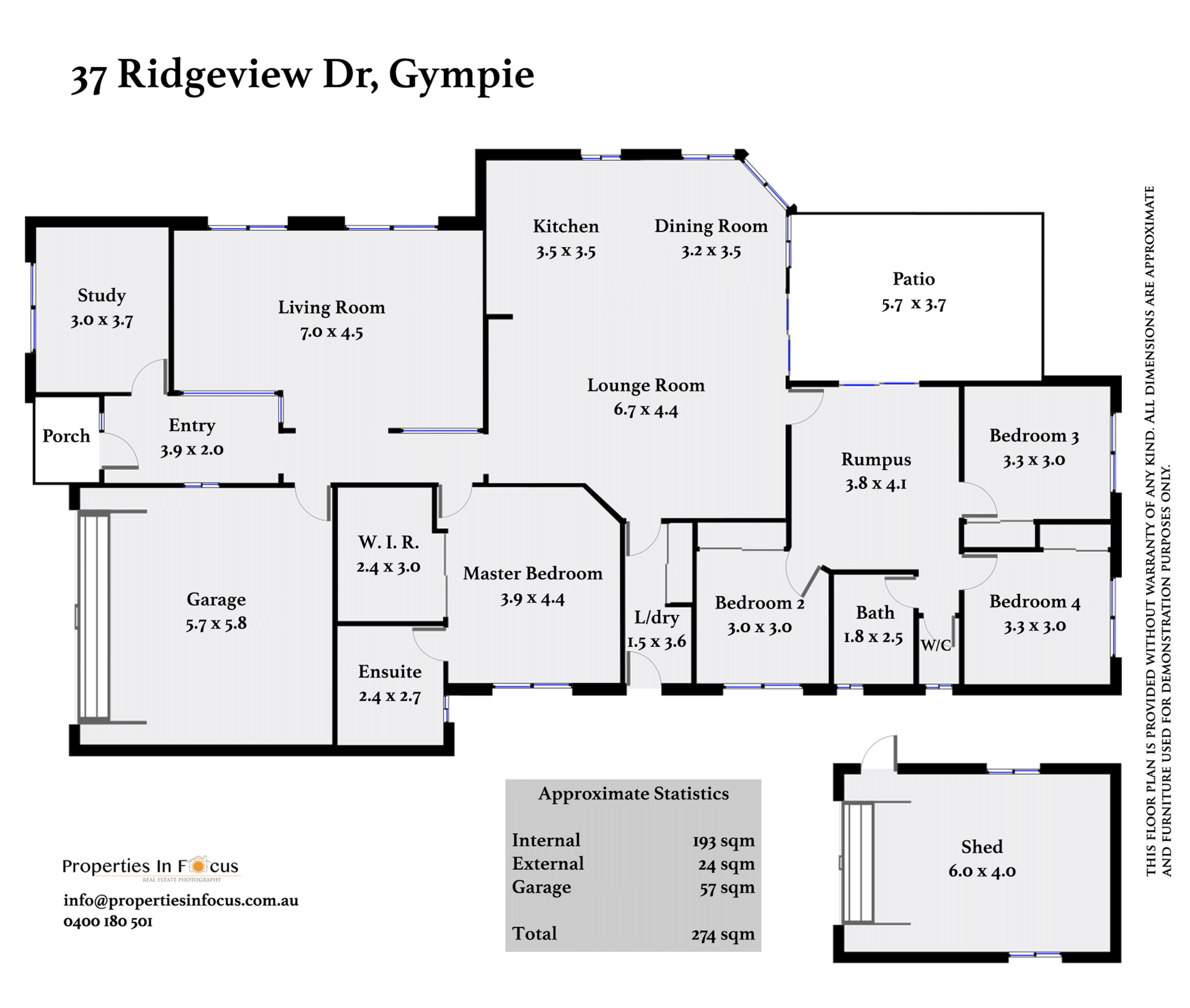 6m x 4m shed with separate access at side of house.