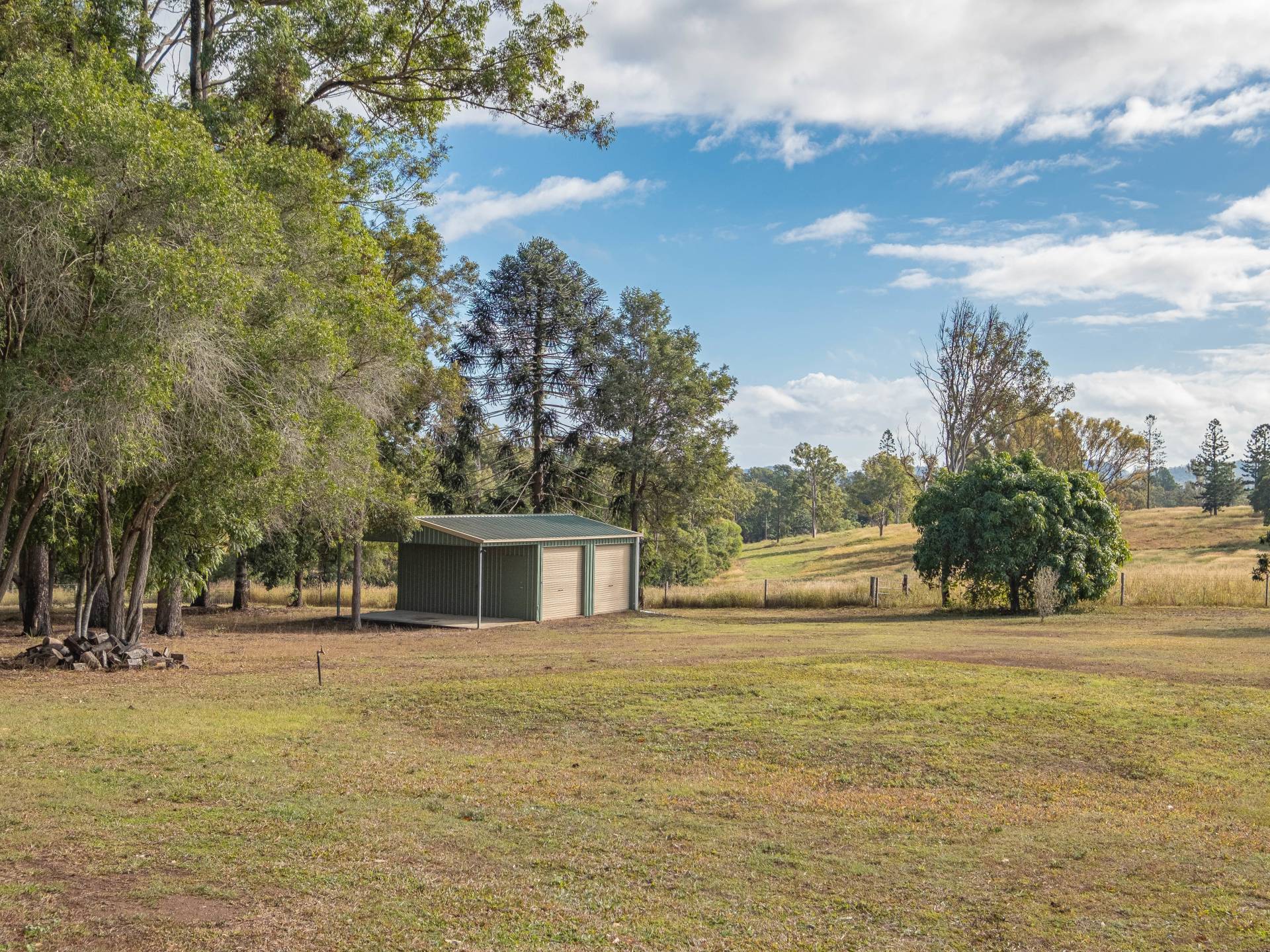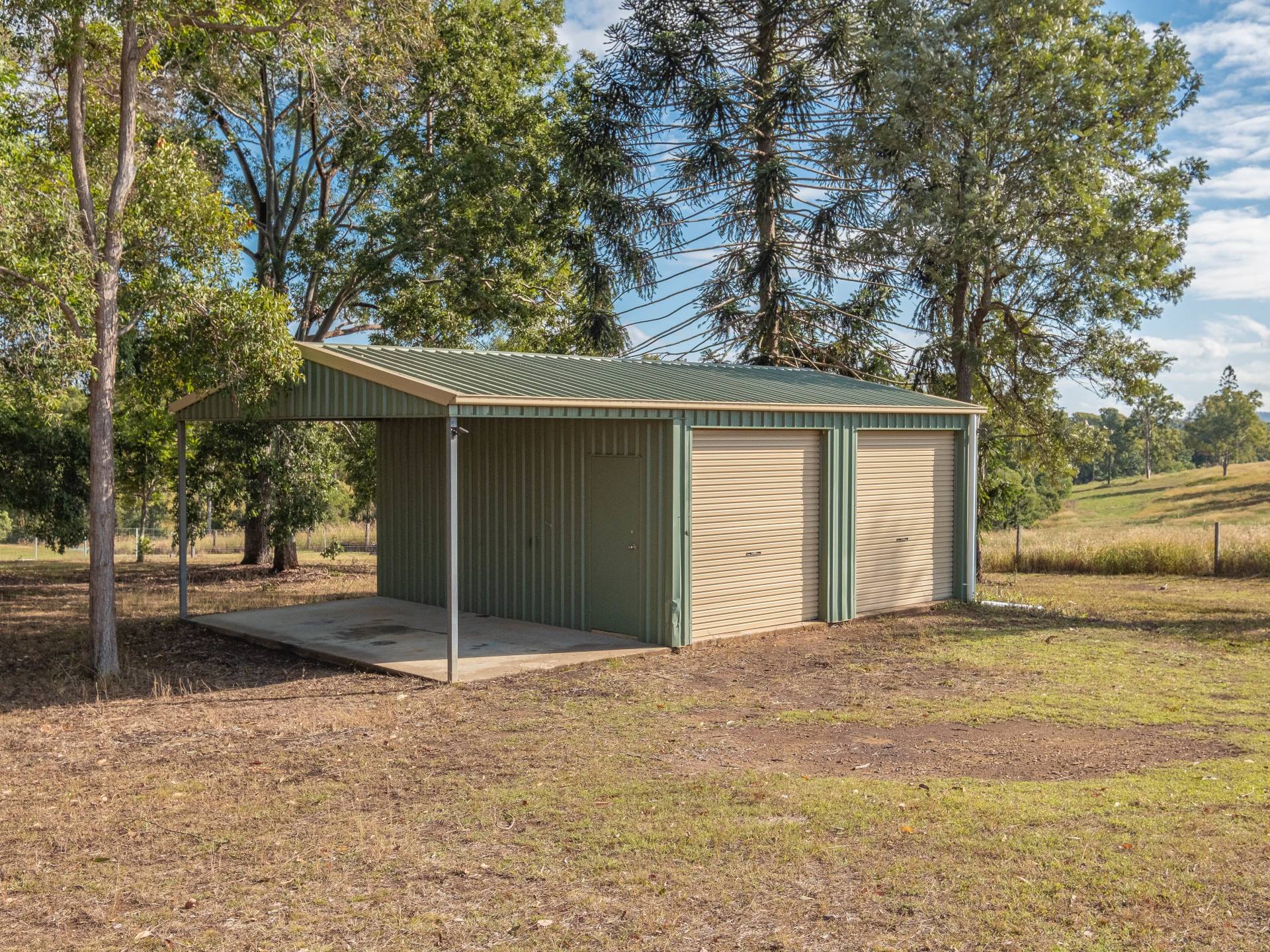 Four car accommodation with three lock-up under the house and a separate 9m x 6m shed will house all the little extras.