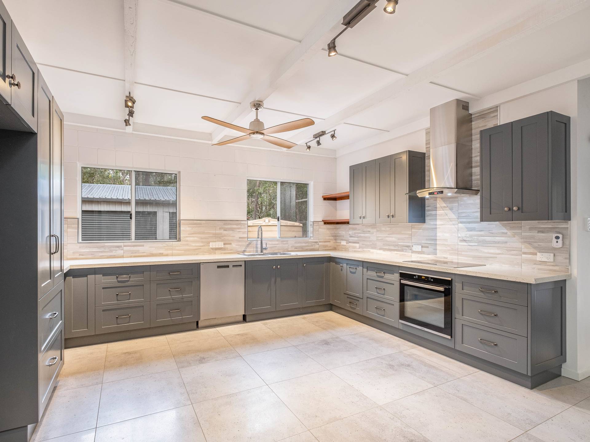 This renovated modern steel framed home set back on a 6,441m2 block is set amongst peaceful surroundings. Relax on the front or rear, undercover verandah or sit and relax down by the seasonal creek adjoining the property. Listen to the birds and watch the local wildlife. The home features open plan living/ dining with reverse cycle air conditioning and a newly renovated kitchen with plenty of storage, stainless steel cooking and rangehood.