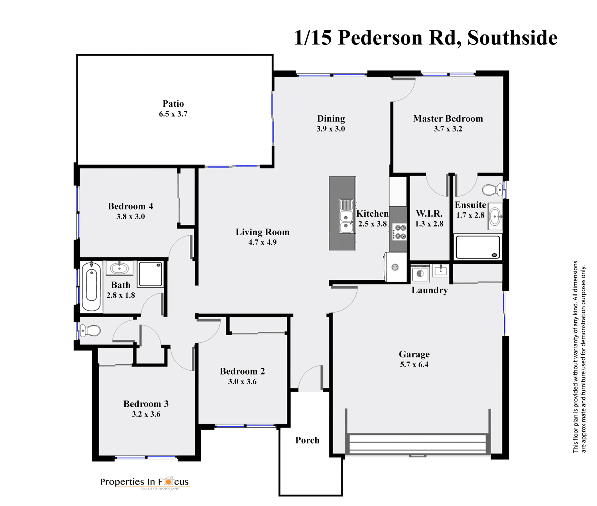 4 good sized carpeted bedrooms with ceiling fans and built in robes.