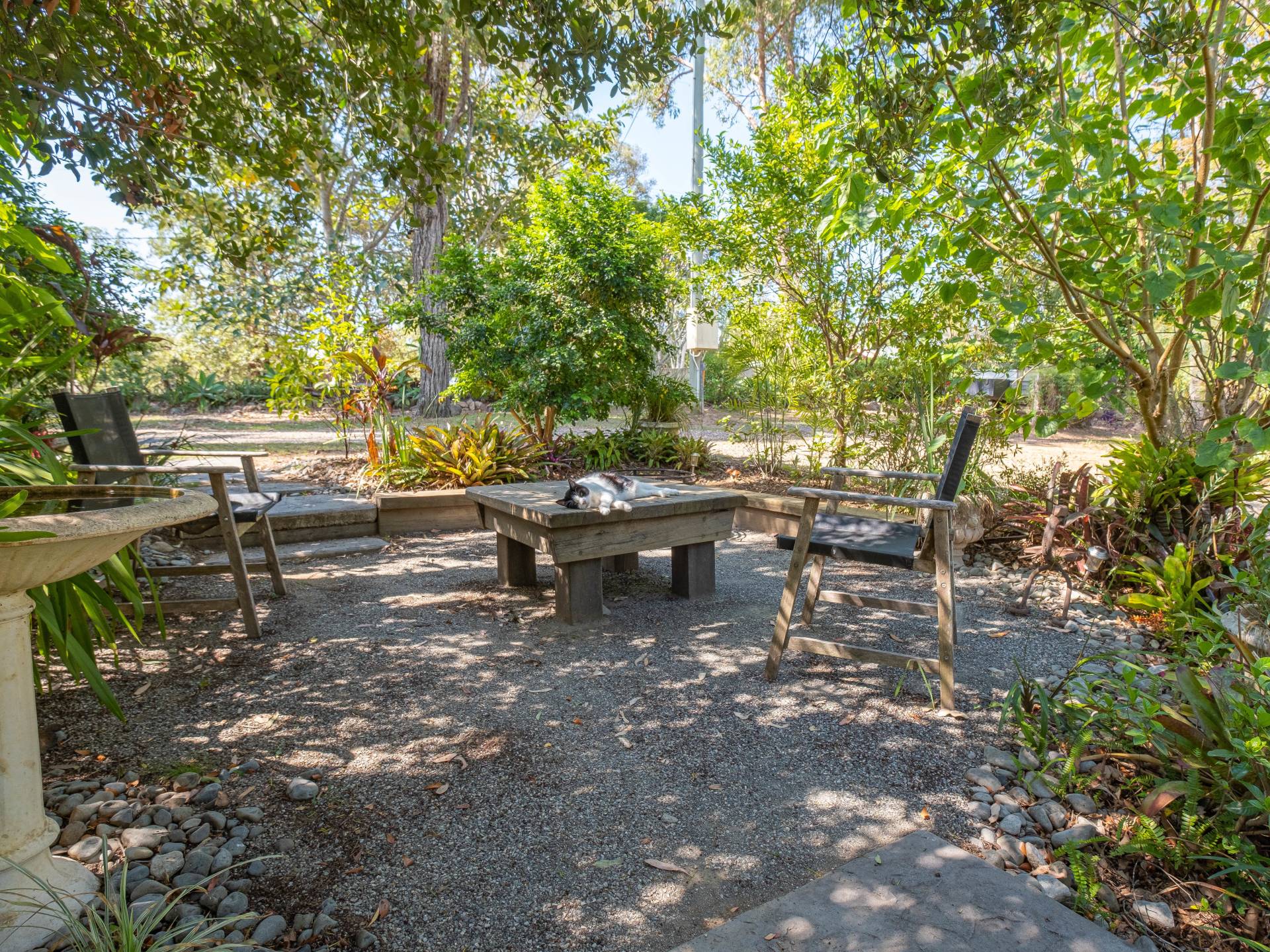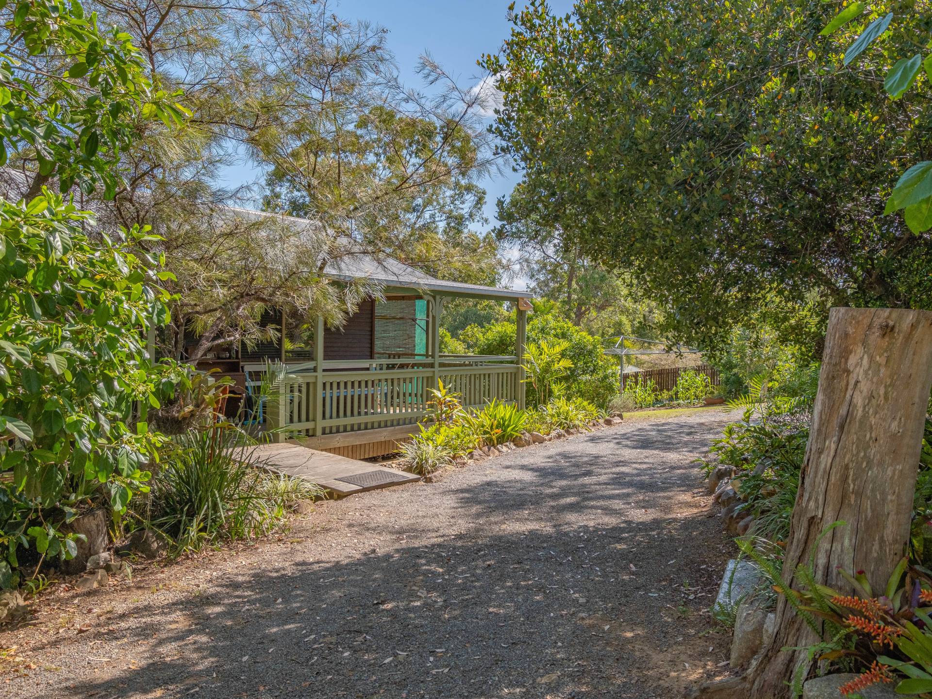 The home has a huge private covered verandah at the front overlooking large mature trees and gardens.
