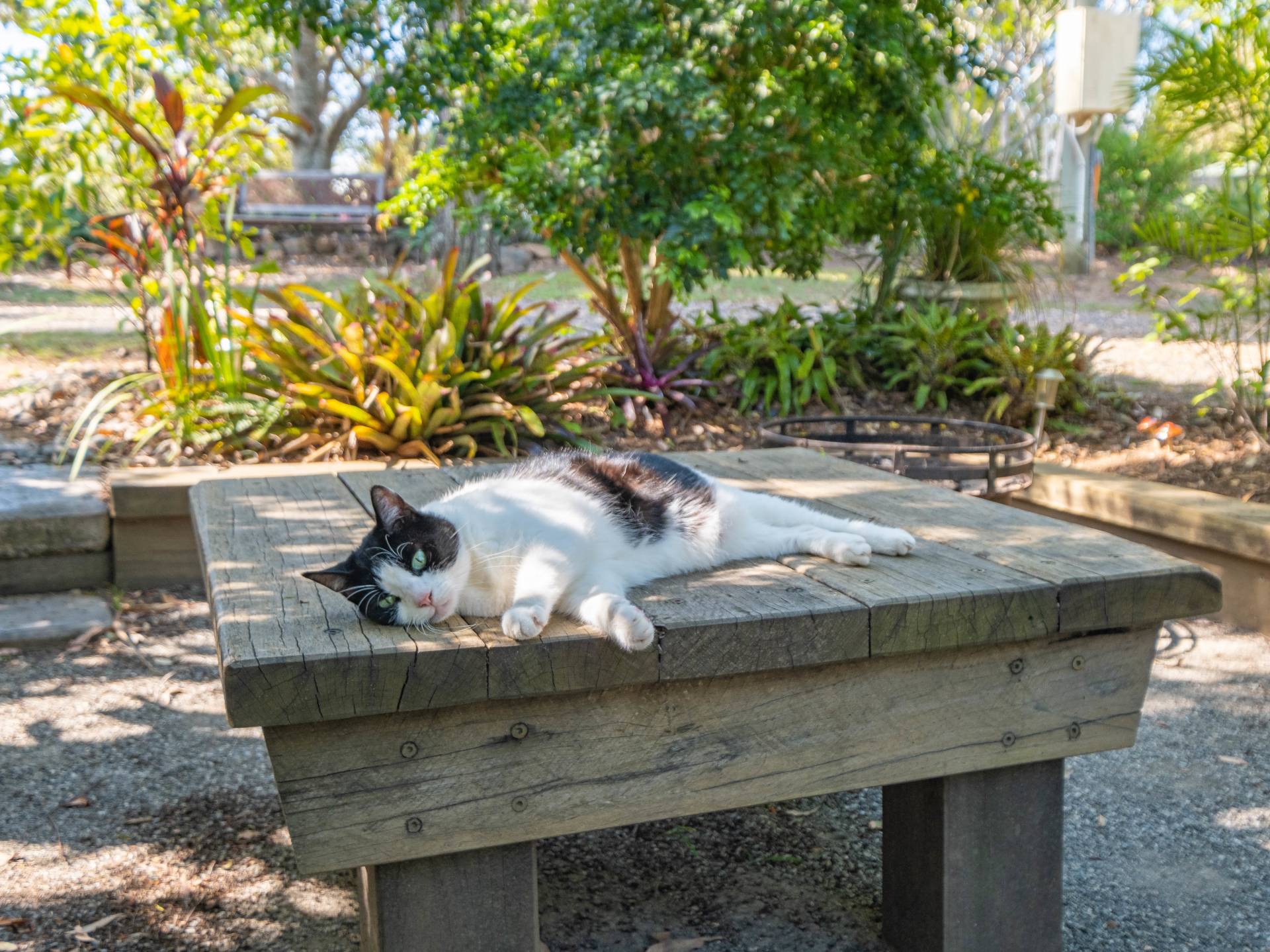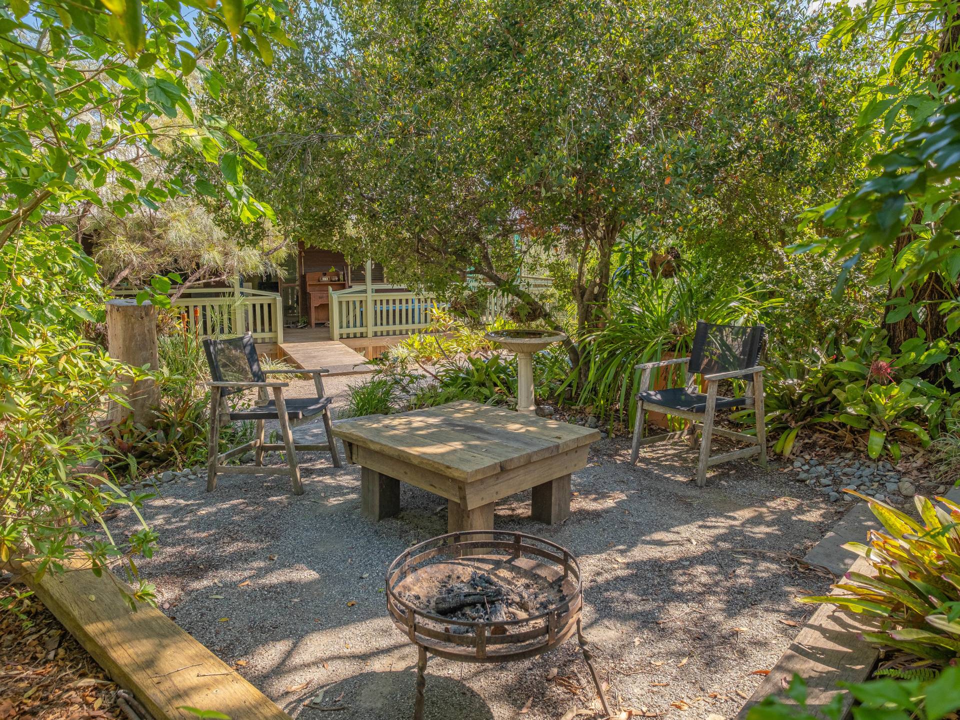 Multiple private outdoor seating areas situated around the property.