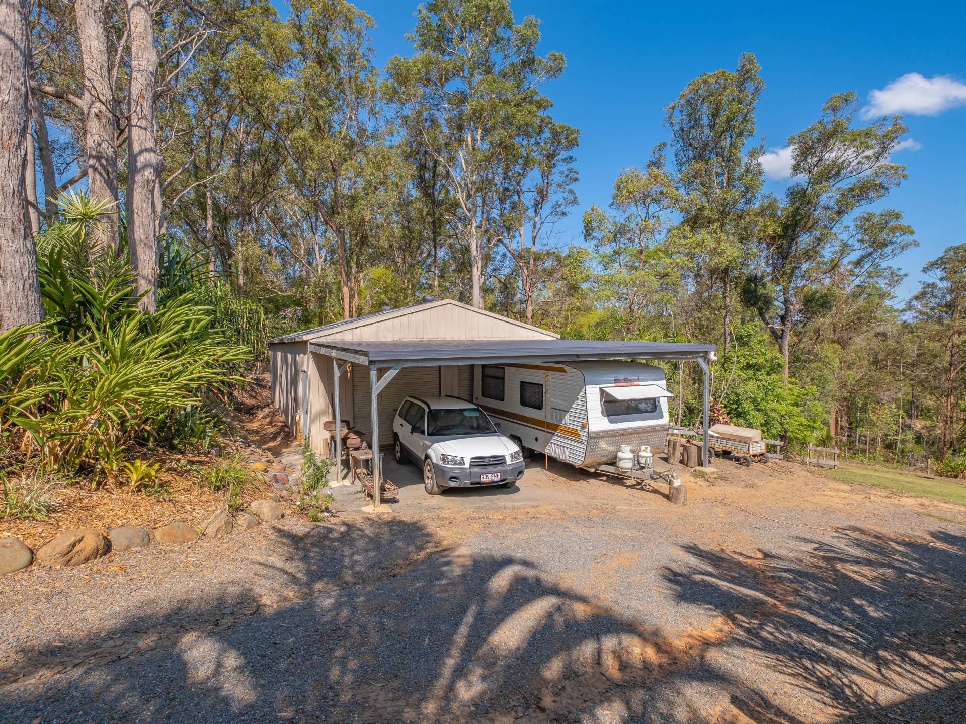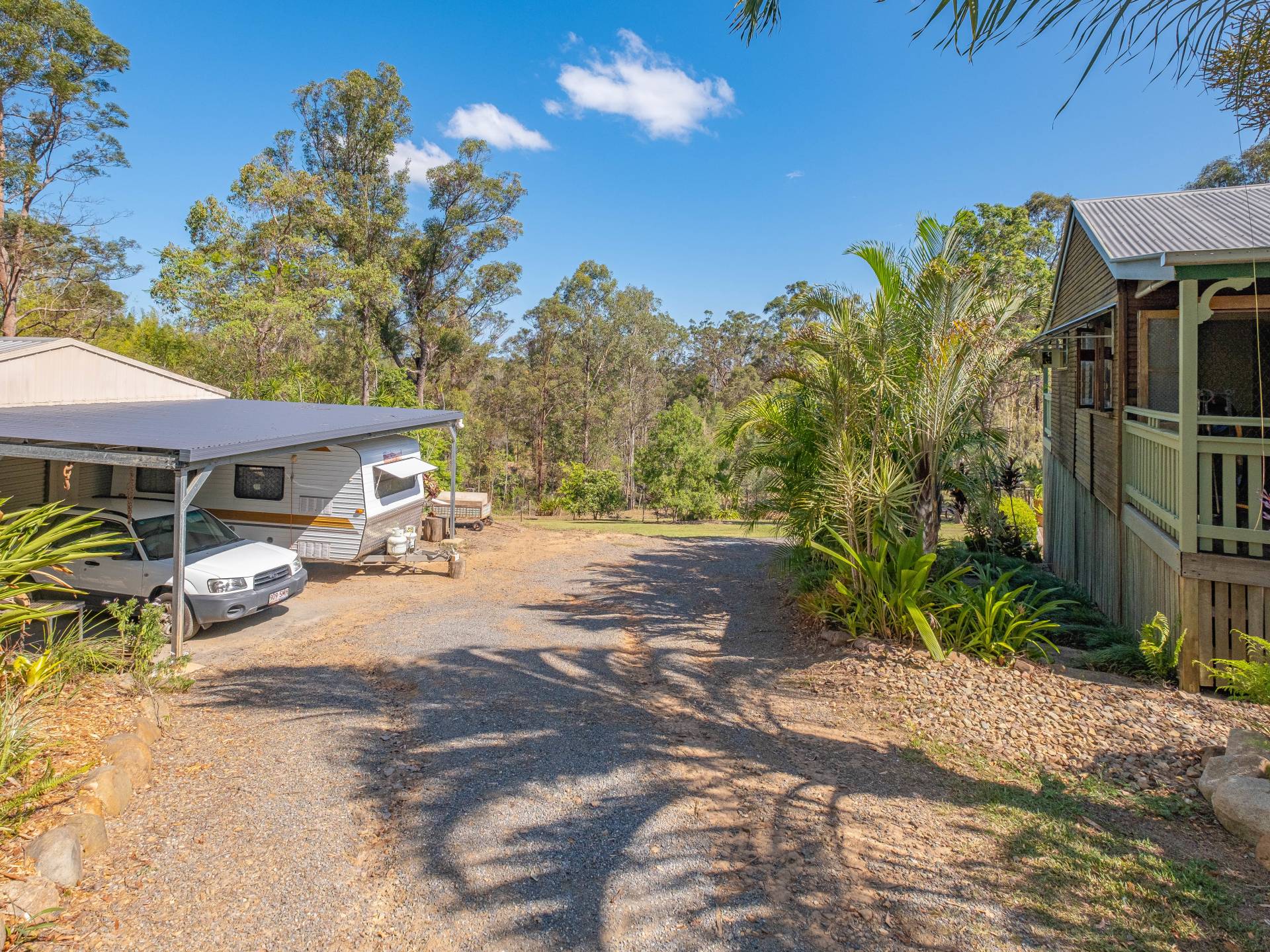 Space to park the caravan with annex out the front.