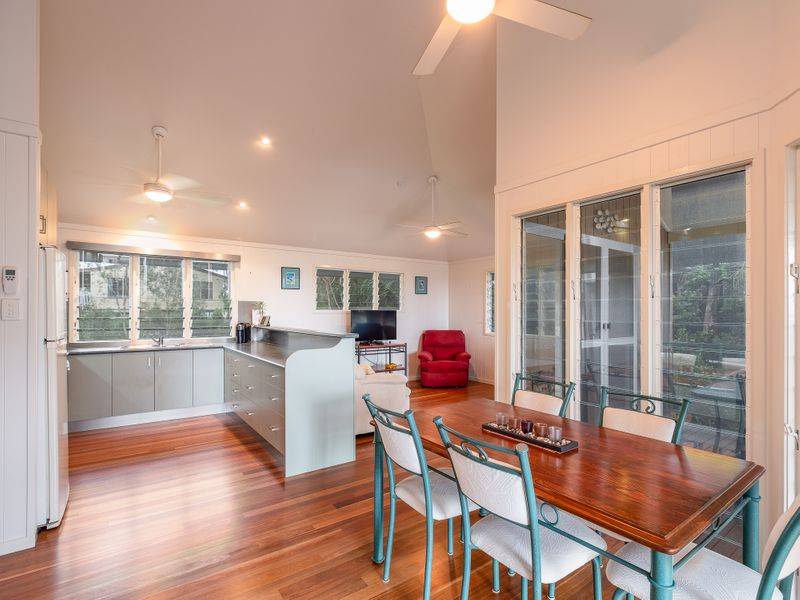 Open plan living, dining, kitchen with stunning timber floors throughout (timber locally sourced from Fraser Island)