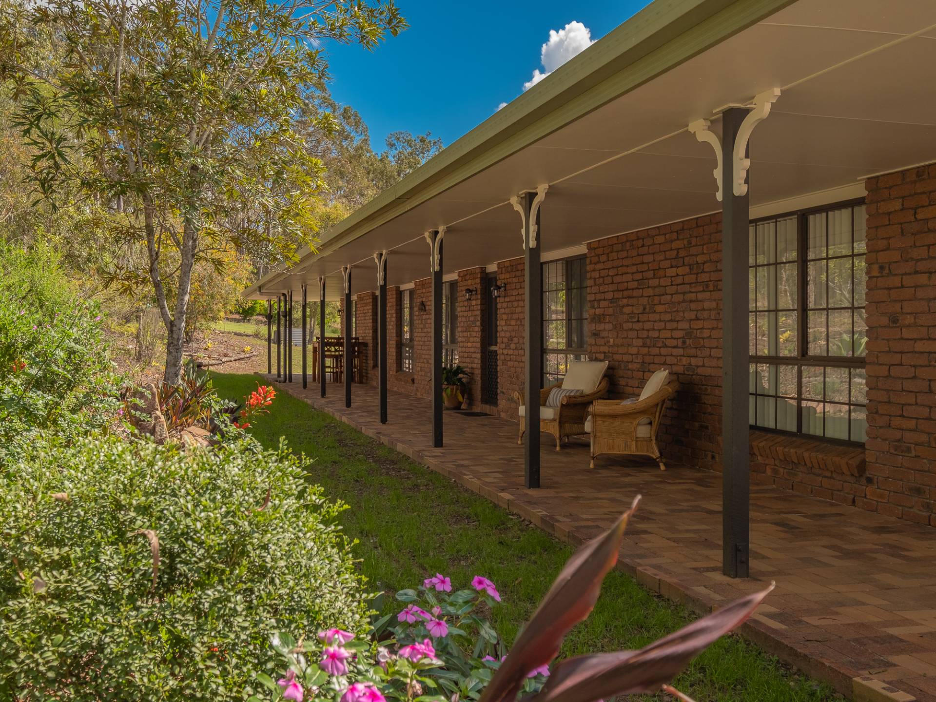 Solid brick lowset home with a new colourbond roof surrounded by beautifully maintained and private established gardens.