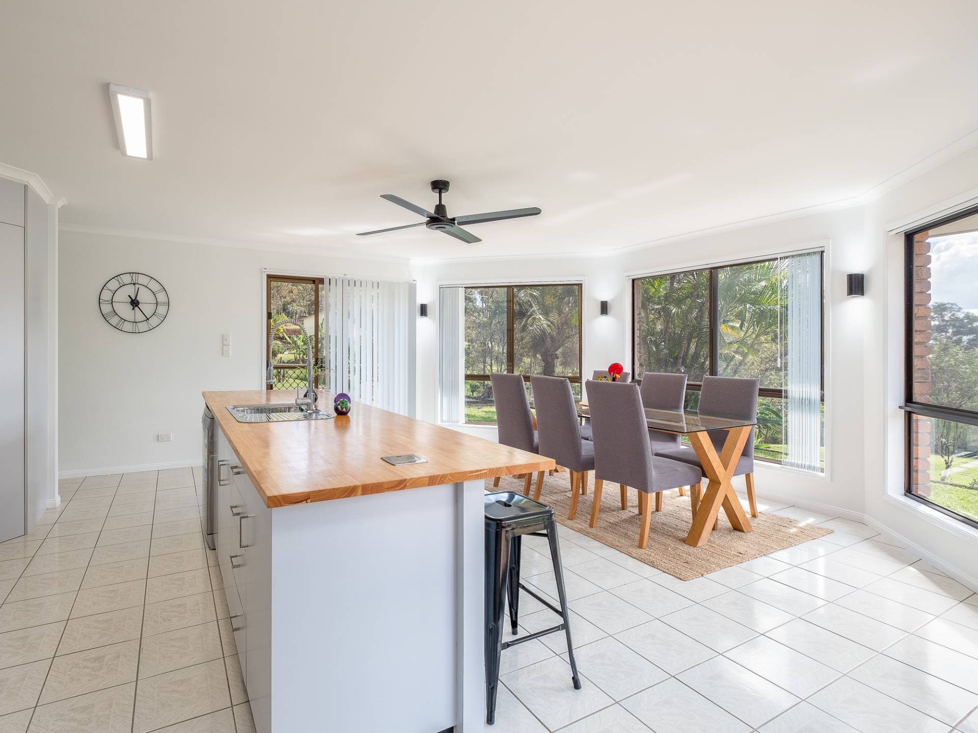 Newly renovated large open plan kitchen/ dining with stainless steel electric appliances, pantry and heaps of cupboard space.