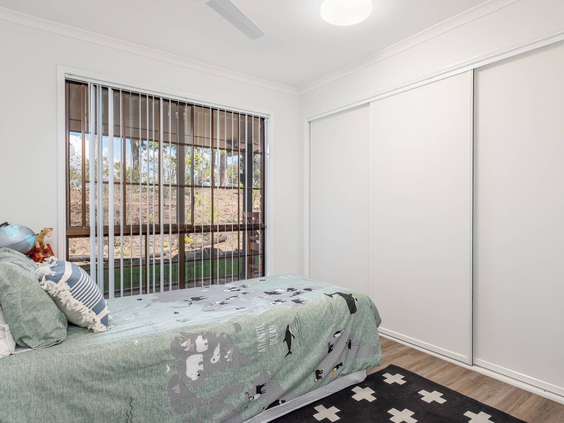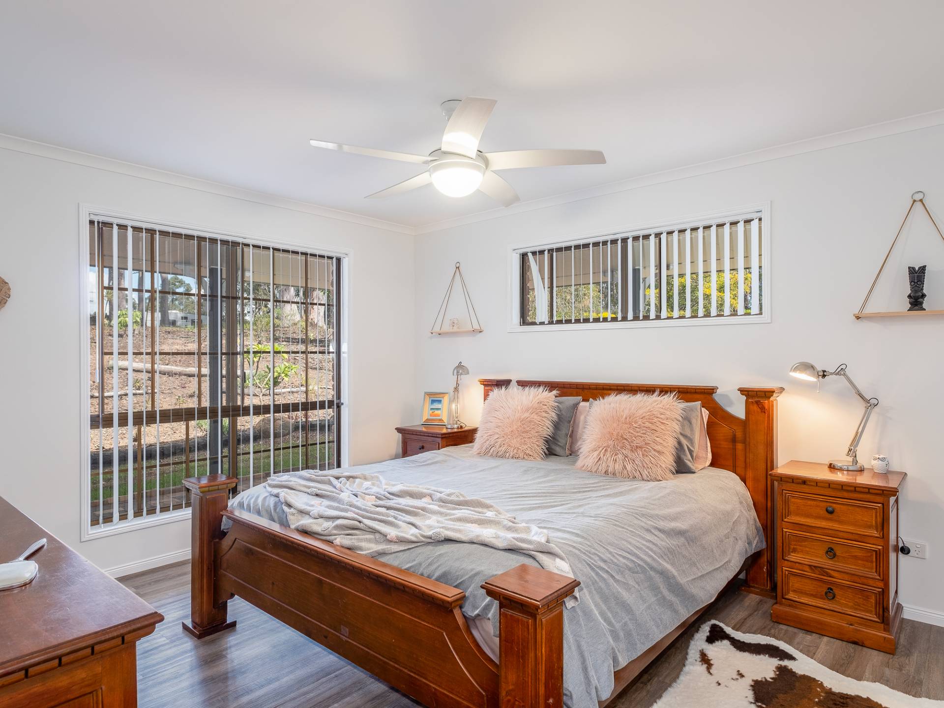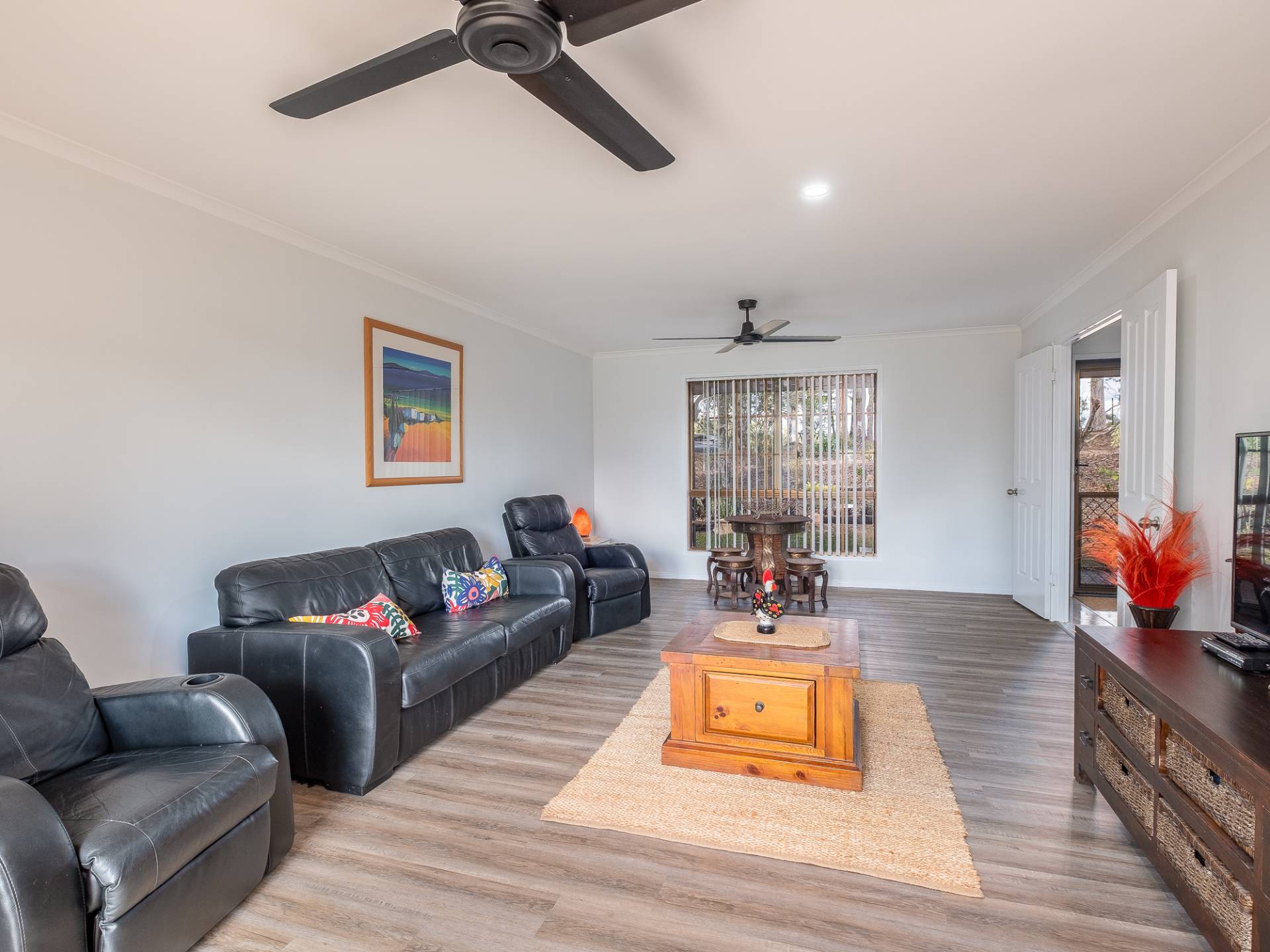 4 bedrooms with new contemporary timber look floors, ceiling fans and large built in robes.