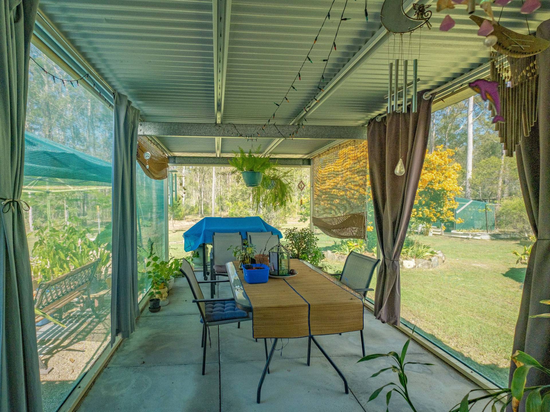 The feature of the home is the enclosed outdoor area where you can sit year round bug free while still enjoying the peaceful acreage.