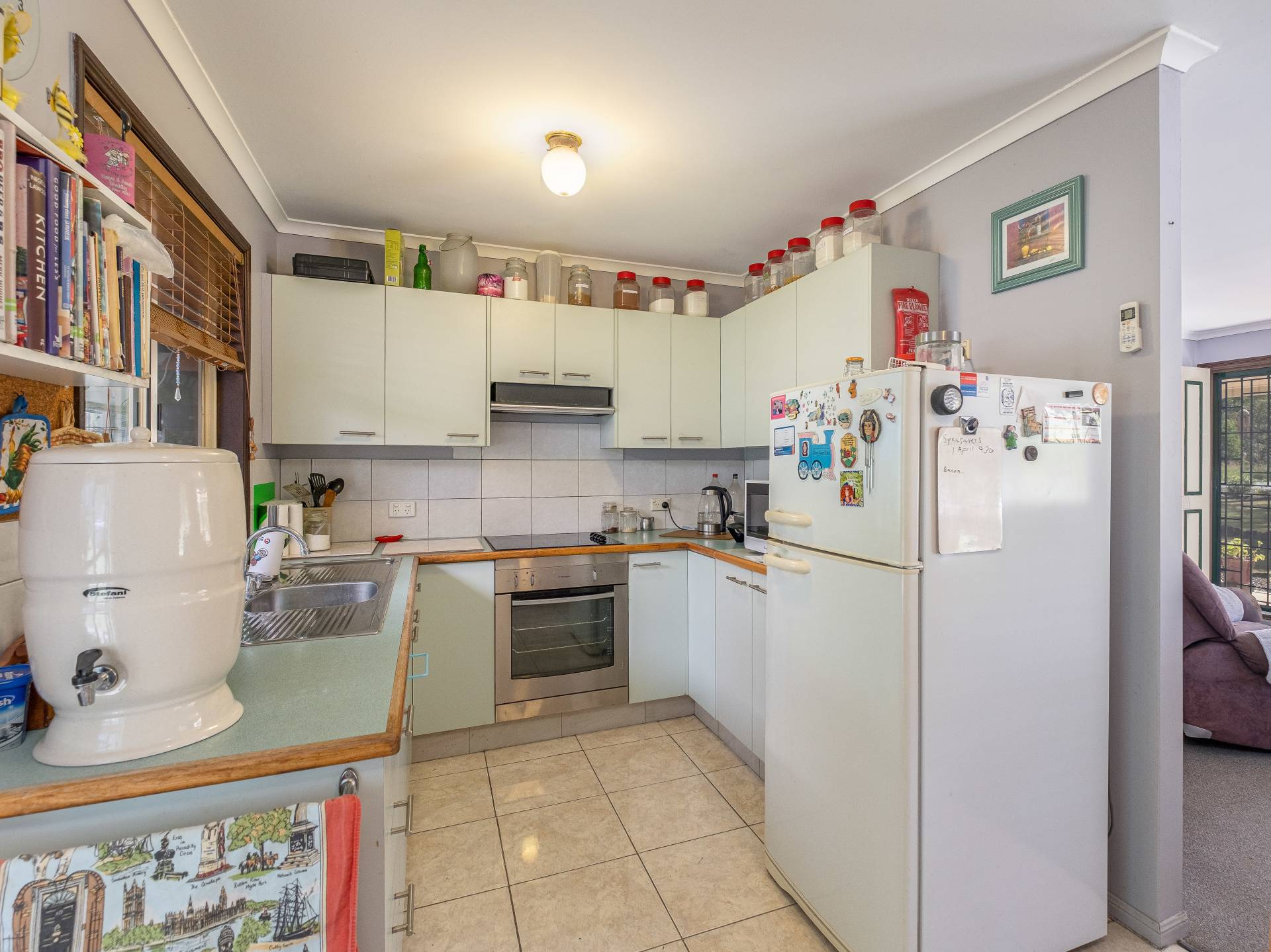 Open plan living/dining kitchen with doors leading to both the fully enclosed back verandah or the covered front patio.
