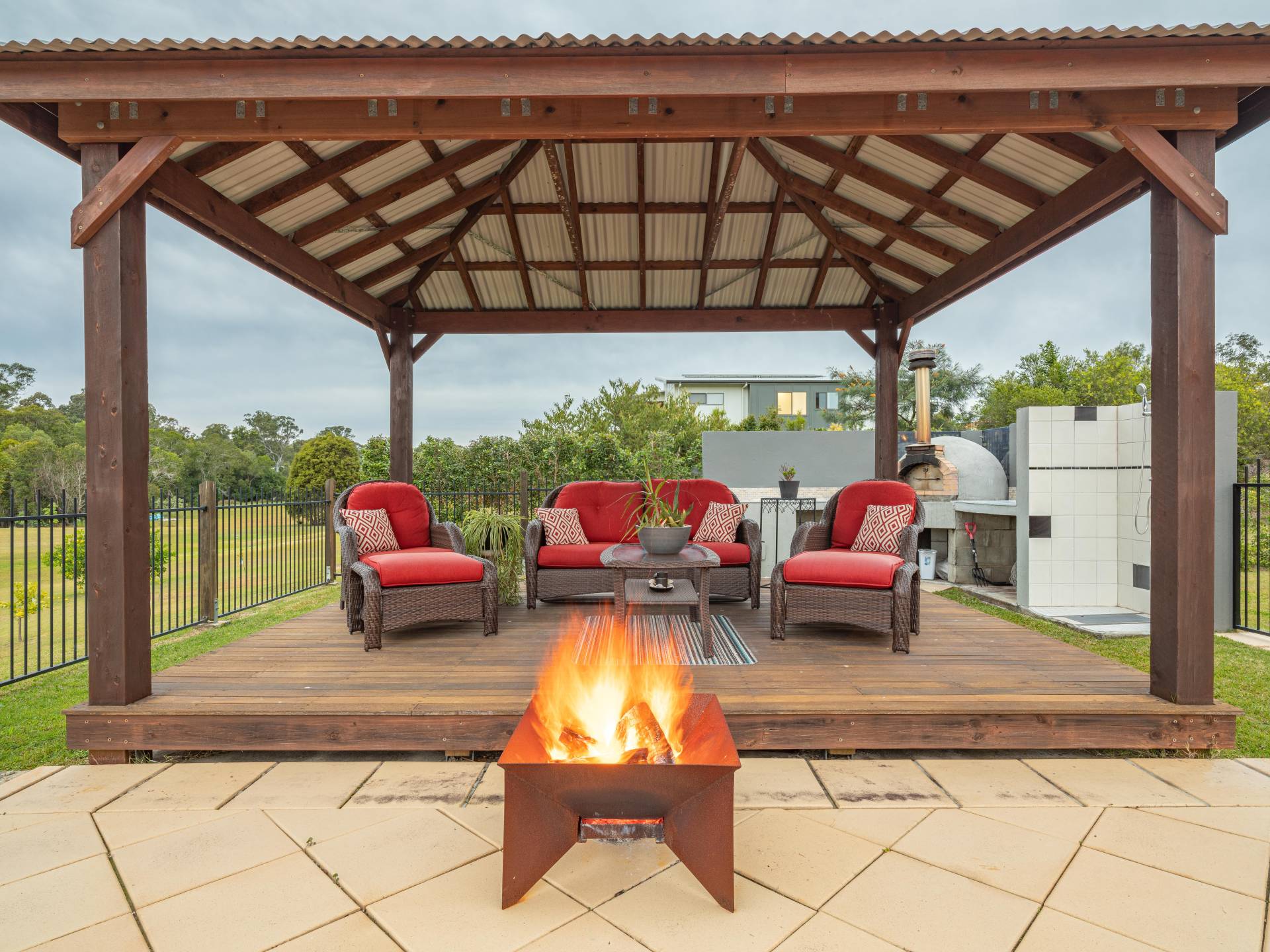 4.5m x 3.5m timbered gazebo overlooking the pool with adjoining pizza and tandoori oven, giving you the ultimate entertainers package