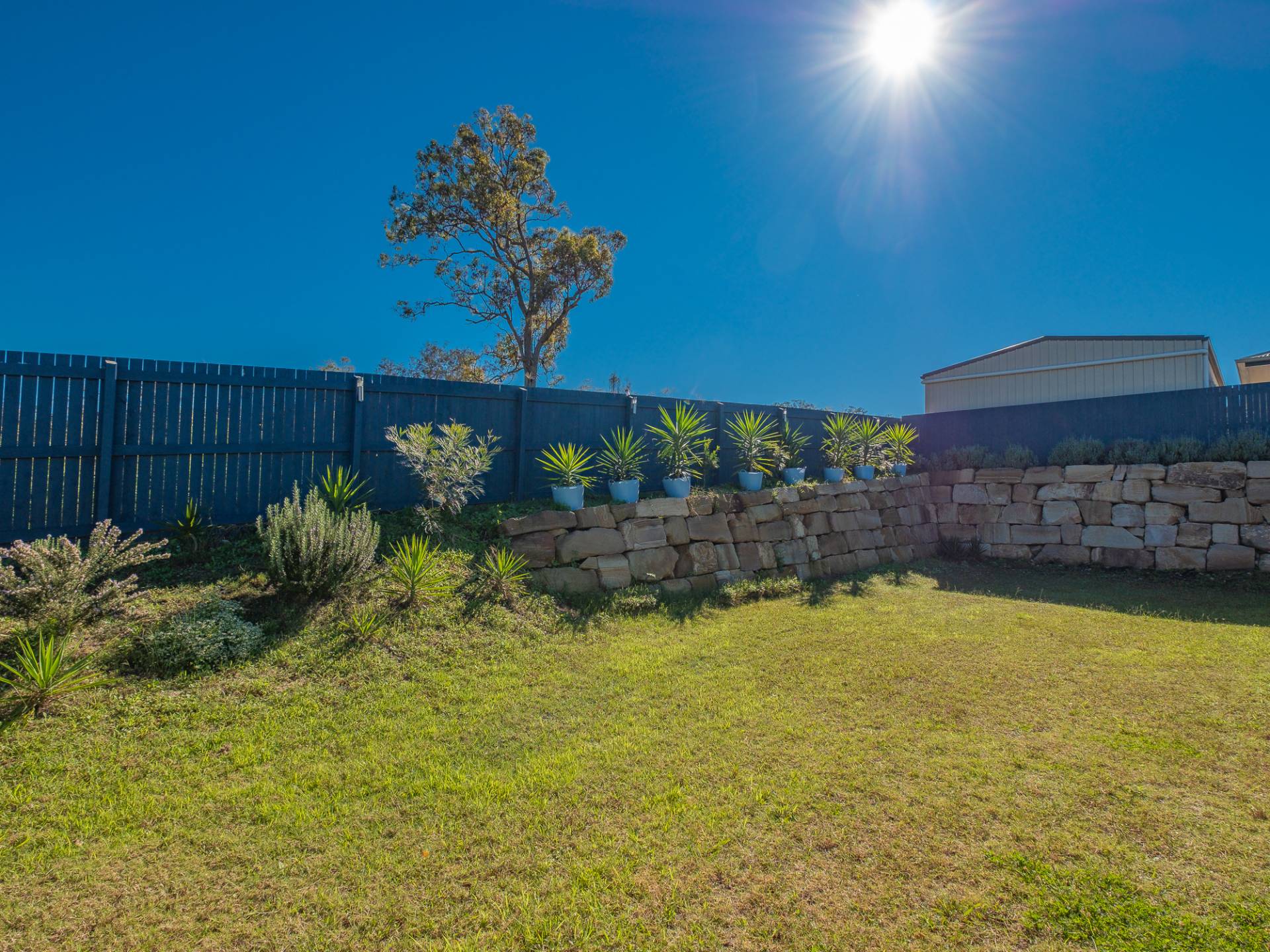 Flat landscaped block with sand stone retaining walls perfect for the family to play.