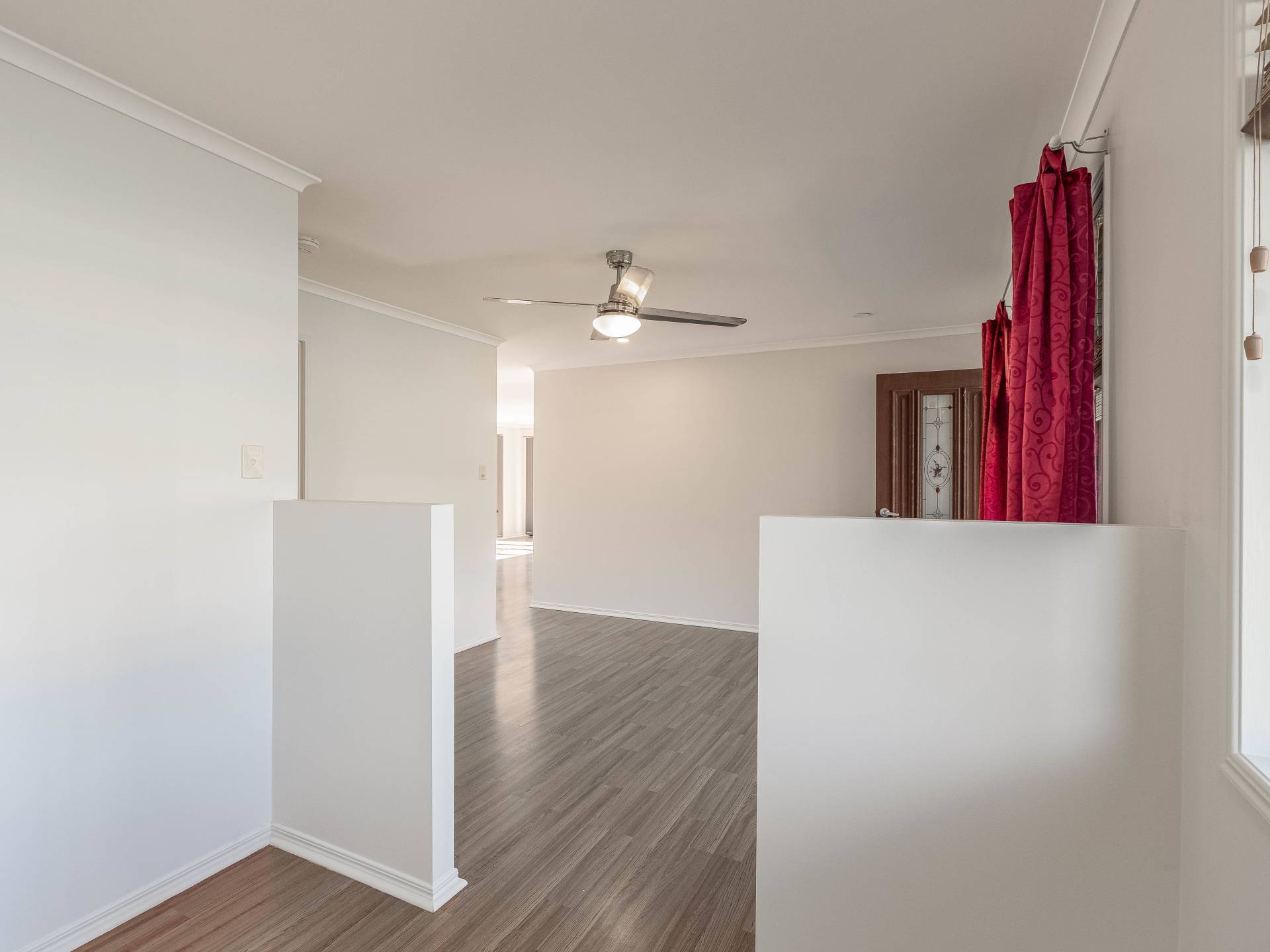 4 carpeted bedrooms with ceiling fans and built in robes.