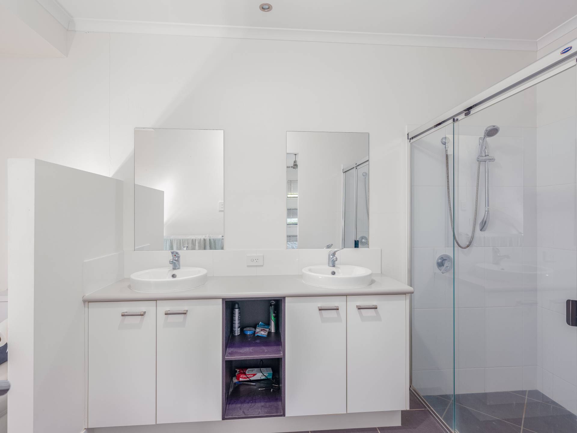 Ensuite has double vanity and two shower heads, plus a toilet.
