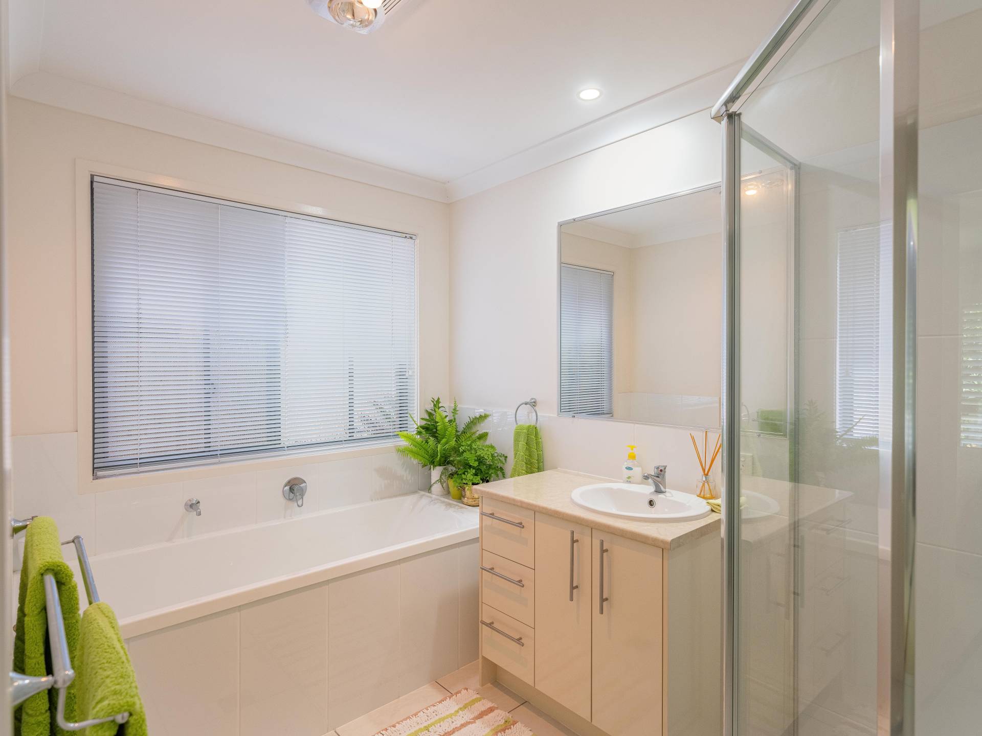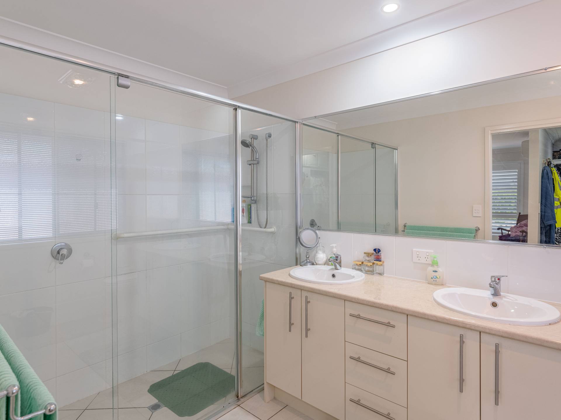 The master bedroom features, a large walk-in robe and ensuite with air-conditioning and ceiling fan.