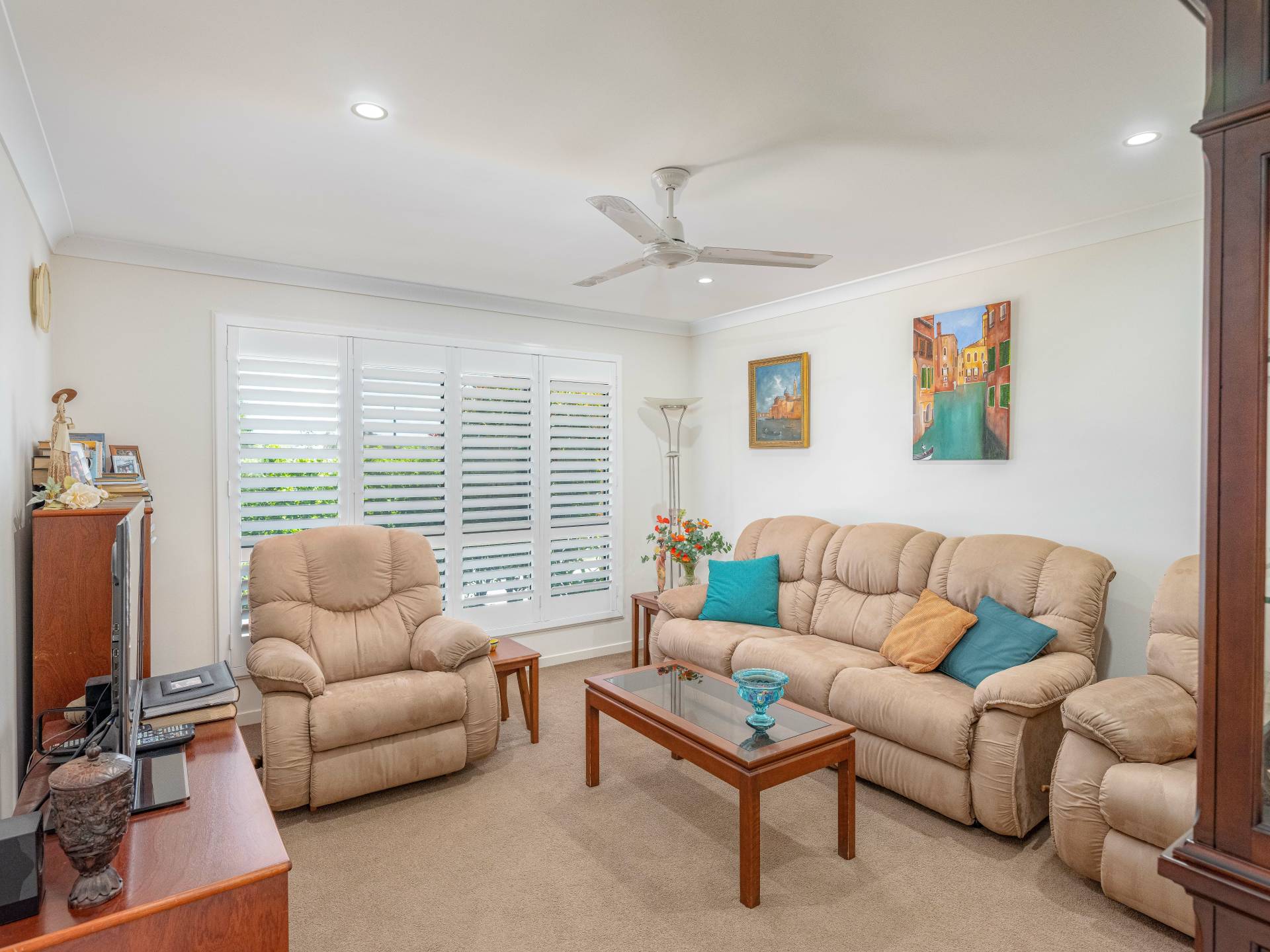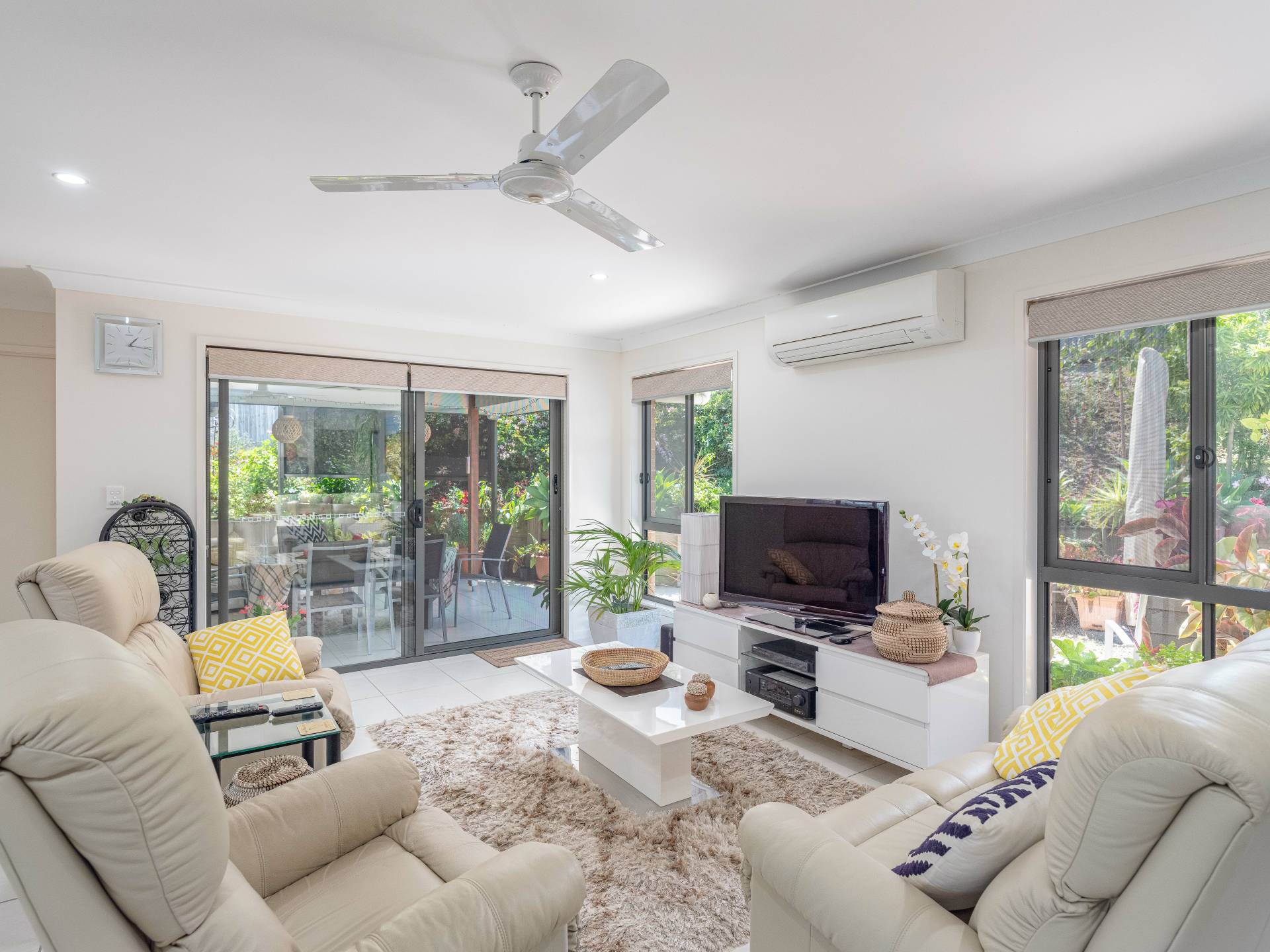 This home features a large open plan kitchen/living/dining area with air-conditioning and ceiling fans throughout.