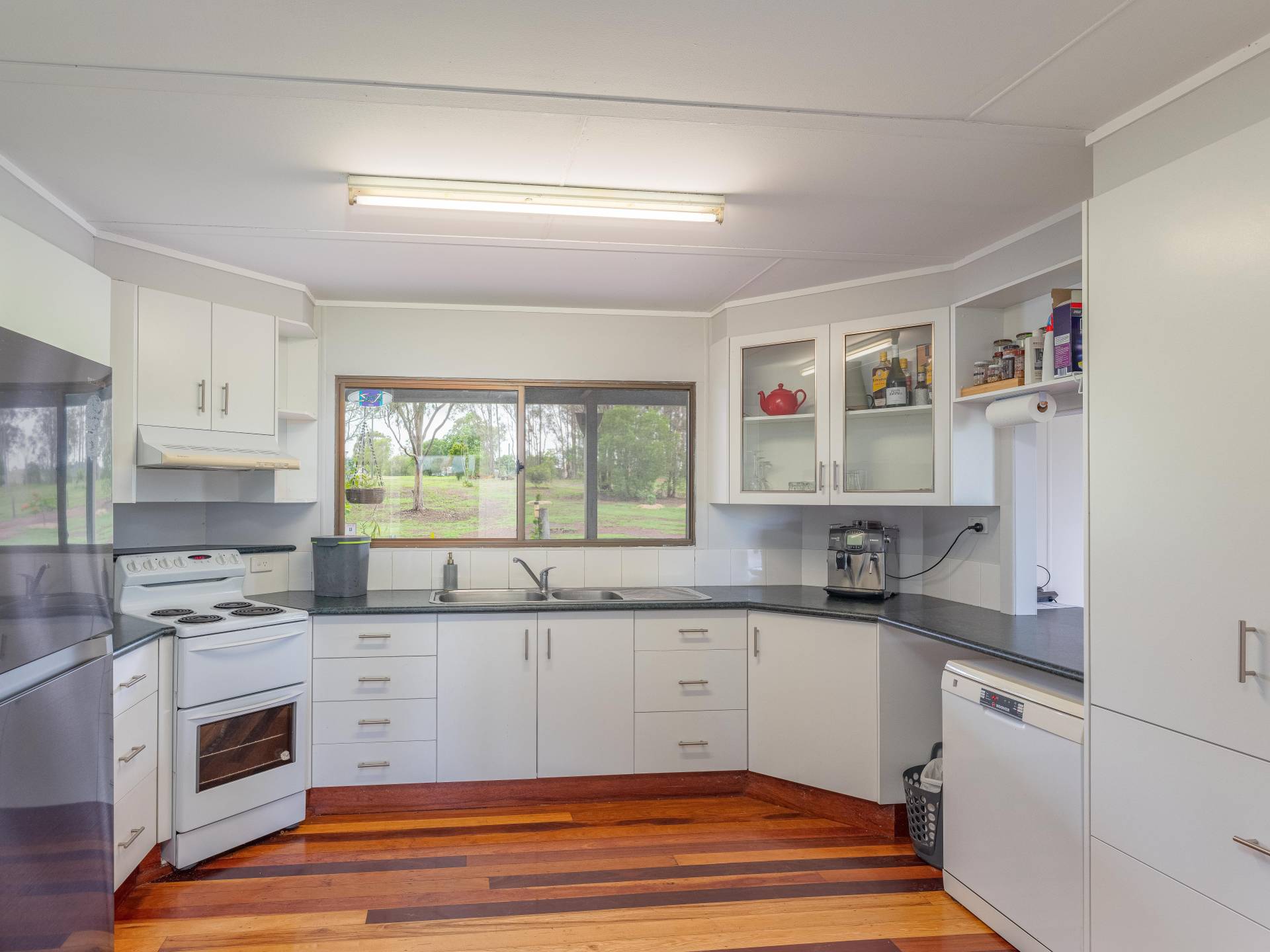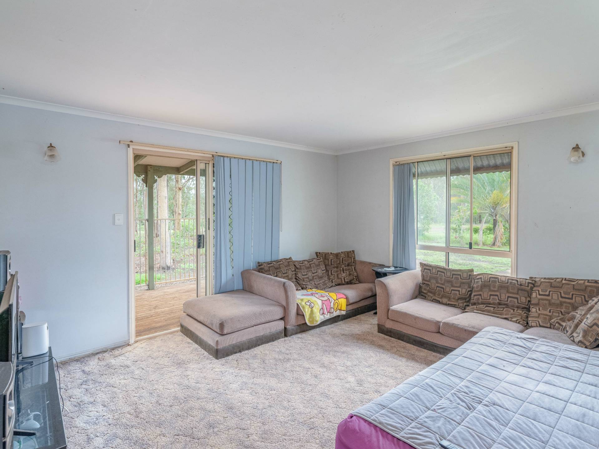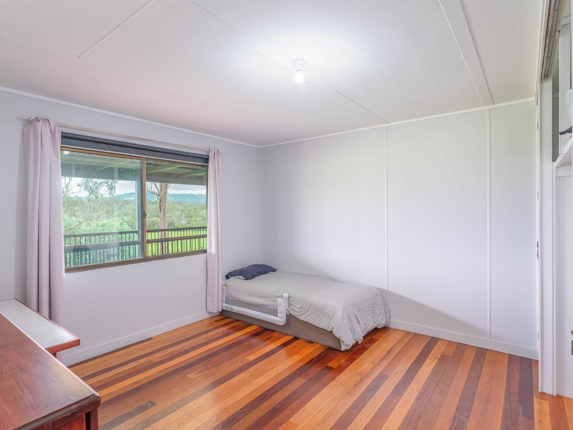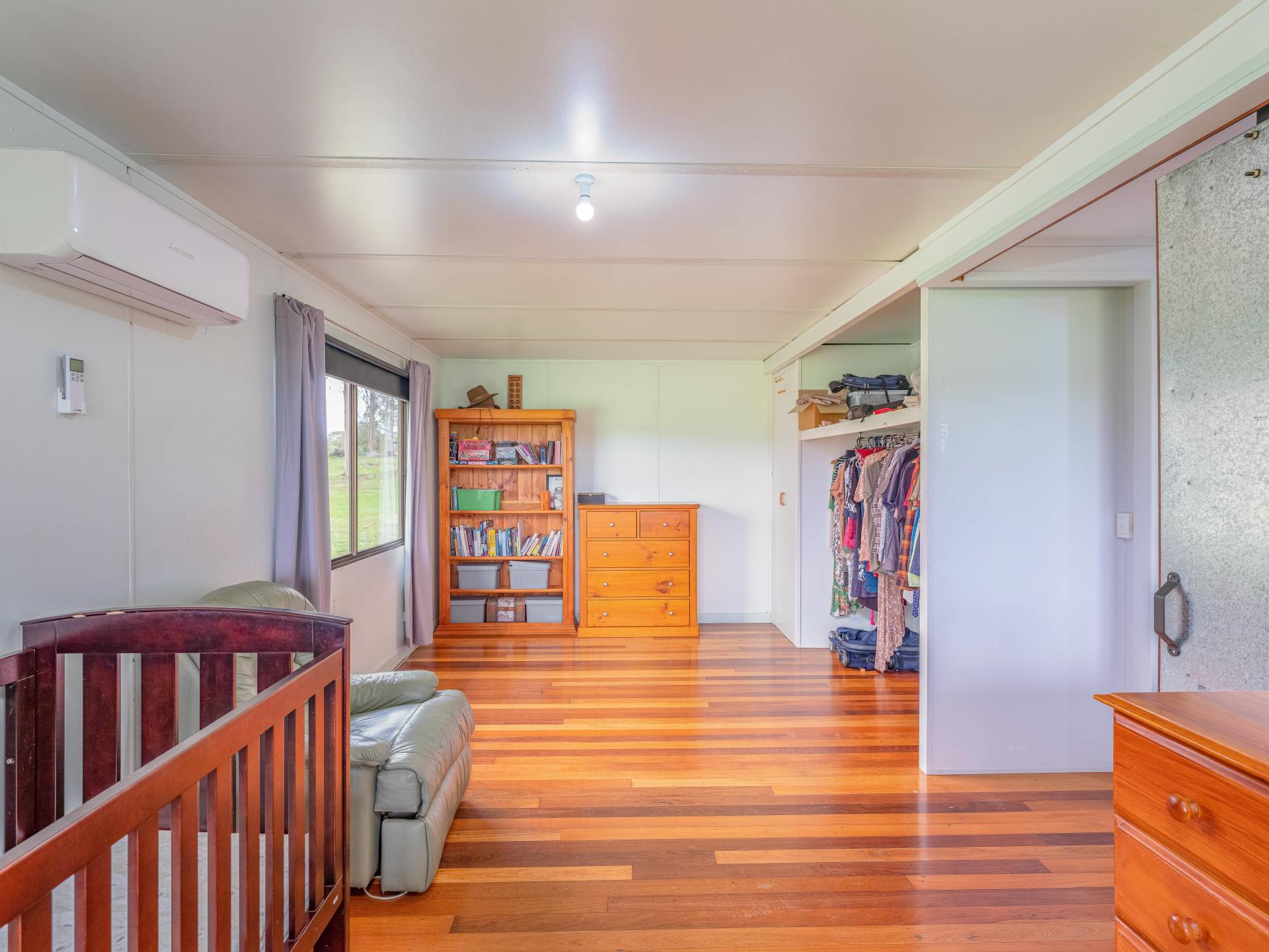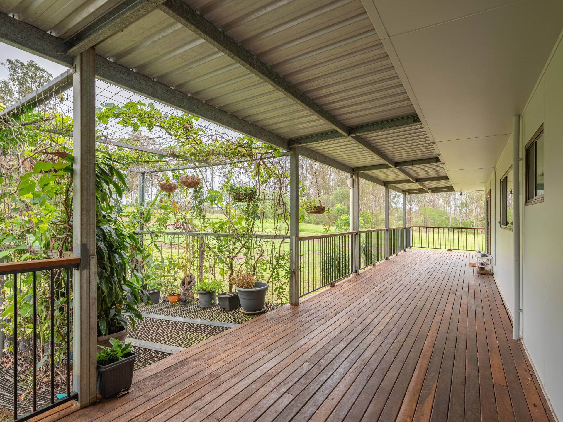 Main home - Currently three bedrooms but has potential to easily be 4 bedrooms with the addition of one wall. All rooms are spacious and have excellent views. The master bedroom features air conditioning and has plenty of storage space and a separate area for a parents retreat.  Lovely spacious kitchen including a dishwasher and open plan living areas with wood heater. The lounge room opens out to the 12ft wide veranda which overlooking the acreage beyond.  There is plenty of vehicle parking space underneath and a cemented section for entertaining or potential for more rooms to be built in.