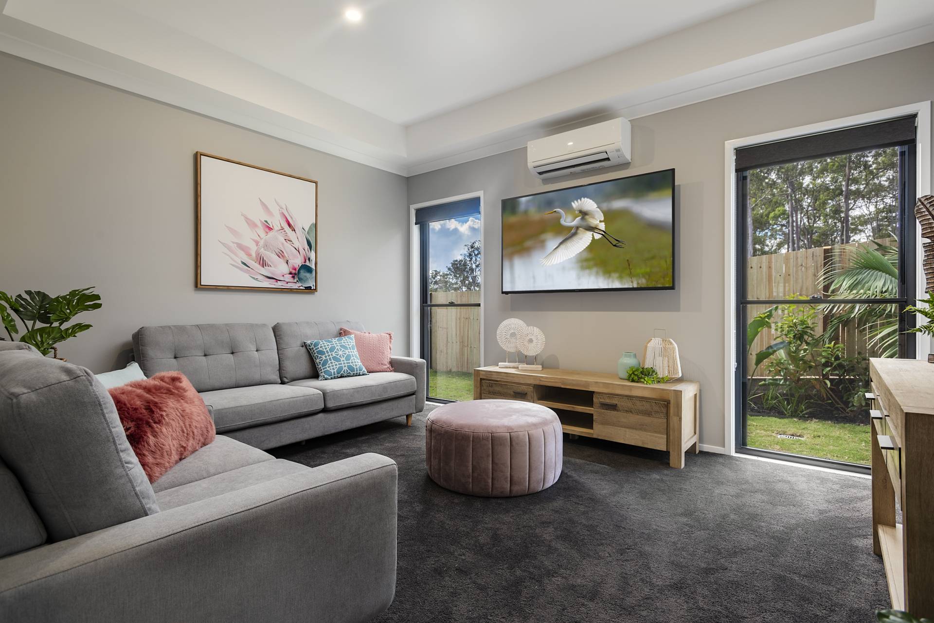 Separate media room big enough to house the entire family plus a split system air-conditioner.