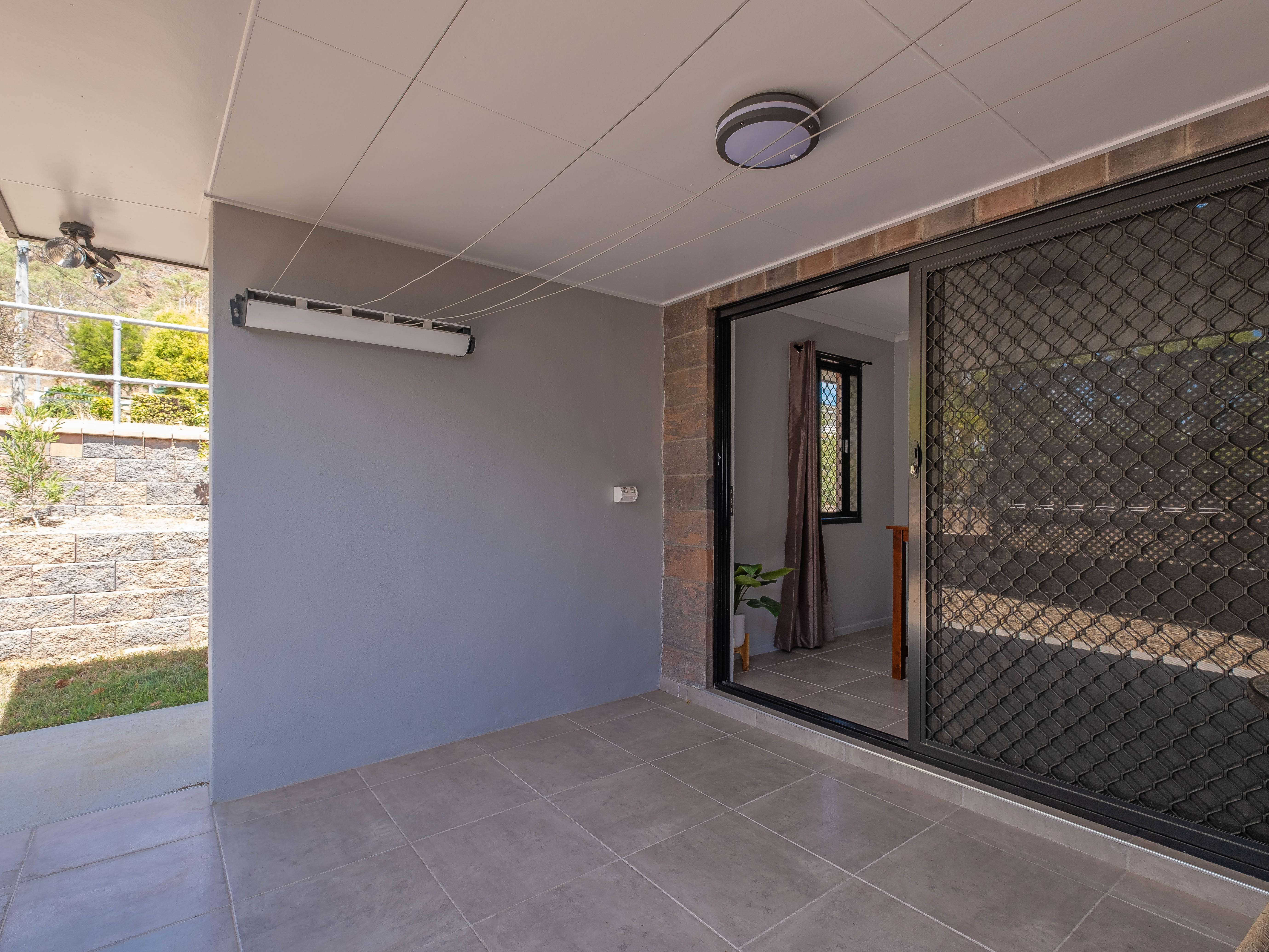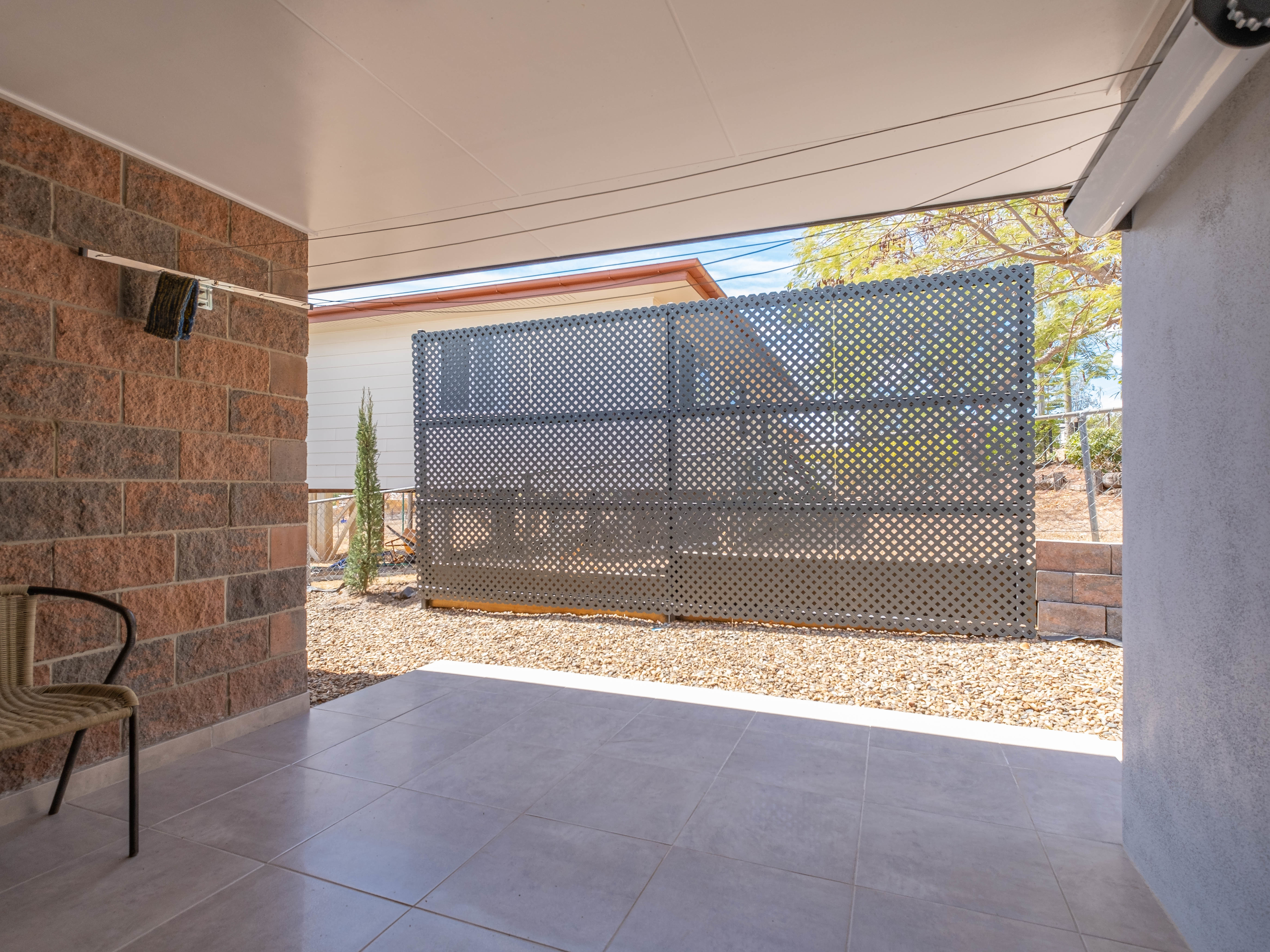 Spacious covered outdoor alfresco looking at a beautifully presented and landscaped retaining wall.