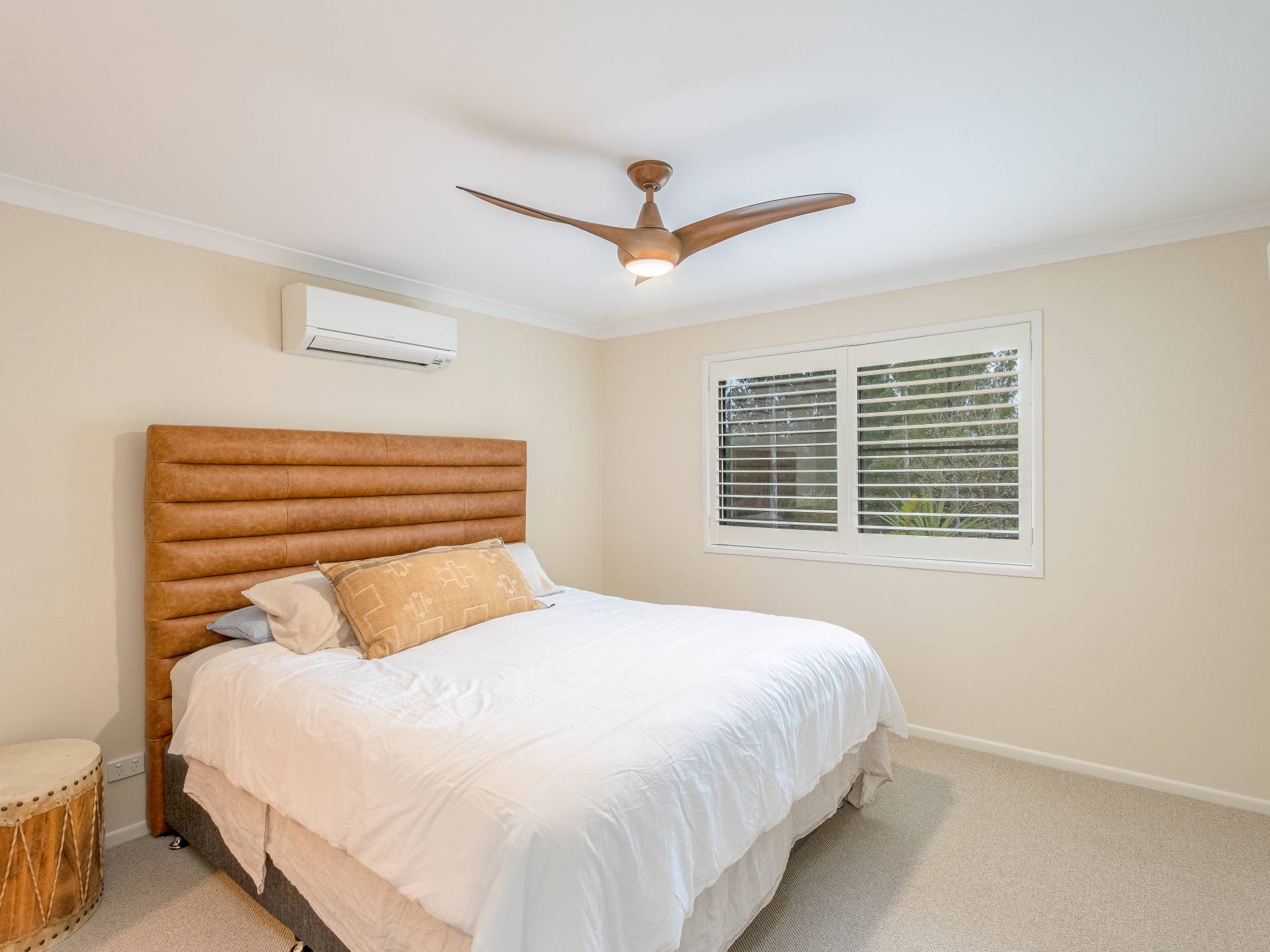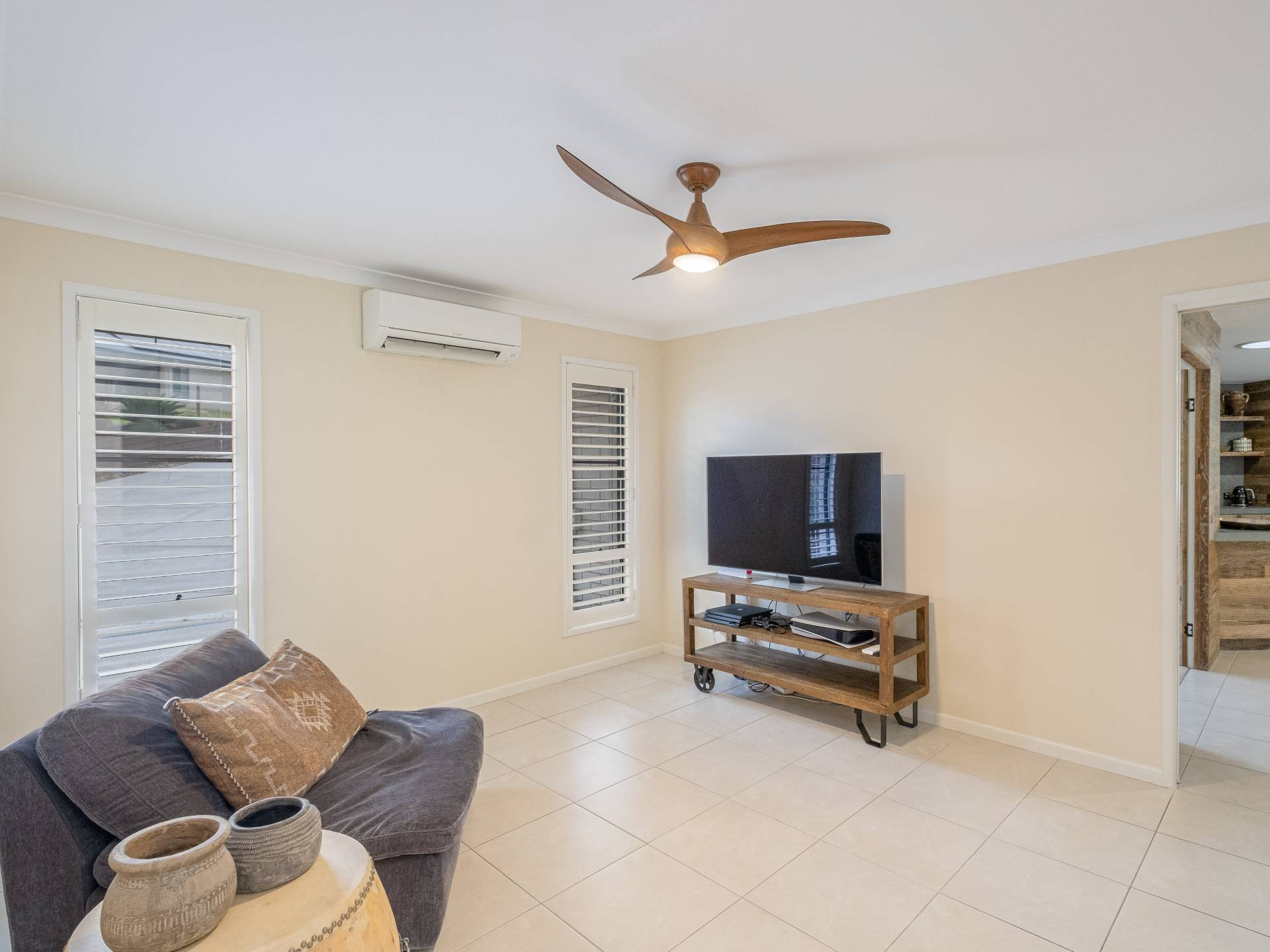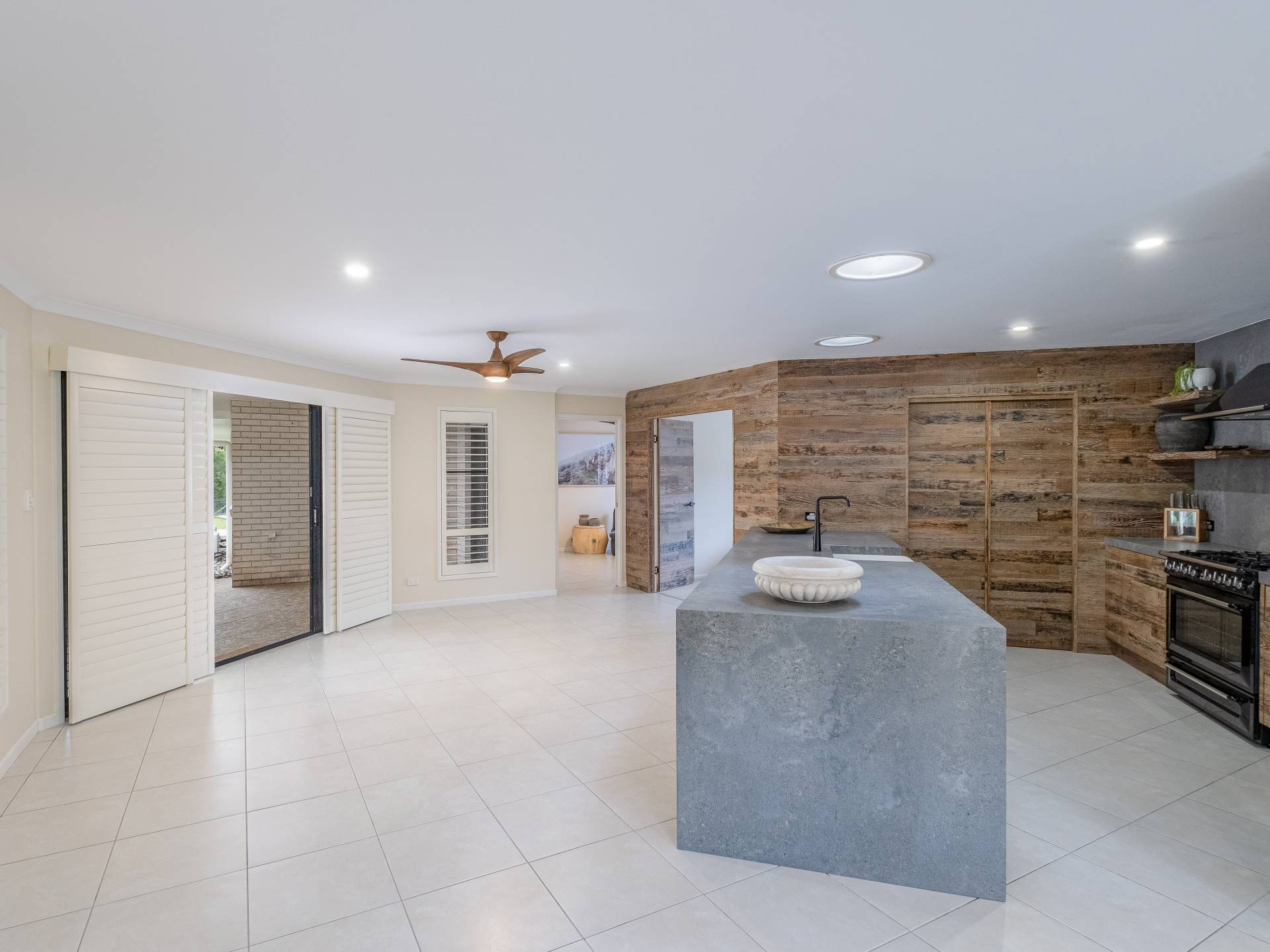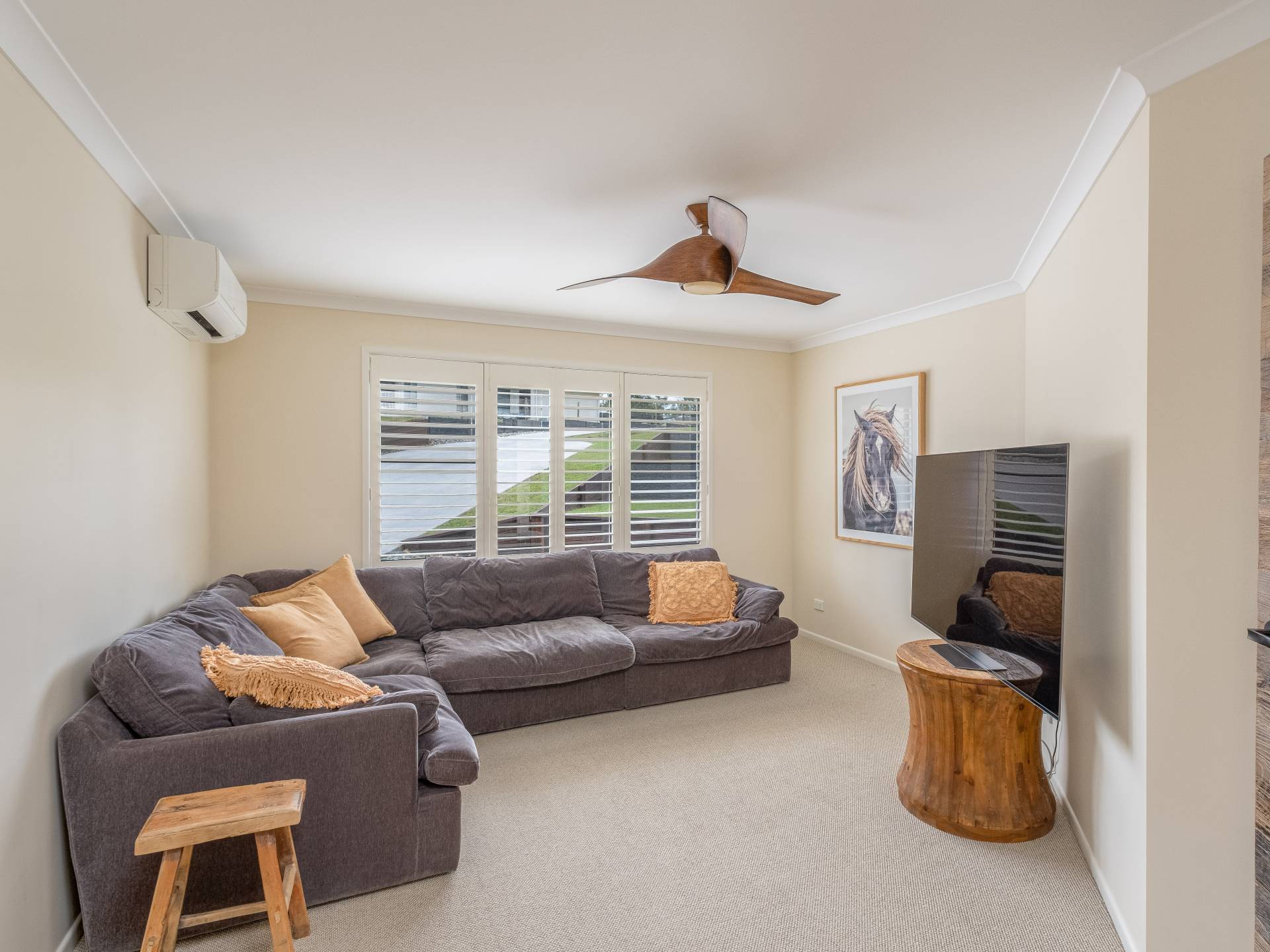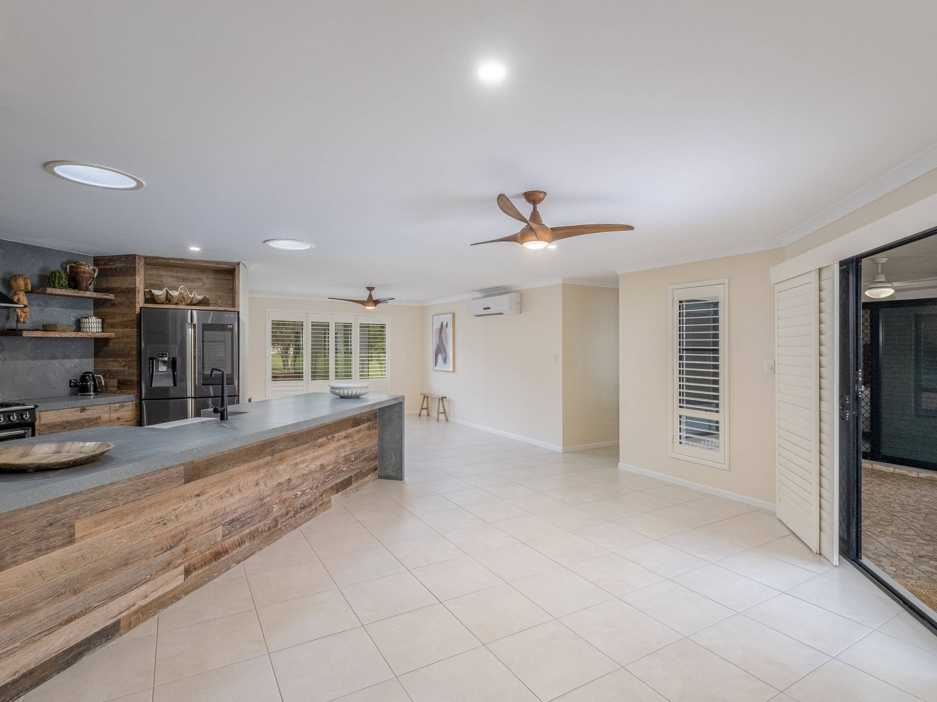 * Large open plan living/dining area with split system air conditioner, and doors leading to the large al fresco area overlooking the pool.