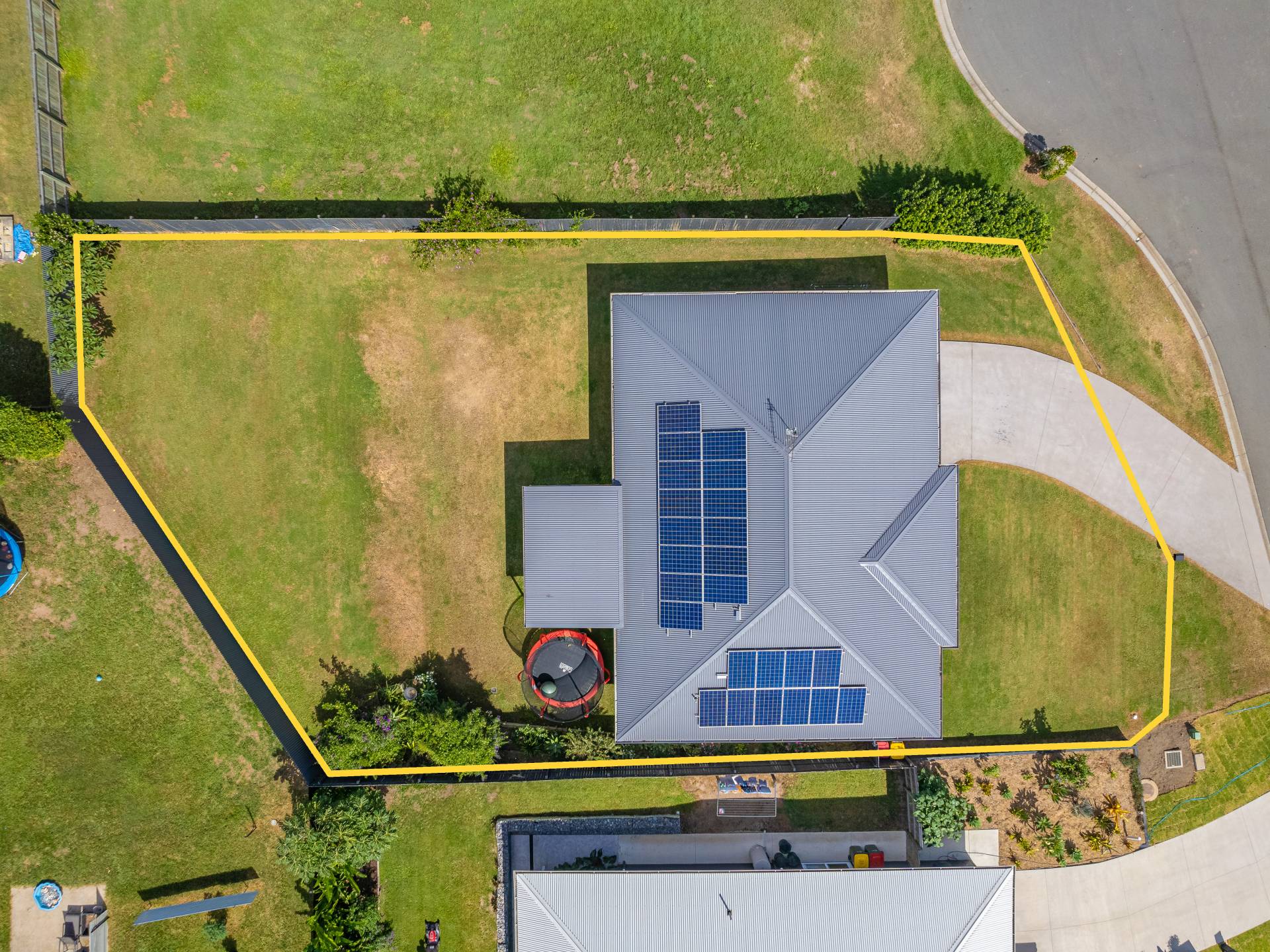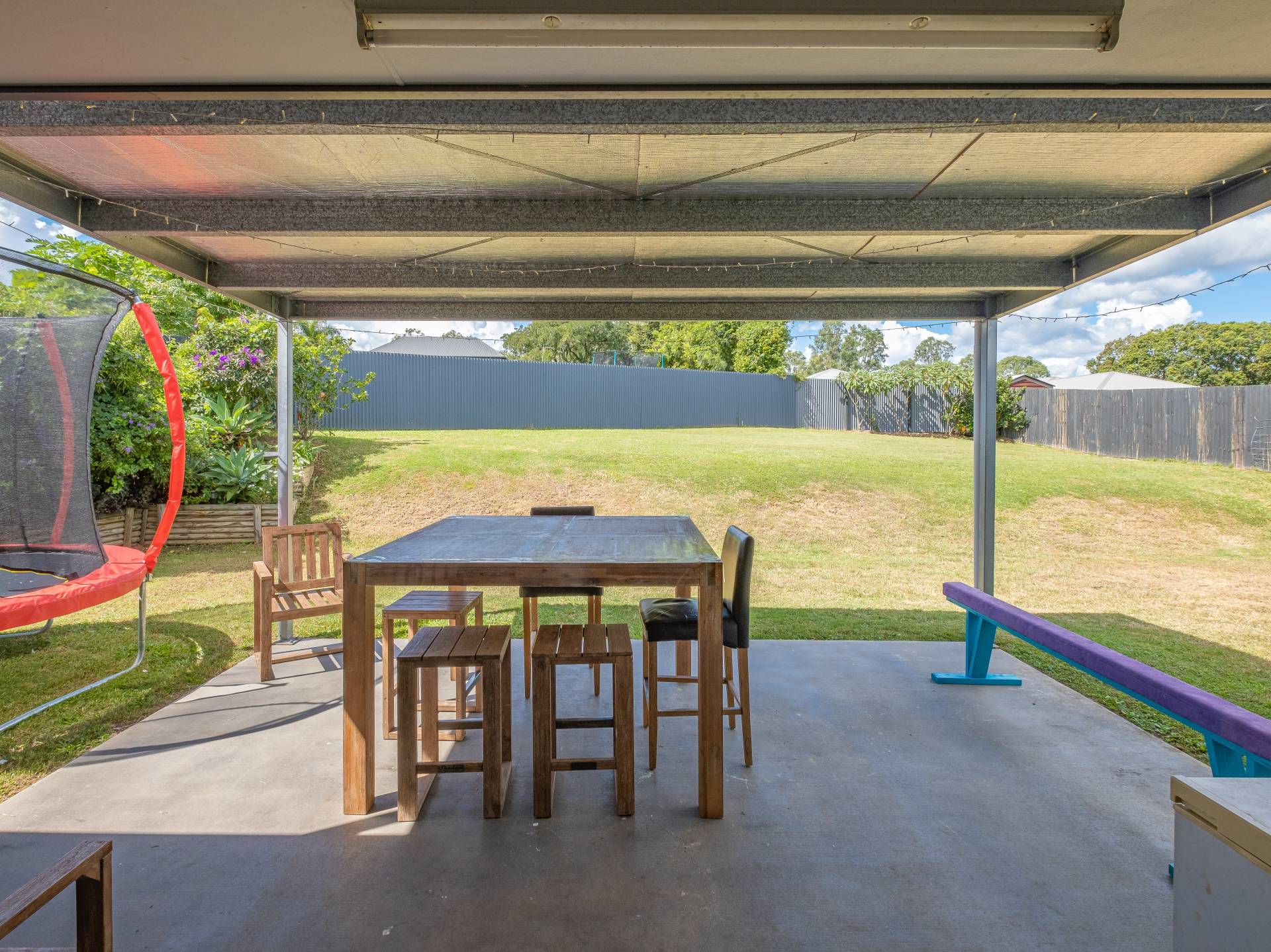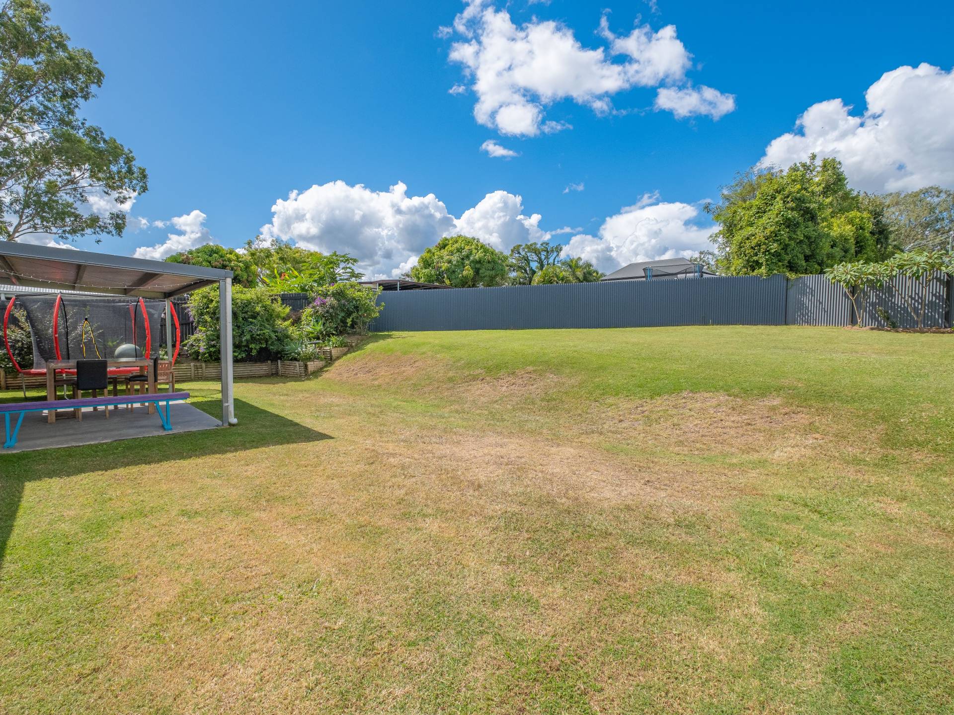 Fully fenced large 820m2 backyard and sides of house with double gate access on right hand side of property.
