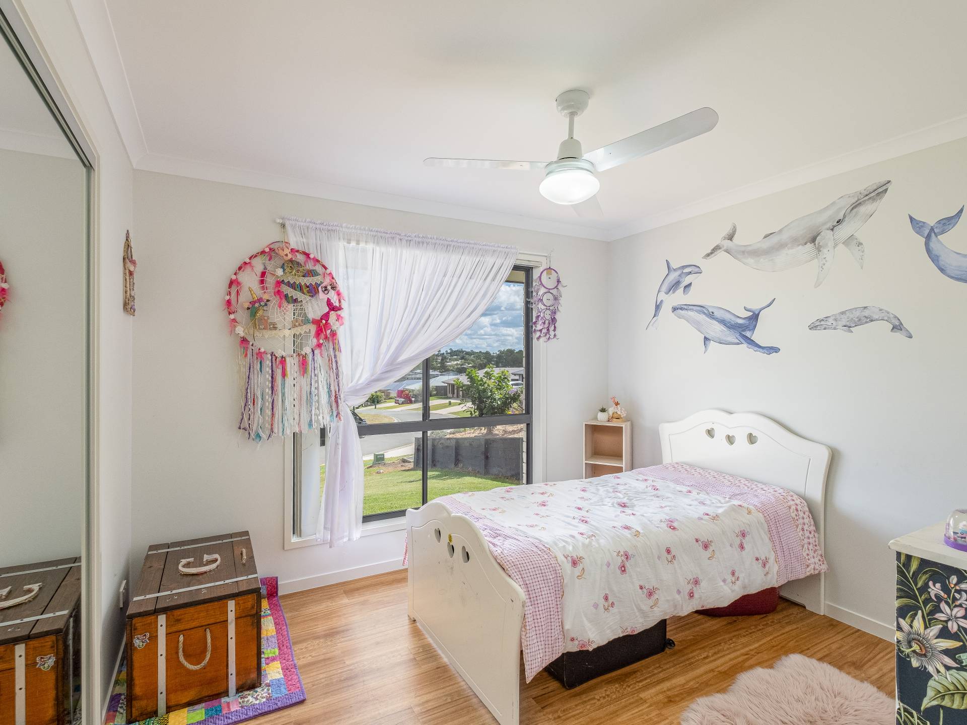 4 generous sized bedrooms all with floating floorboards, built in robes and ceiling fans with the master having a full ensuite, W.I.R and split system air-conditioning.