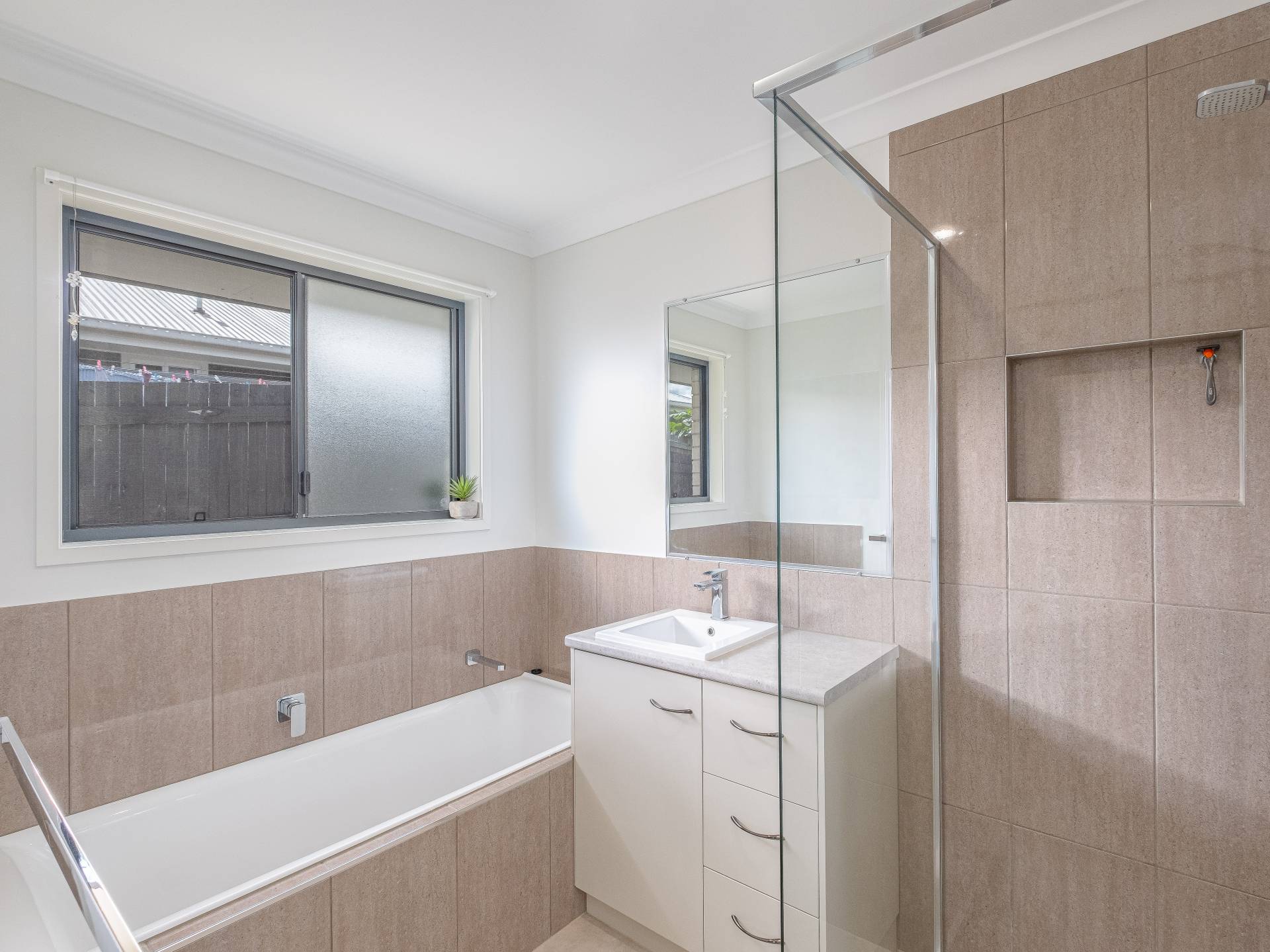 Main bathroom has separate bath and shower.