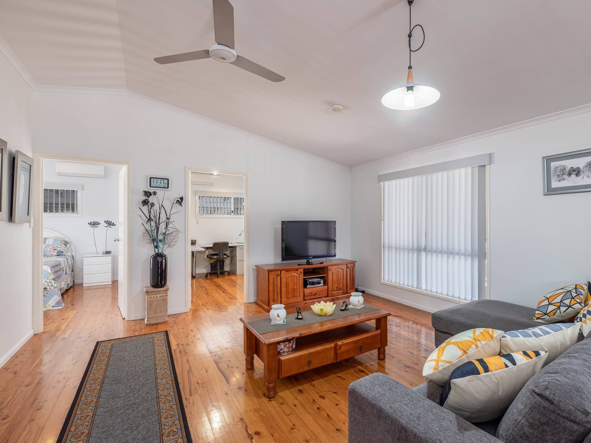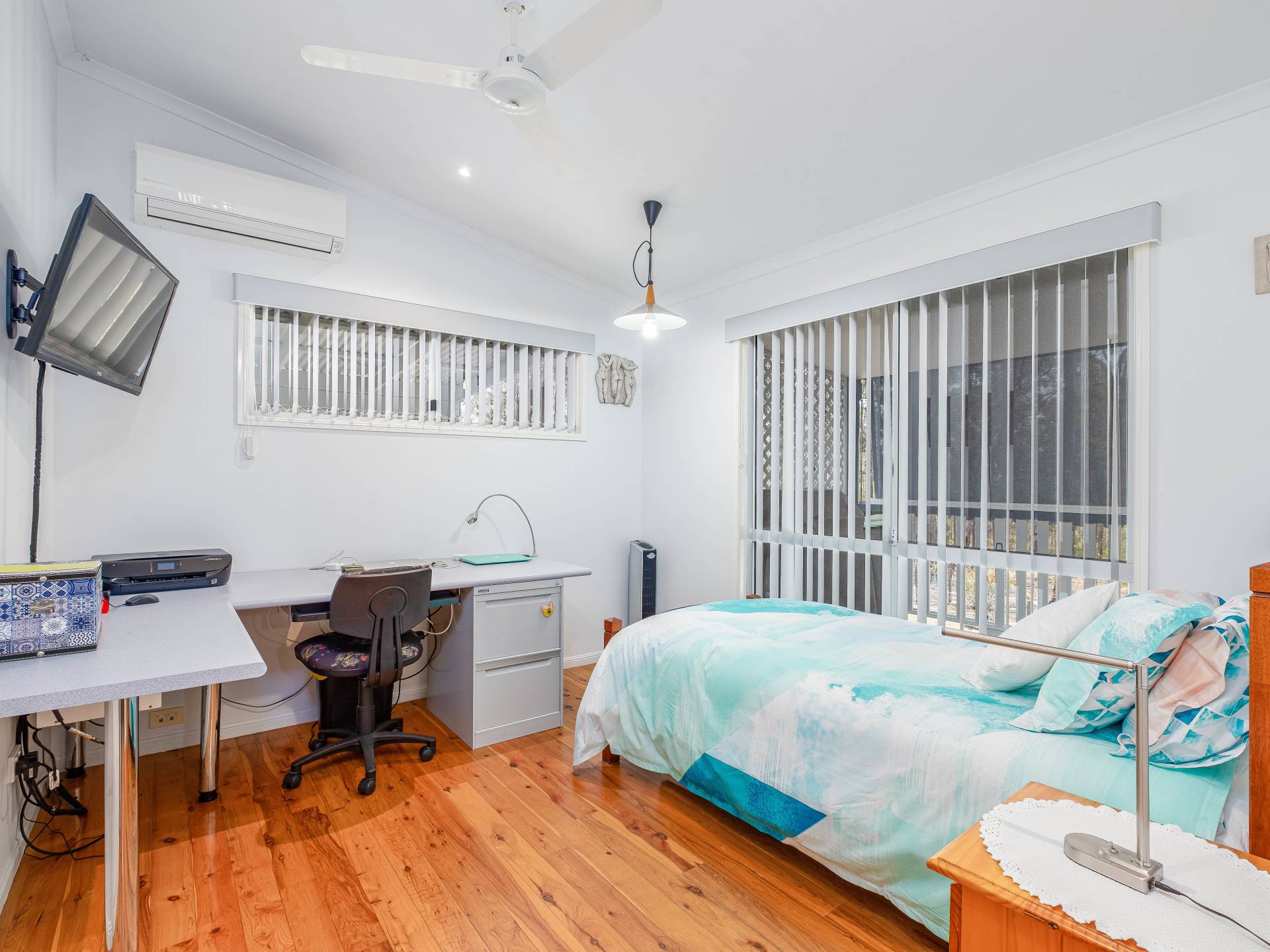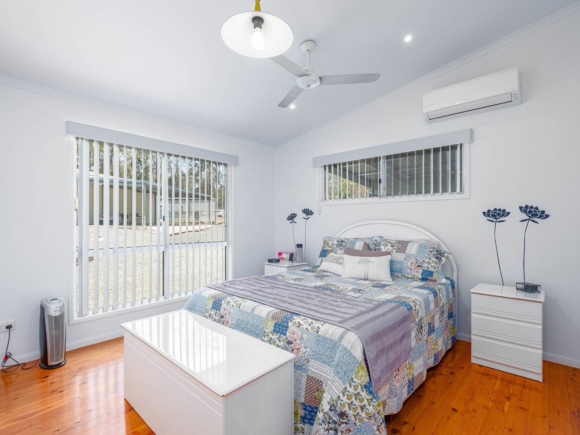 3 bedrooms, two with built in robes, split system air conditioners and ceiling fans.