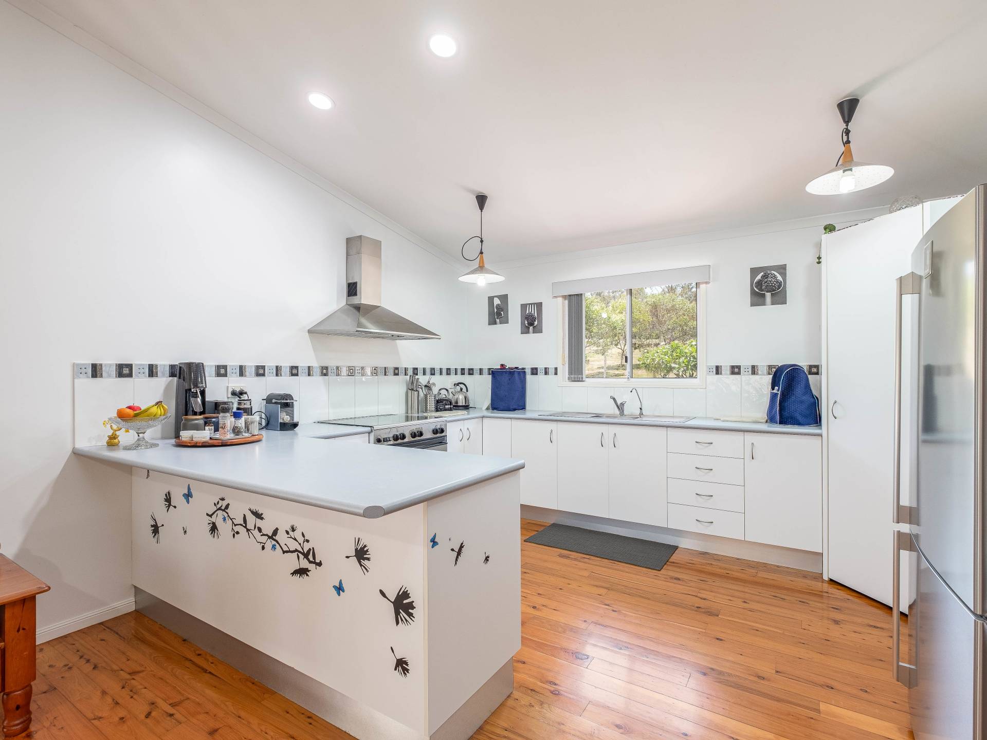 Kitchen has a large stainless steel gas oven and cooktop, a large pantry, breakfast bar and plenty of storage.