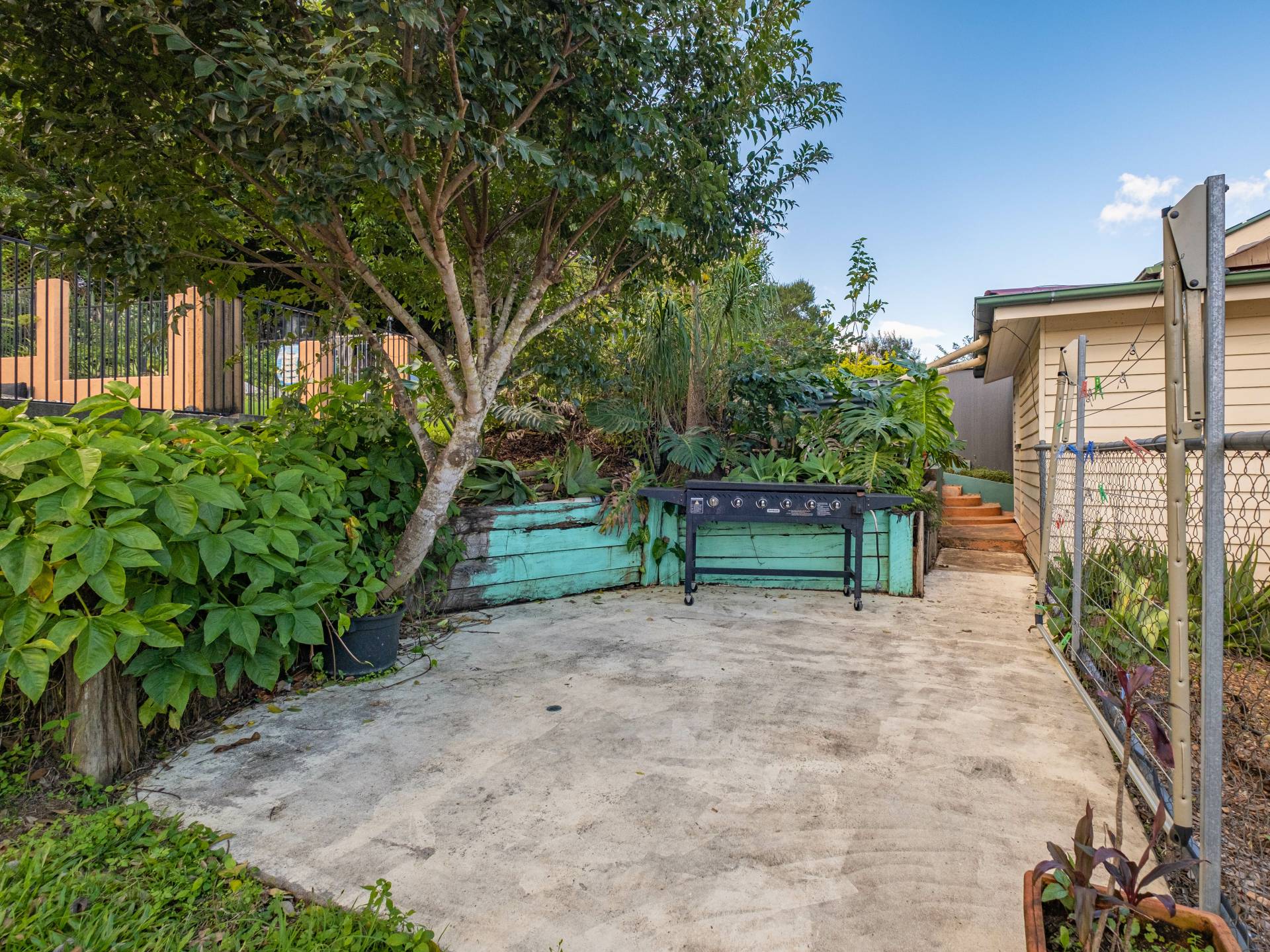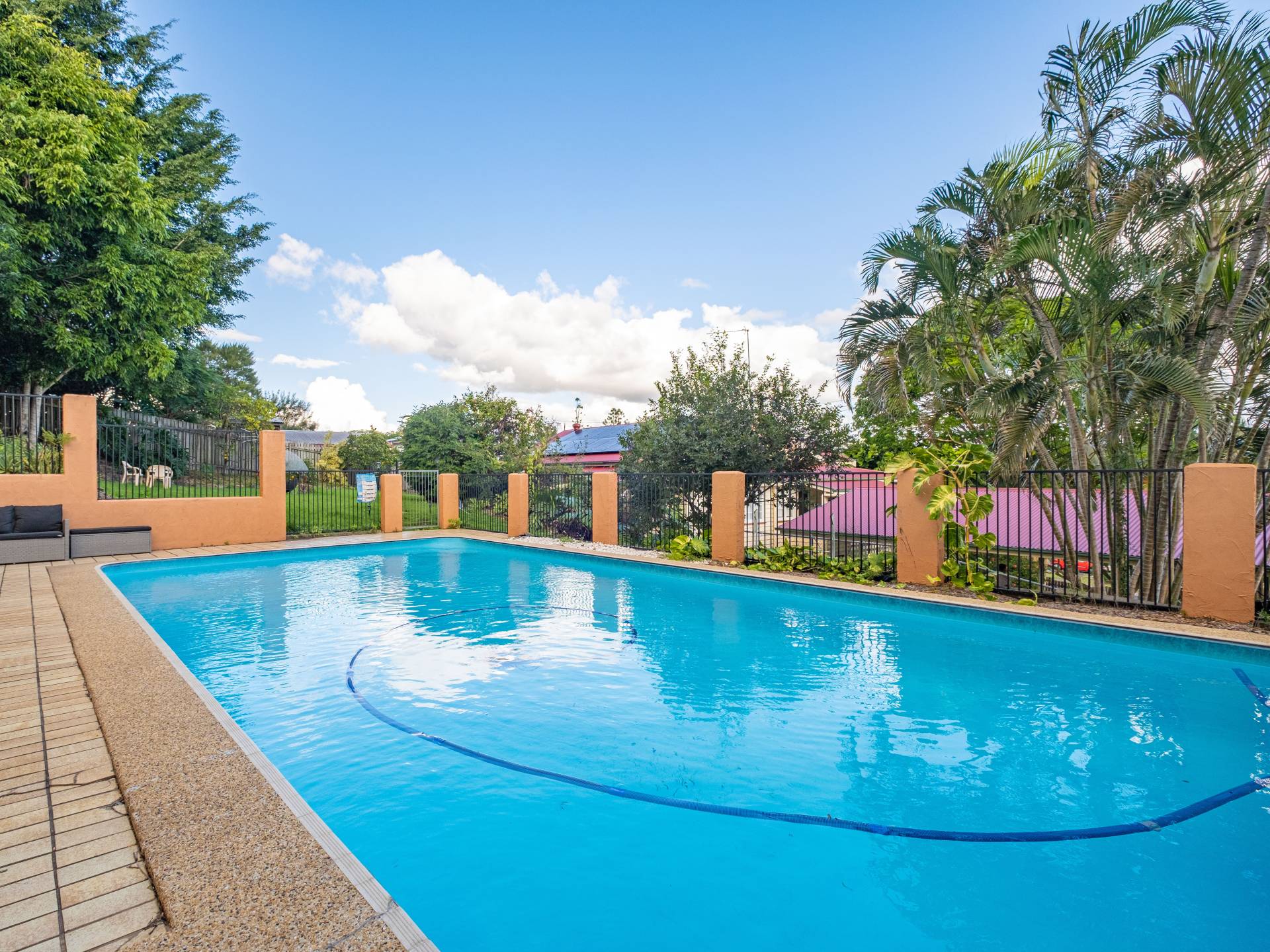 The fully fenced and private yard has room for the kids and pets.