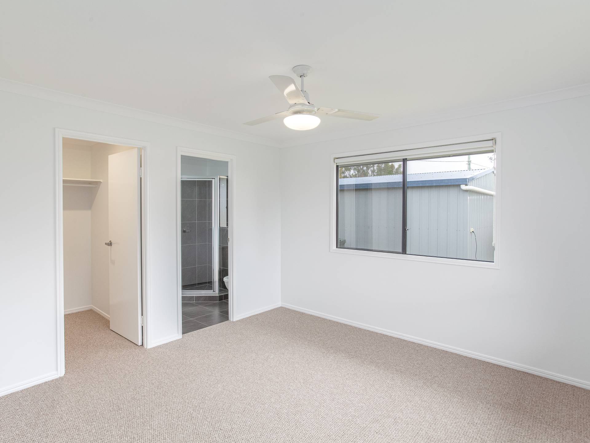 The master bedroom has a ceiling fan, full ensuite and a walk in robe