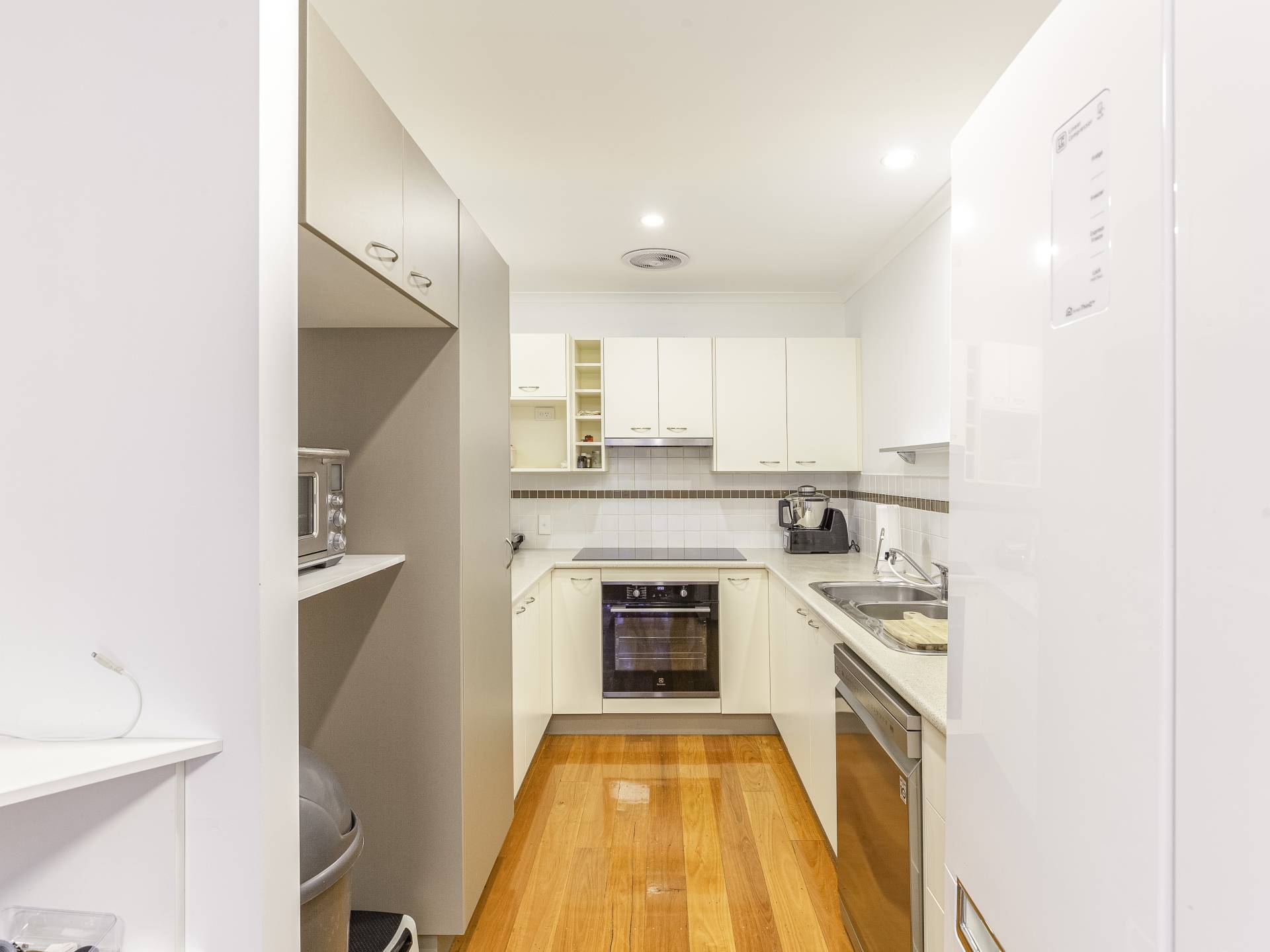 The modern stylish kitchen is set up well with a generous amount of storage, stainless steel dishwasher, cooktop and pyrolytic oven.
