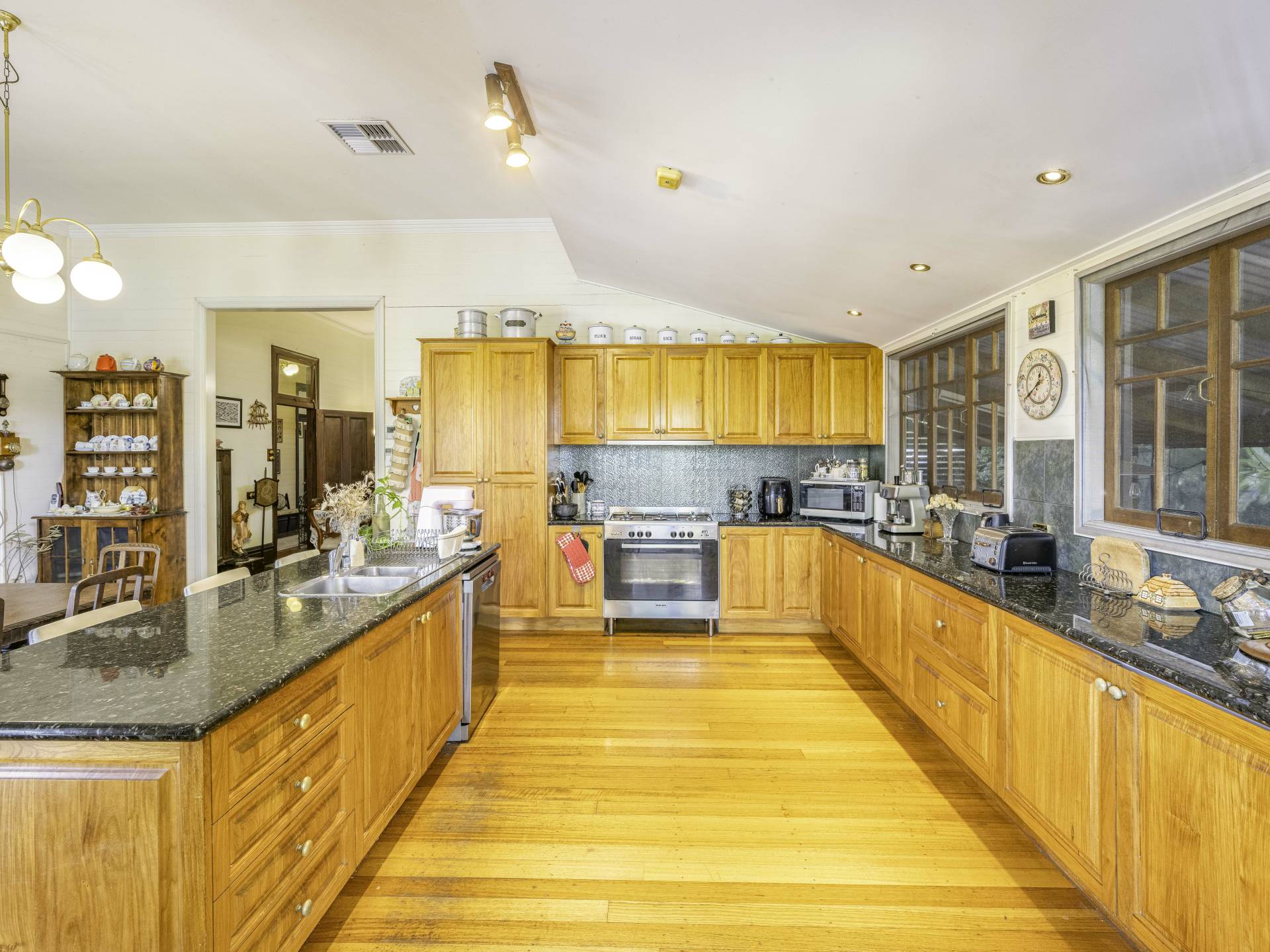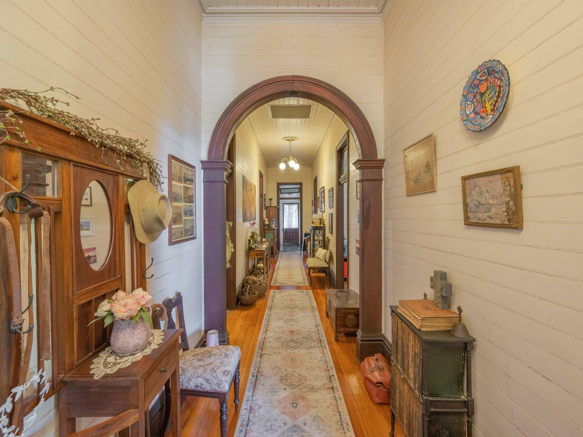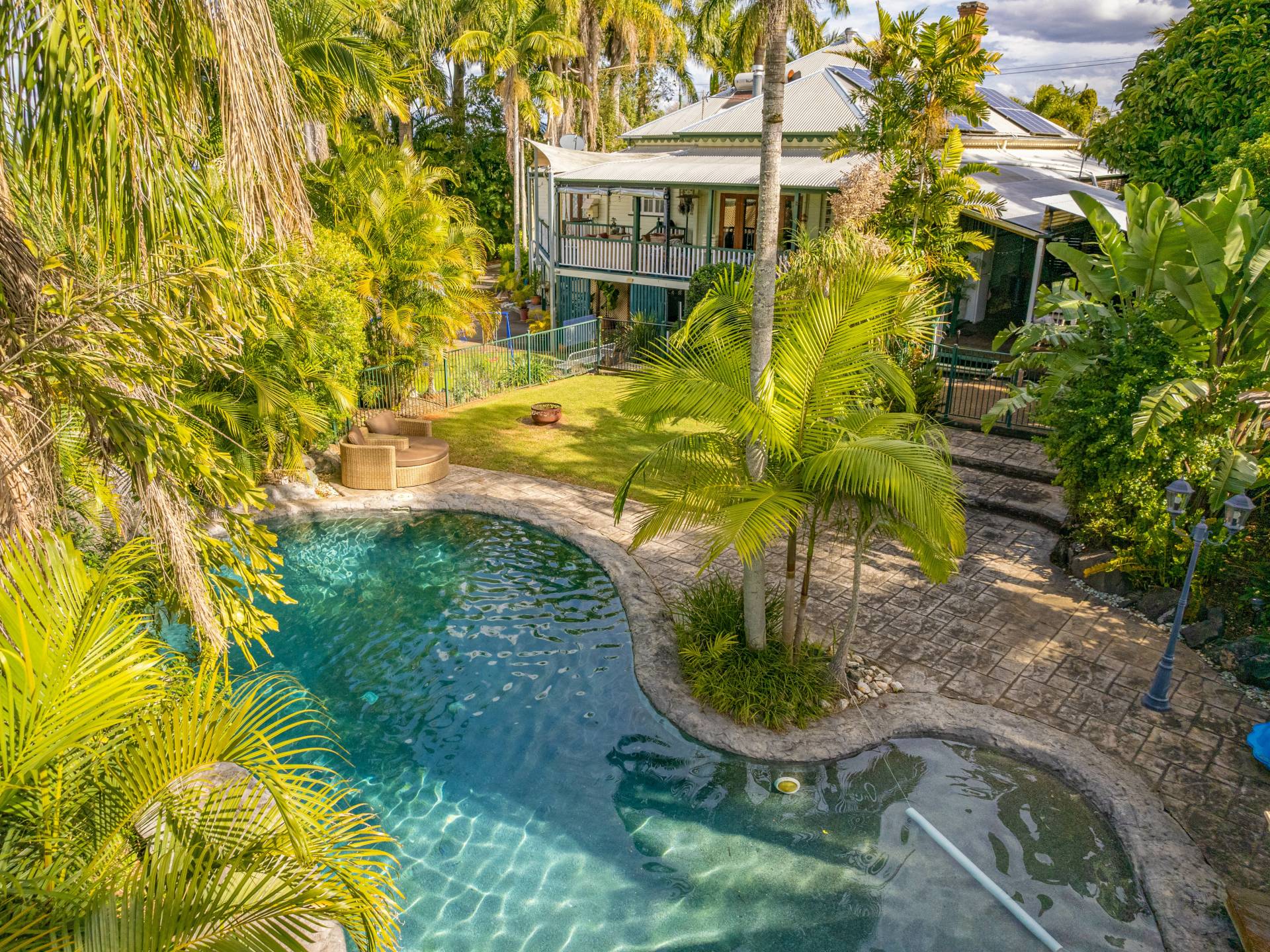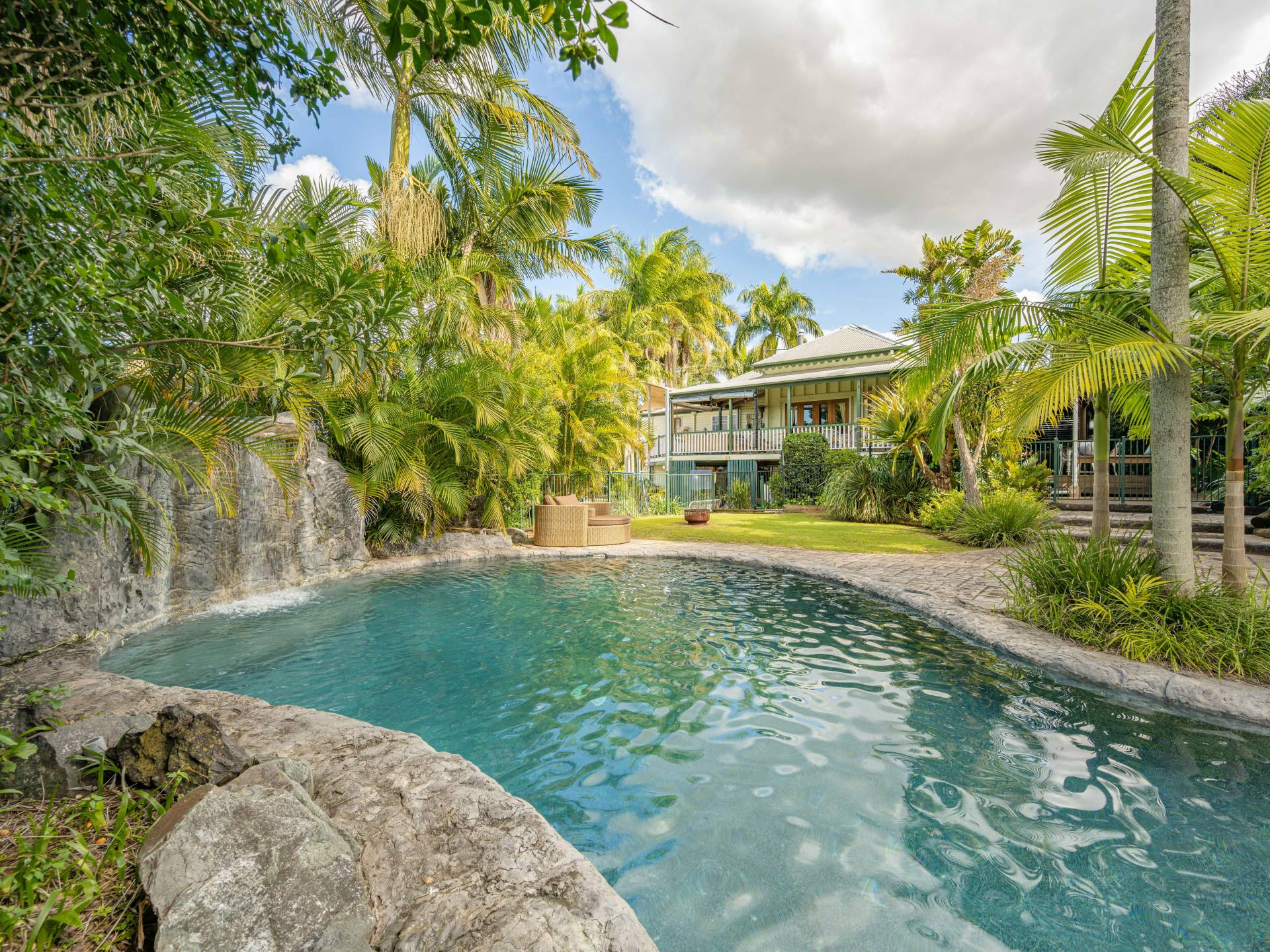 This home was built in 1894 by the GLASGOW family and to date has only ever had 4 lucky owners. If you are the lucky 5th owner, you will enjoy high ceilings, beautifully polished wooden floors, family friendly lounge rooms as well as a formal lounge for the special occasions, large stately kitchen with an abundance of cupboard space, undercover entertaining deck overlooking landscaped gardens and a resort style pool, complete with its own adjoining rainforest. Not only one but three fire places for the colder months and air conditioning for the hot summers. This beautiful family home features 5 beautiful oversized bedrooms upstairs with the master having an ensuite plus another two bathrooms, high ceilings and red cedar, native beech, Kauri pine and tallowwood through-out the home with endless space for you to create as YOUR home.  There are multiple seating areas both around the house and in the yard, a pool, fish ponds and most importantly a sense of privacy with the yard being screened from neighbours with immaculate gardens.  Upstairs has ducted reverse cycle air conditioning.