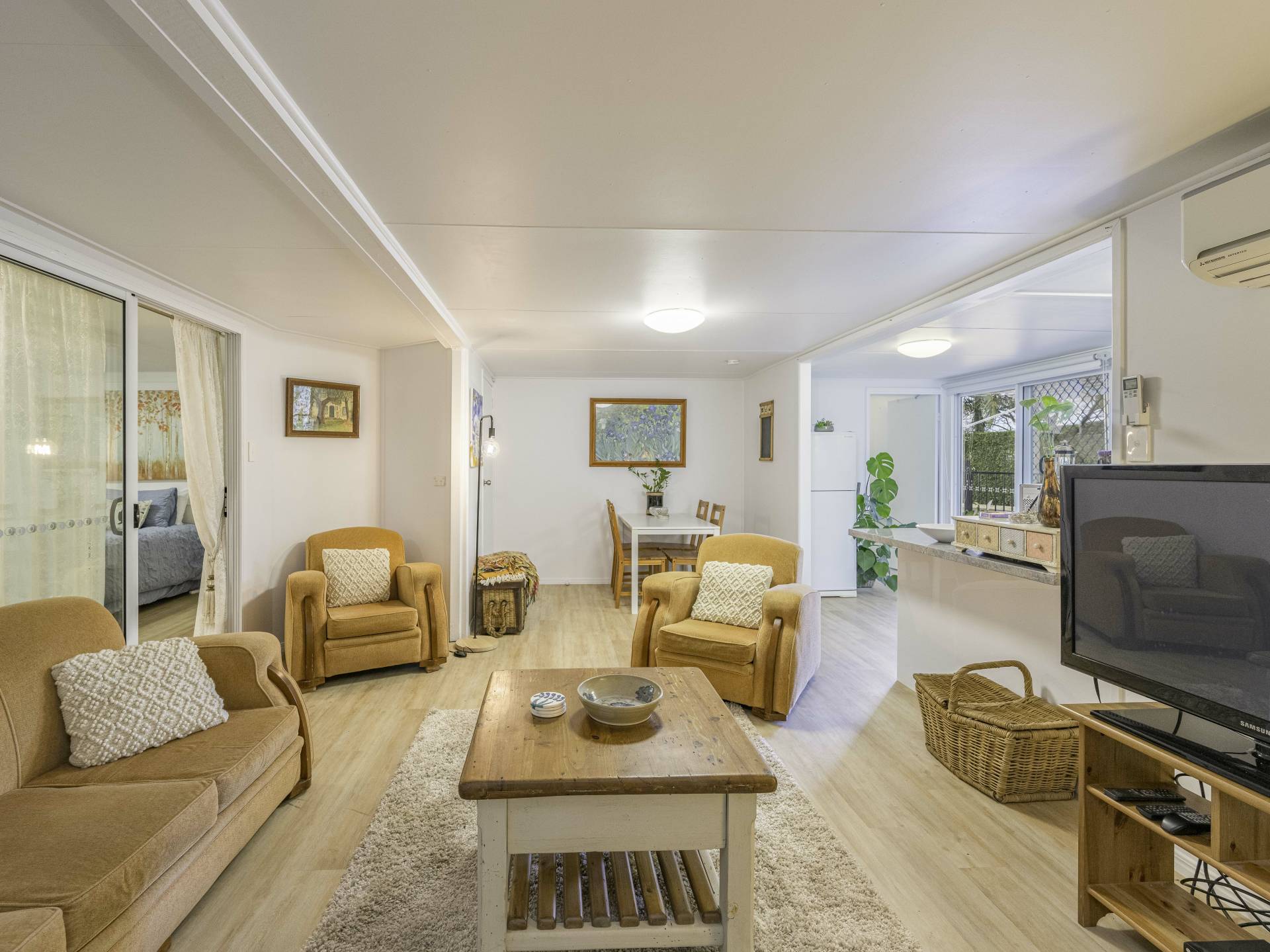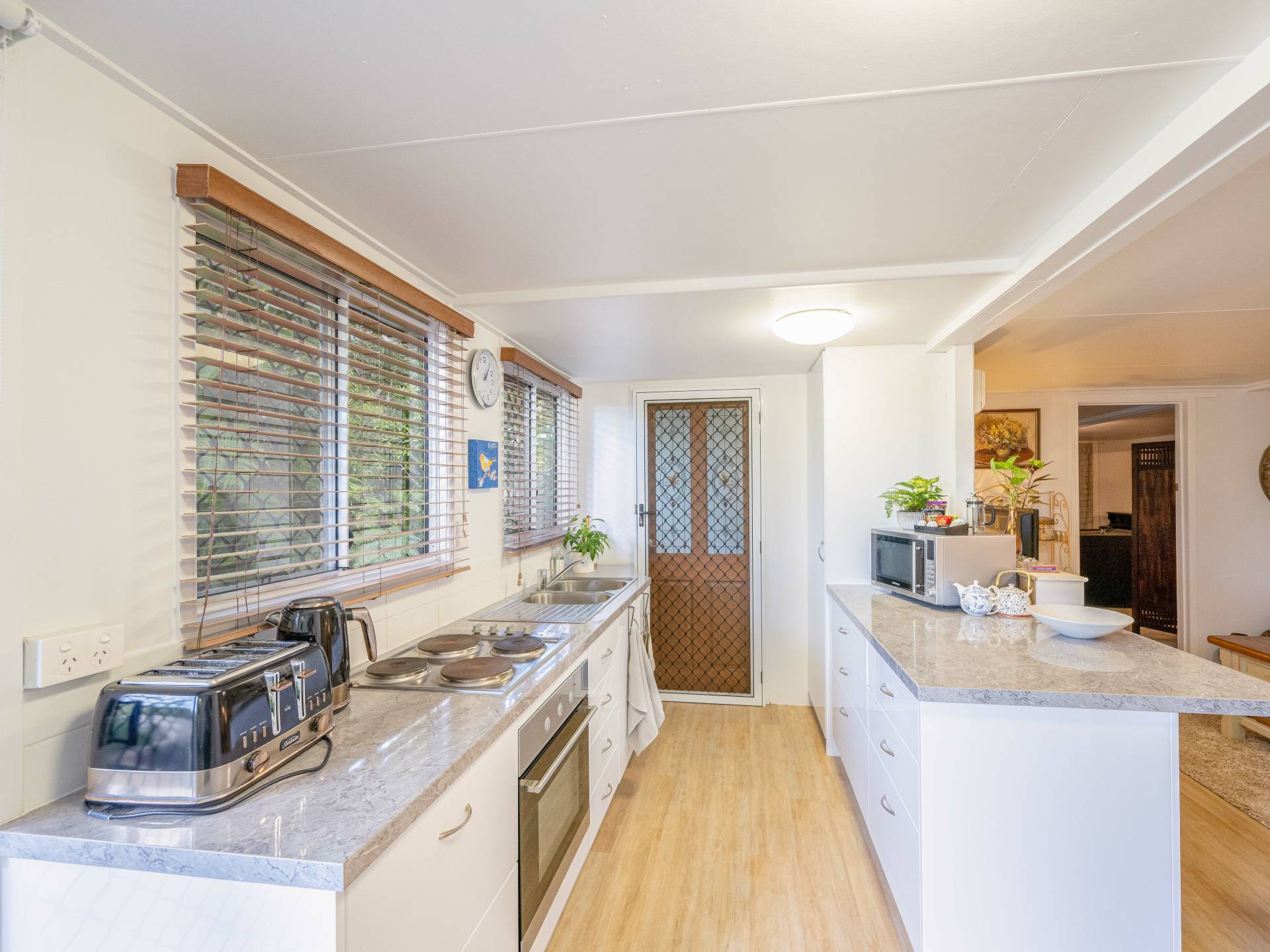 Downstairs has a separate residence with a bedroom, two lounges a kitchen and a bathroom.  This space has its own entrance and outdoor seating area allowing you to use for a family member, B and B or an investment.