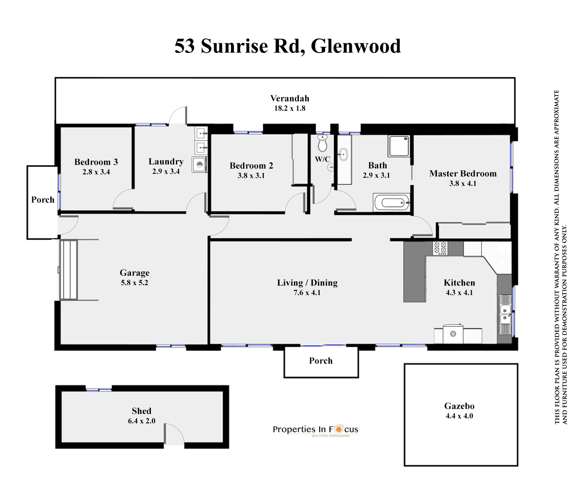 Covered outdoor seating area runs the length of the dwelling and there is also a gazebo for outdoor entertaining.
