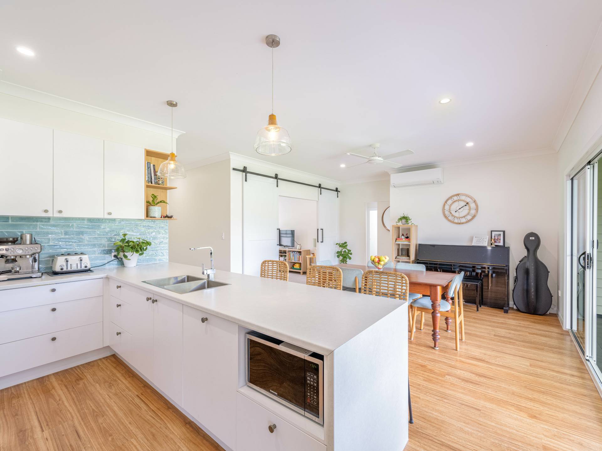 - Air-conditioned, open plan kitchen, living and dining area which flows naturally to the covered entertaining area.