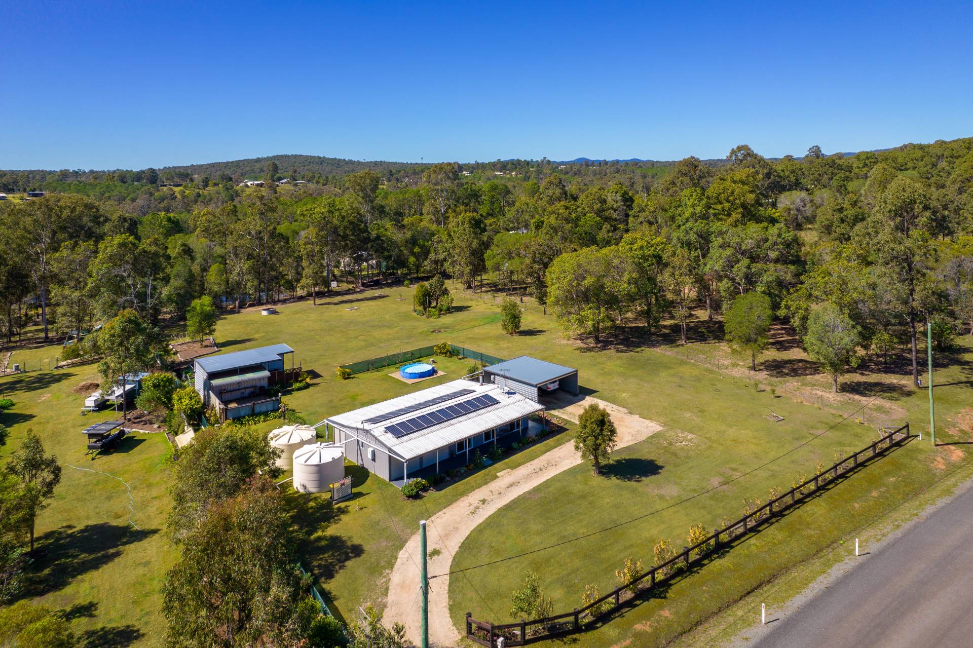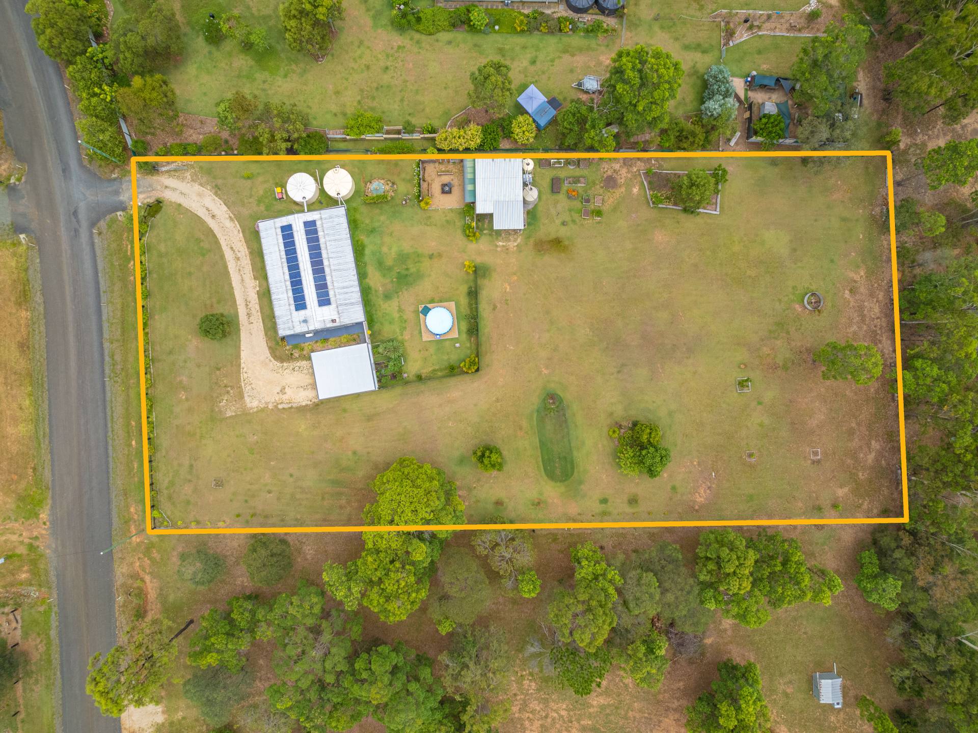 - Water storage of 2 x 5,000gal poly water tanks, and another 2 x 5,000ltr water tanks specifically set up for direct irrigation to the nearby established vegetable gardens
