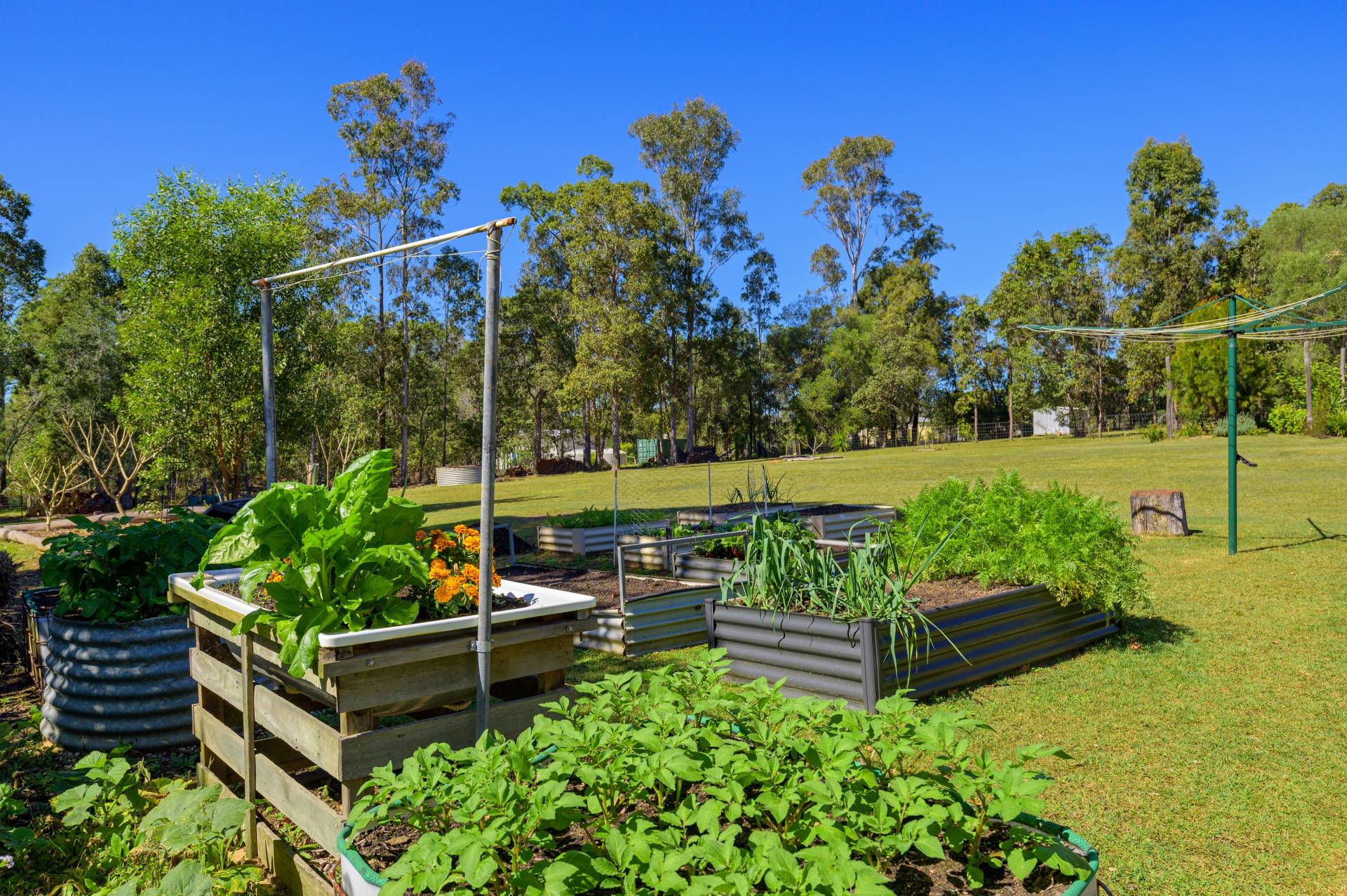 - Sustainability is key here with established vegetable gardens that are easily maintained and spread generously around the grounds, young fruit trees of lemon, lime, mandarin and passionfruit are selectively positioned around the property just to name a few