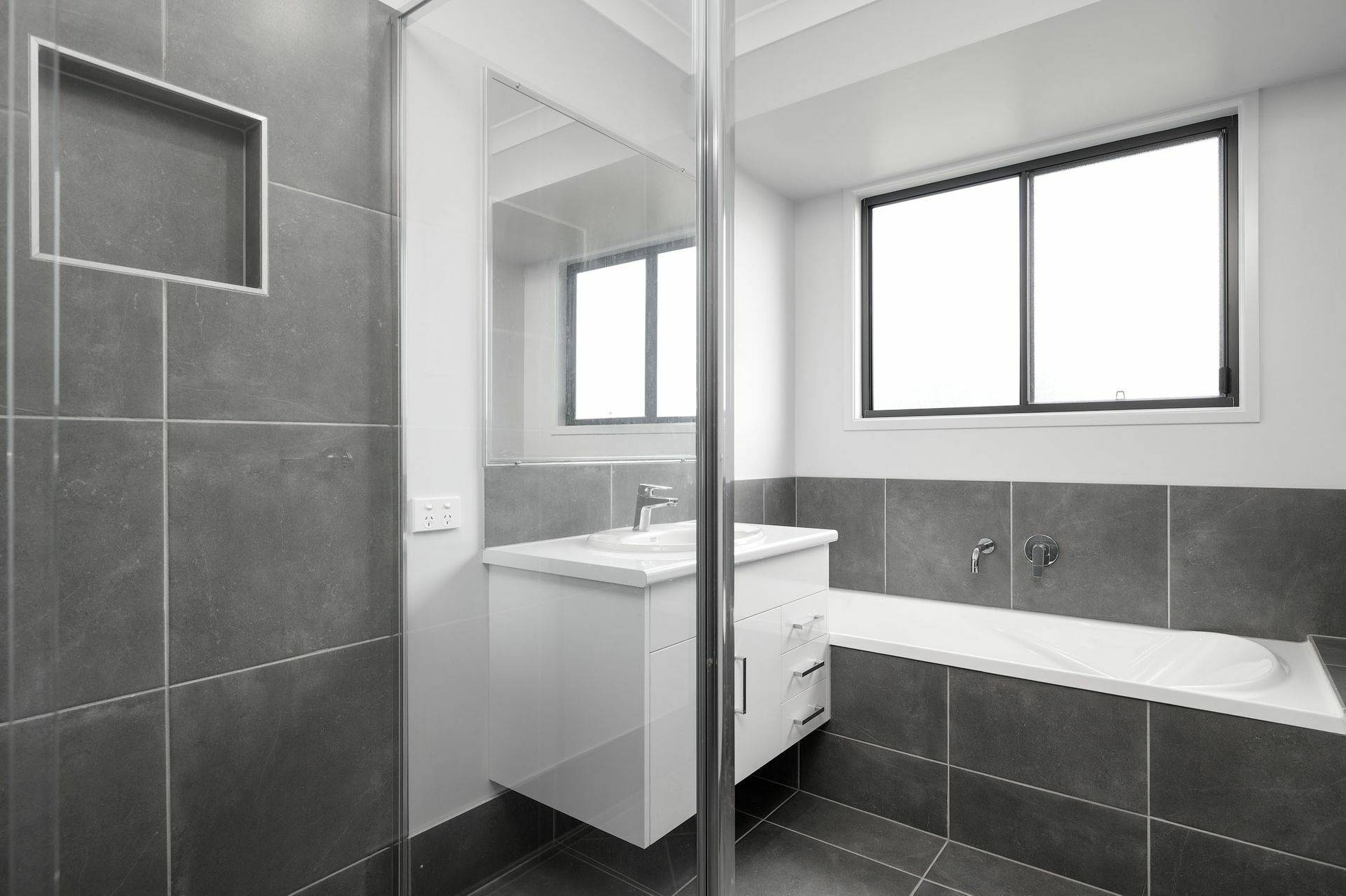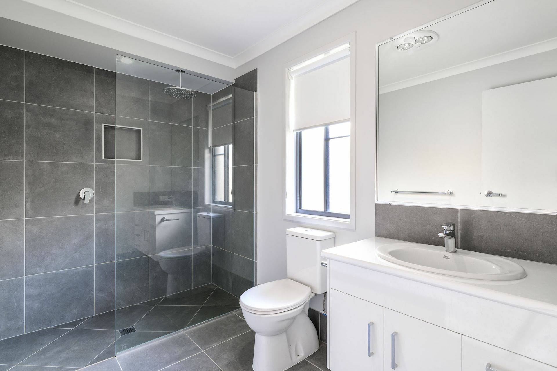* The ensuite has an extended recessed shower with floor to ceiling tiles plus floating vanity