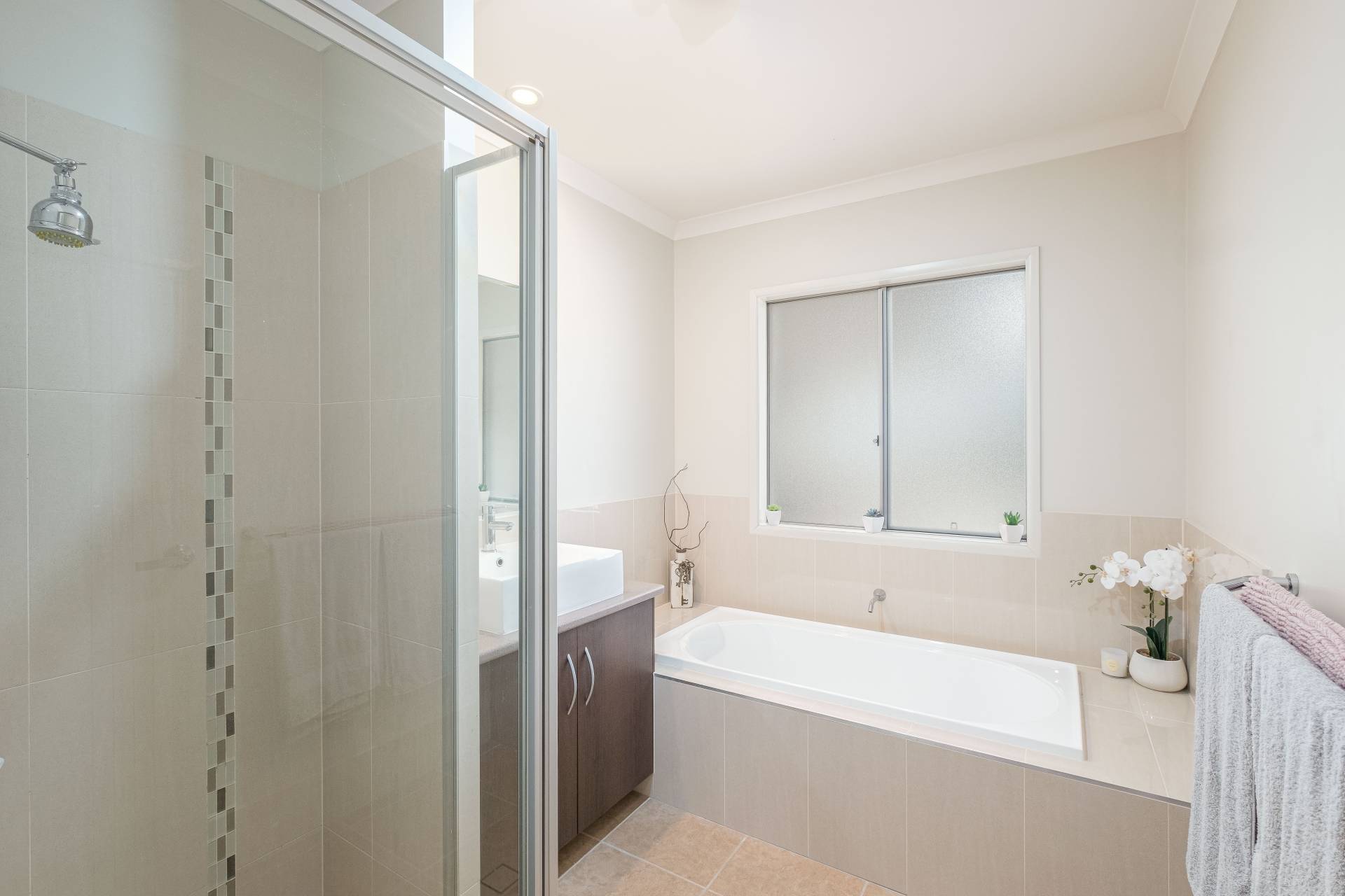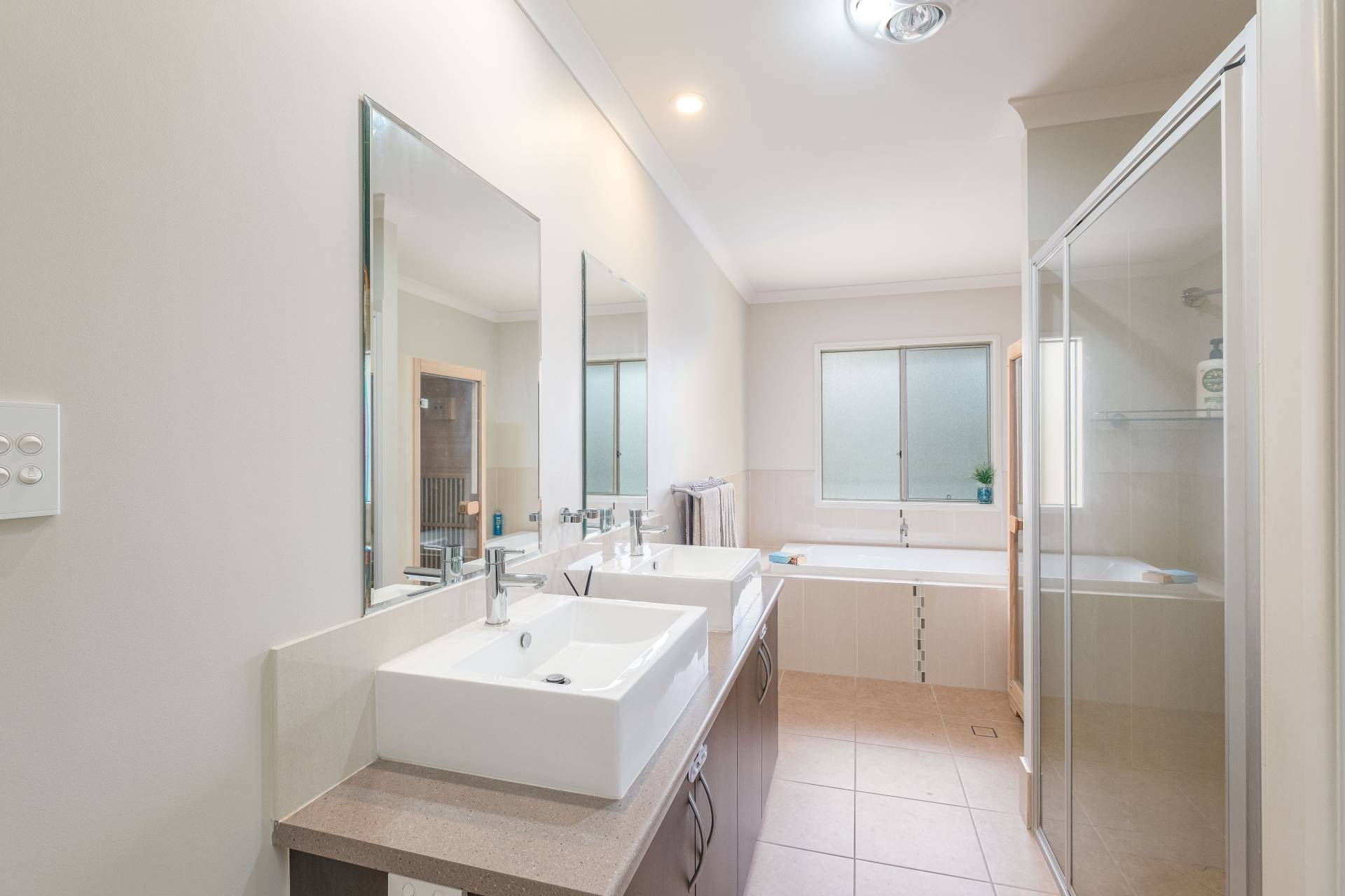 Master bedroom has doors leading to the al fresco plus a walk-in robe and ensuite with double vanity, bath, shower and toilet.