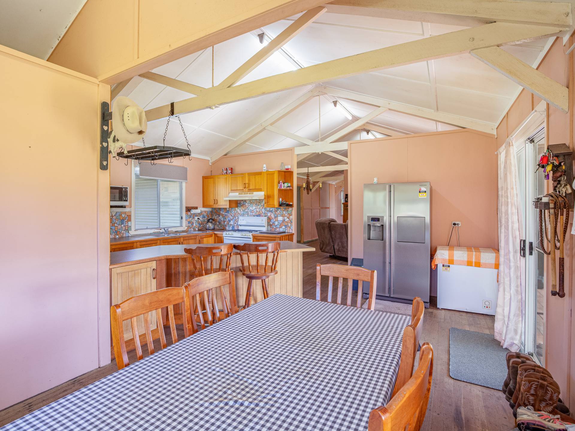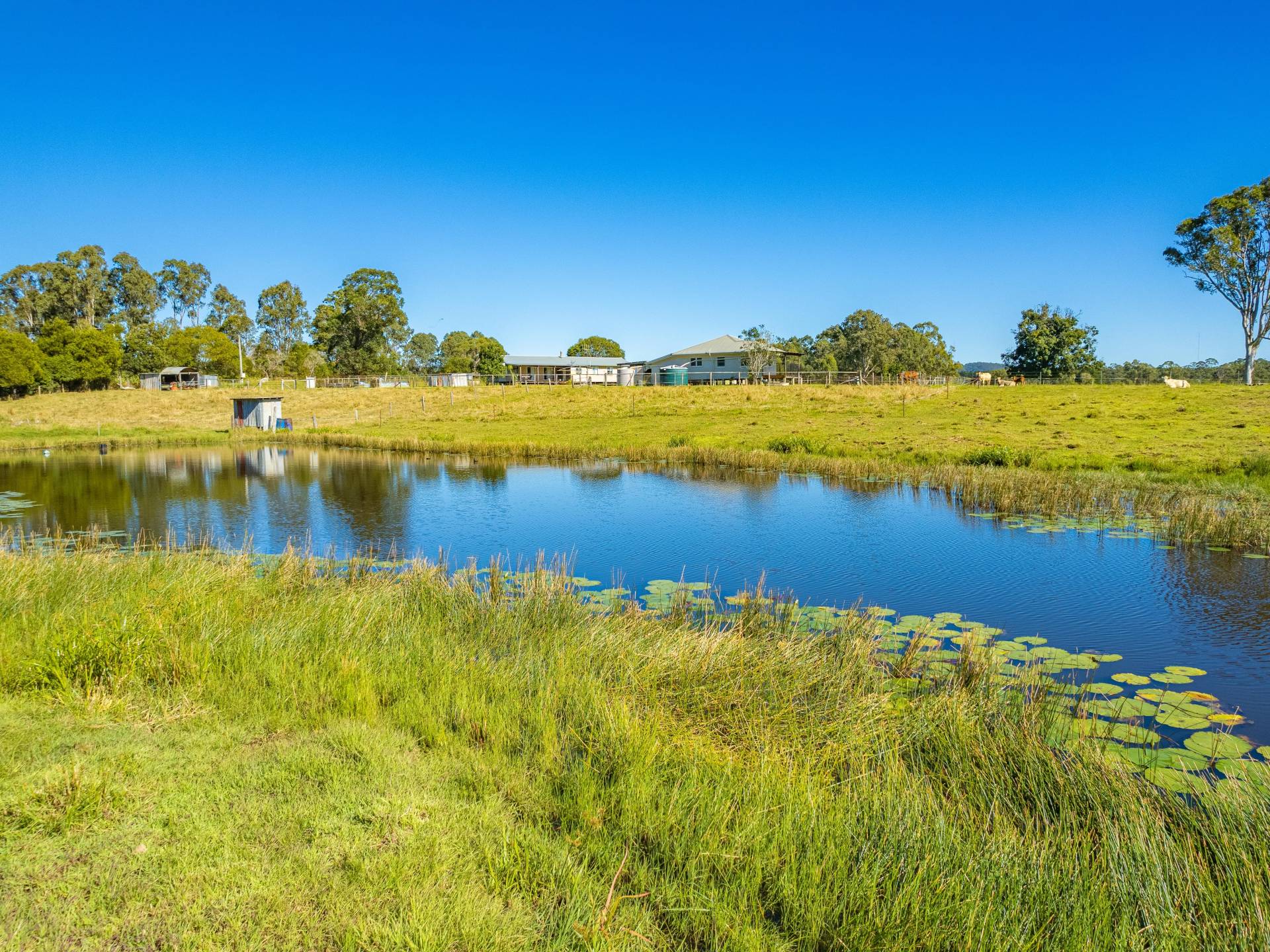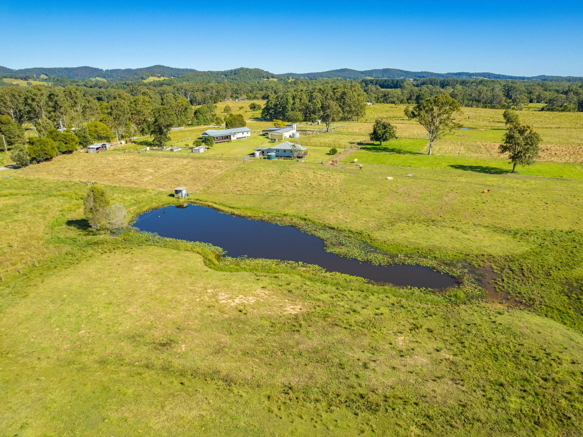 The main weatherboard home has a lovely country feel, featuring 4 large bedrooms with high ceilings, exposed beams and timber floors, a timber kitchen, a wood heater in the main lounge area, and a front and rear porch. The generous master bedroom with ensuite and walk-in robe provides the perfect retreat with expansive views across the property. The north-facing rear deck of the main living area is the perfect place to stop, sit and survey the property and keep an eye on your all livestock. The main home is located to give you virtually uninterrupted views of your entire property, to keep an eye on all your livestock within the comfort of the main home.