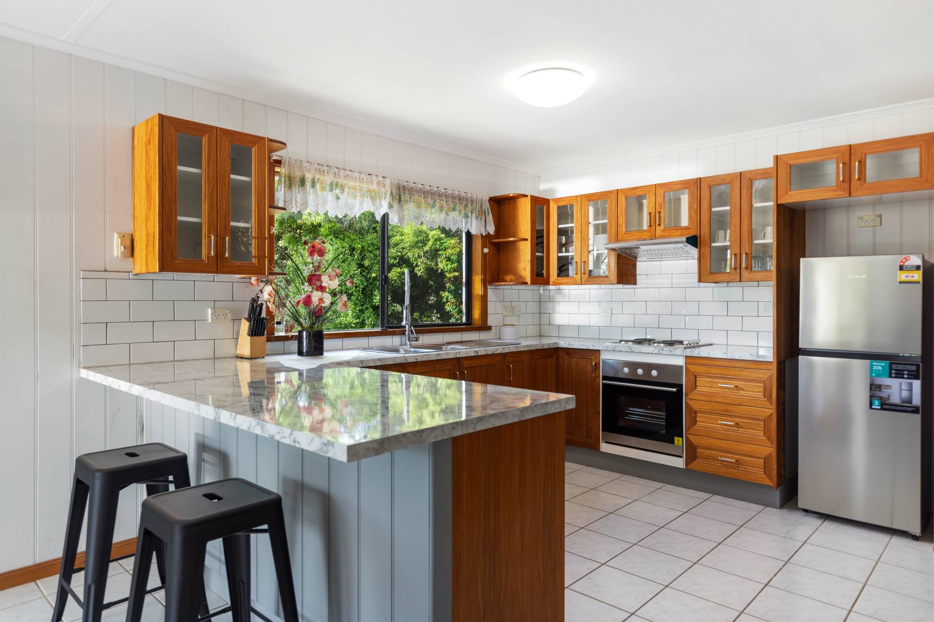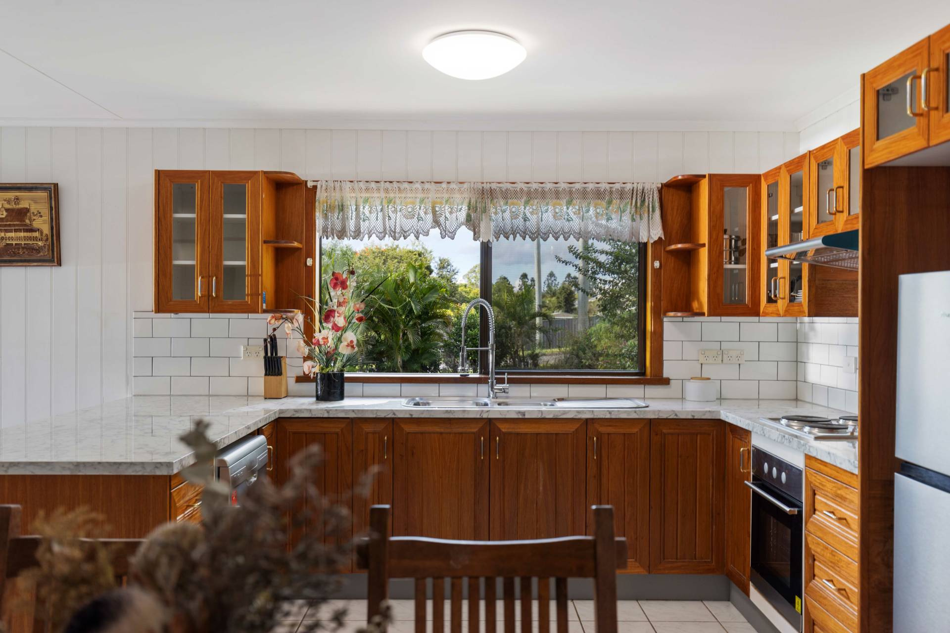 Kitchen cabinets are solid timber with built in upper cabinets and loads of storage space with a separate pantry.