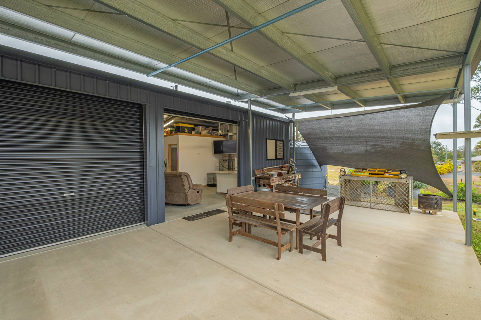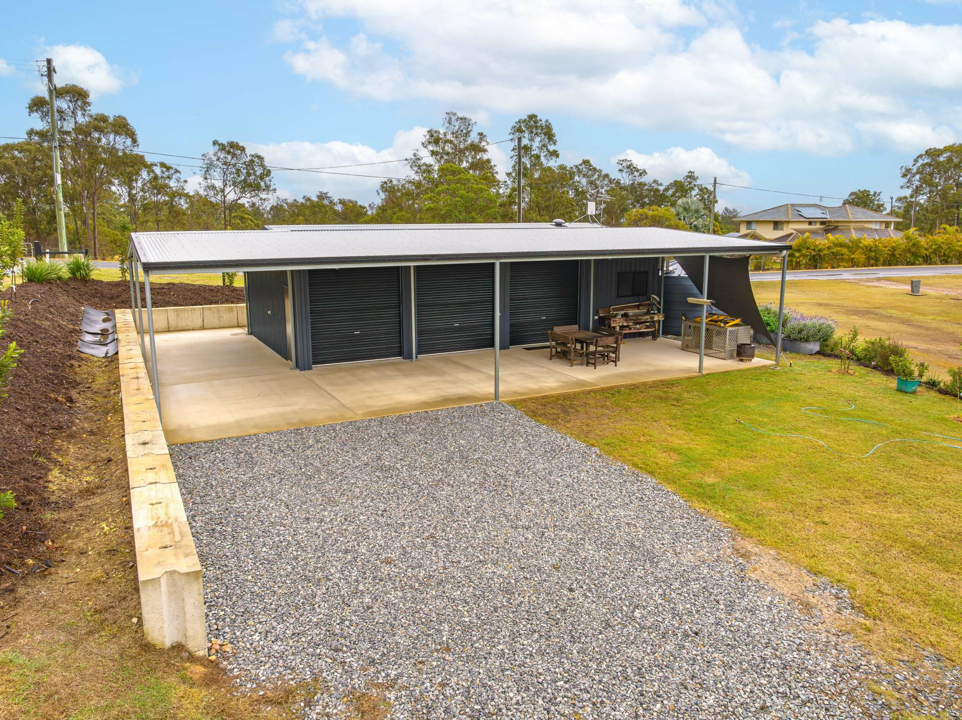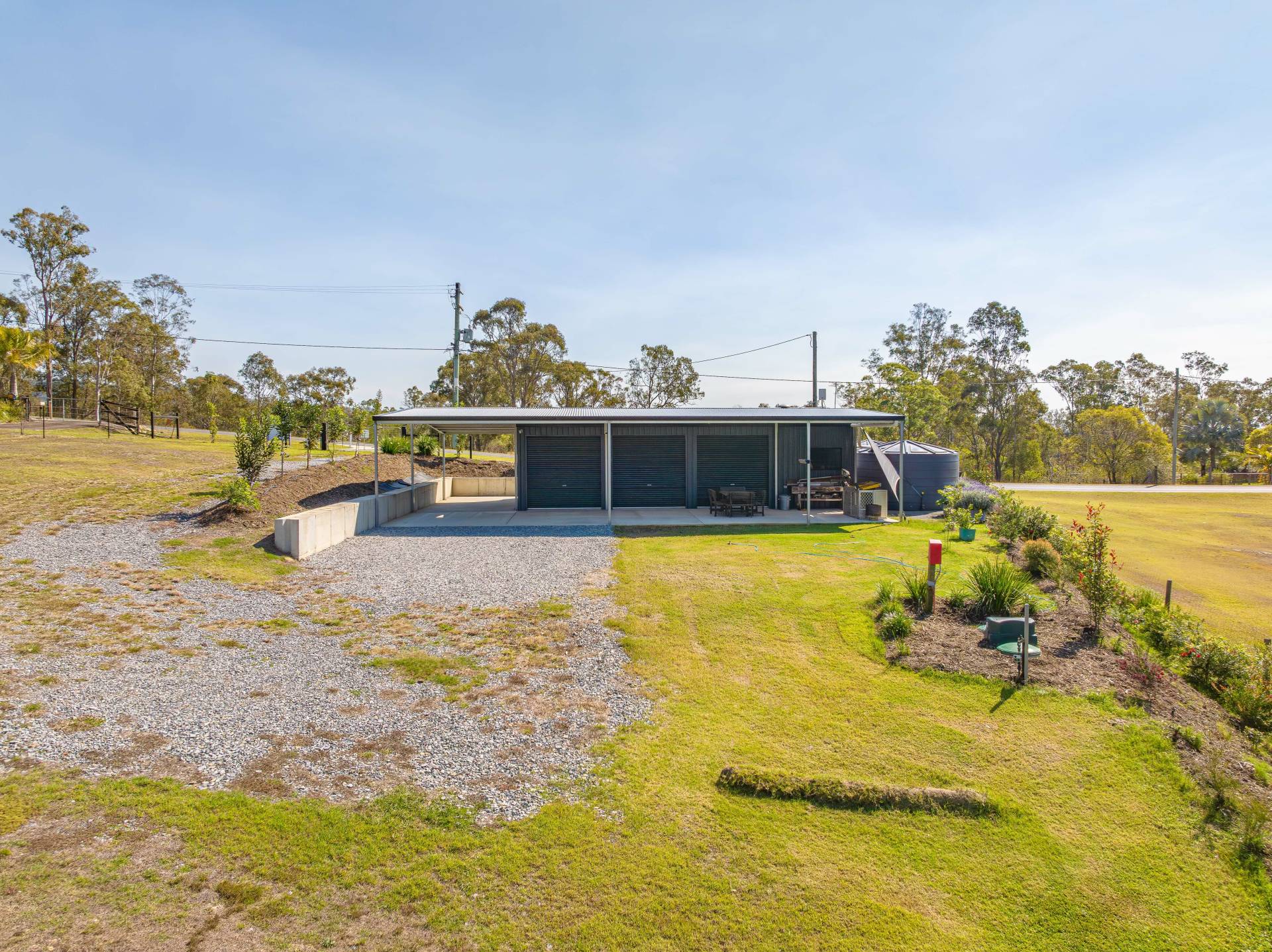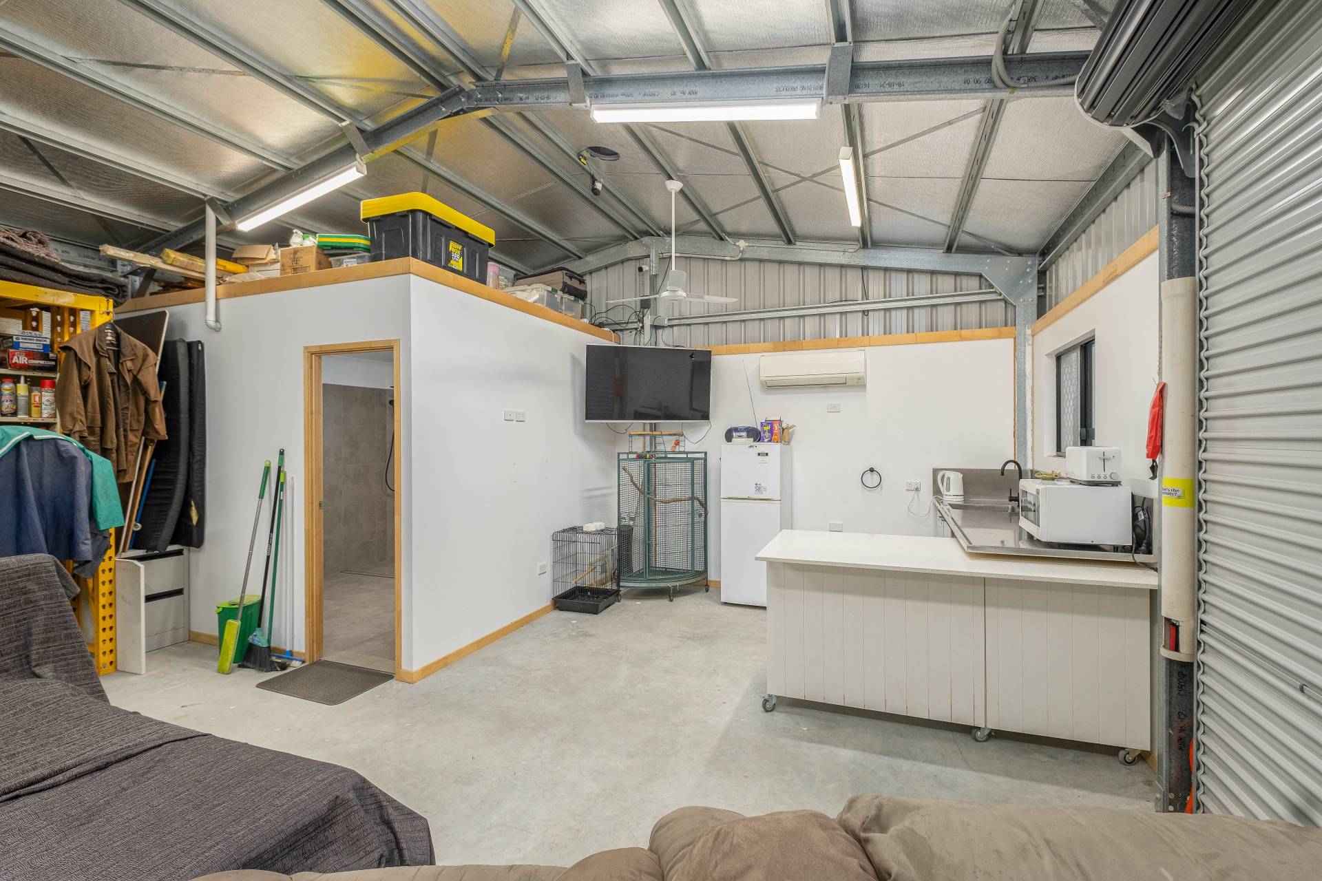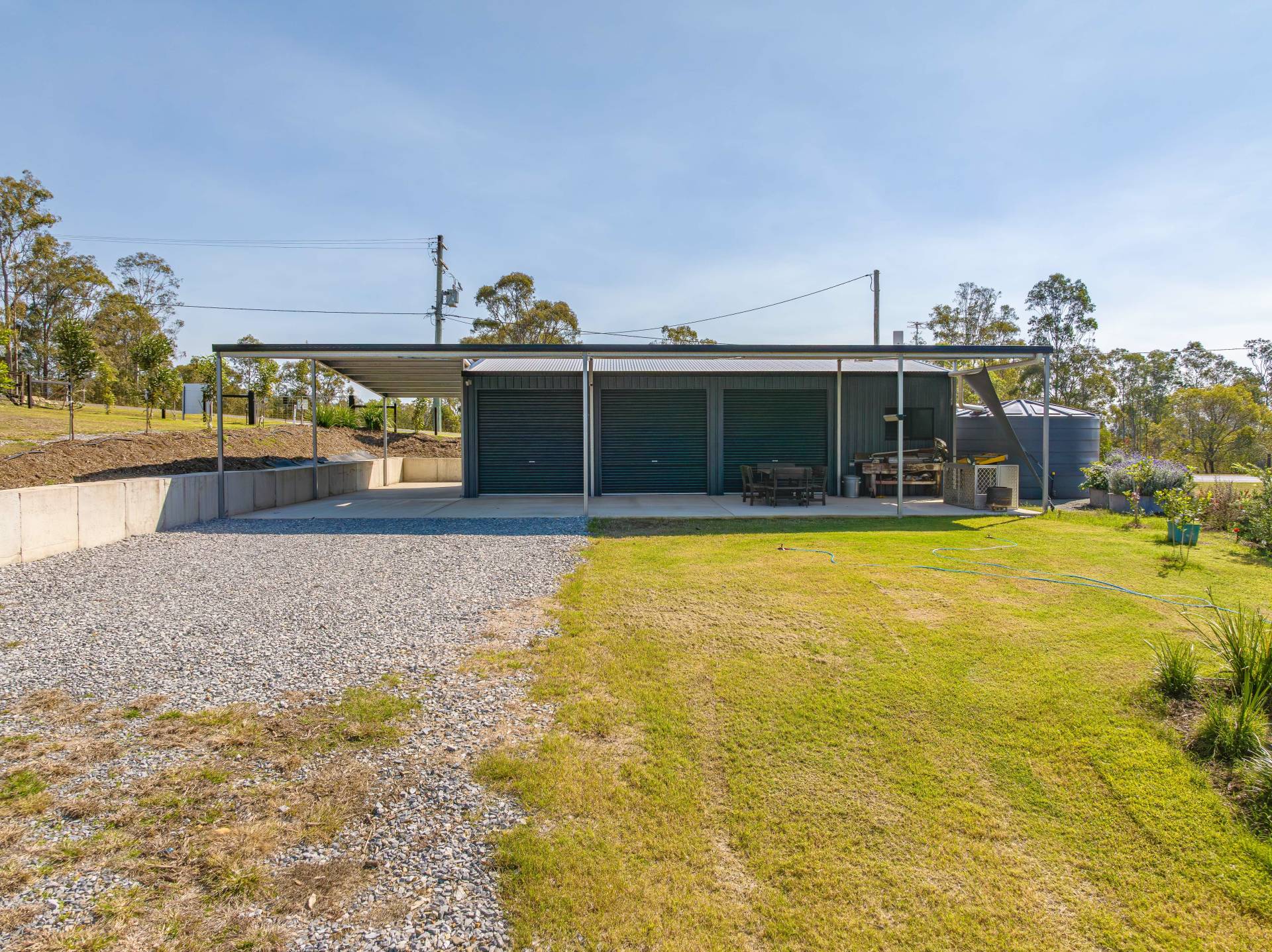 Located on the land is a large fully insulated shed with a kitchenette with split system air conditioner, large bathroom with laundry, 3 phase power and plenty of space to store your cars, boats or caravans.
