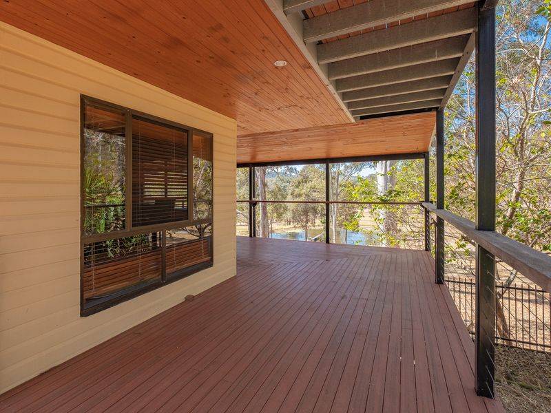 HUGE wrap around outdoor verandah with glass sliding doors from the living area overlooking views of the dam and acreage beyond.