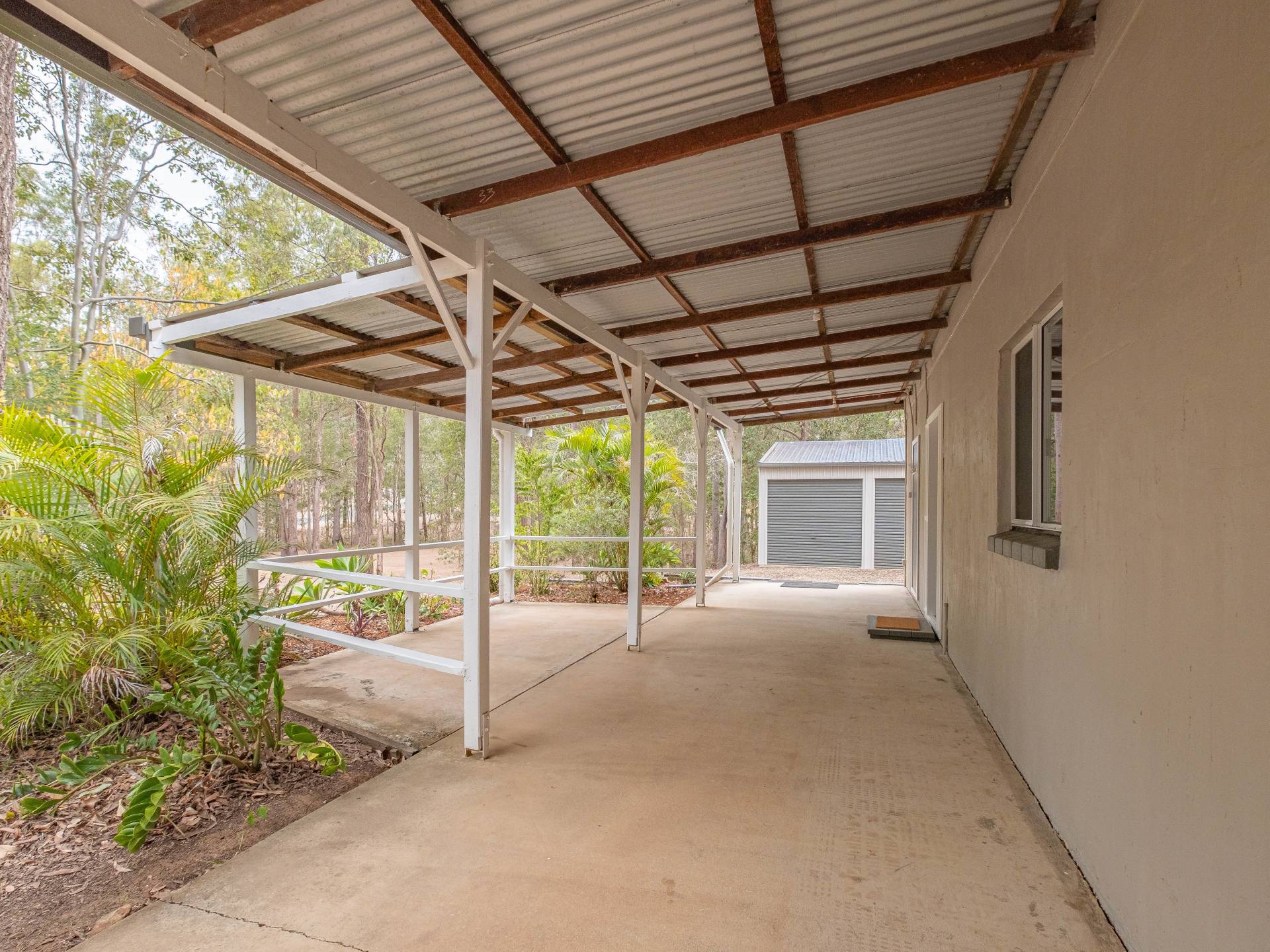 There is a 3-bay shed with power on a concrete slab. Additionally there is an extra high carport perfect for the boat or caravan.
