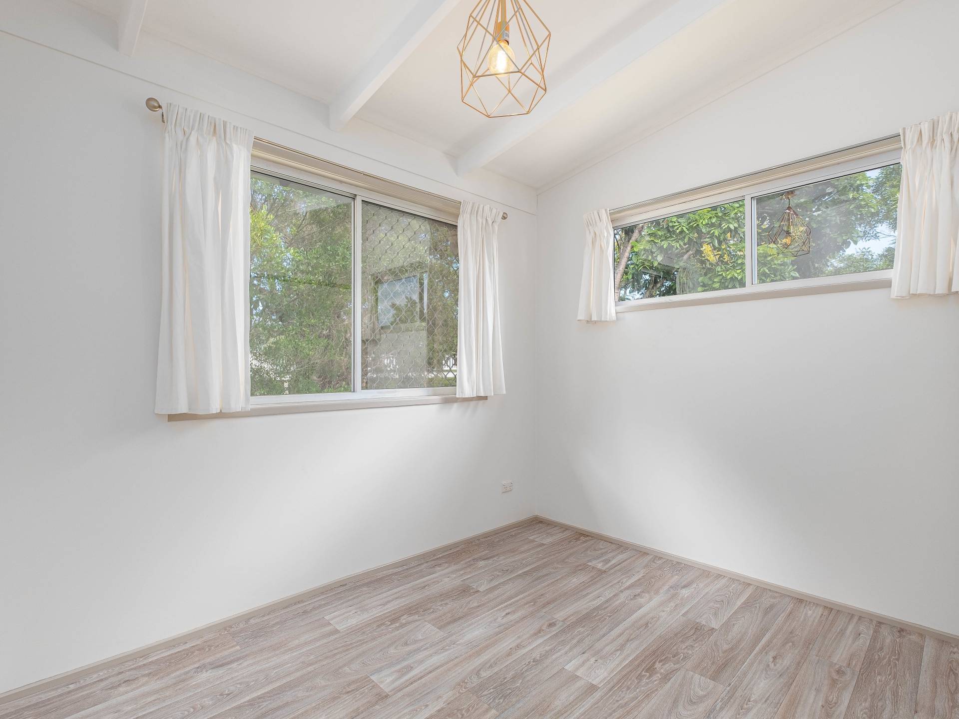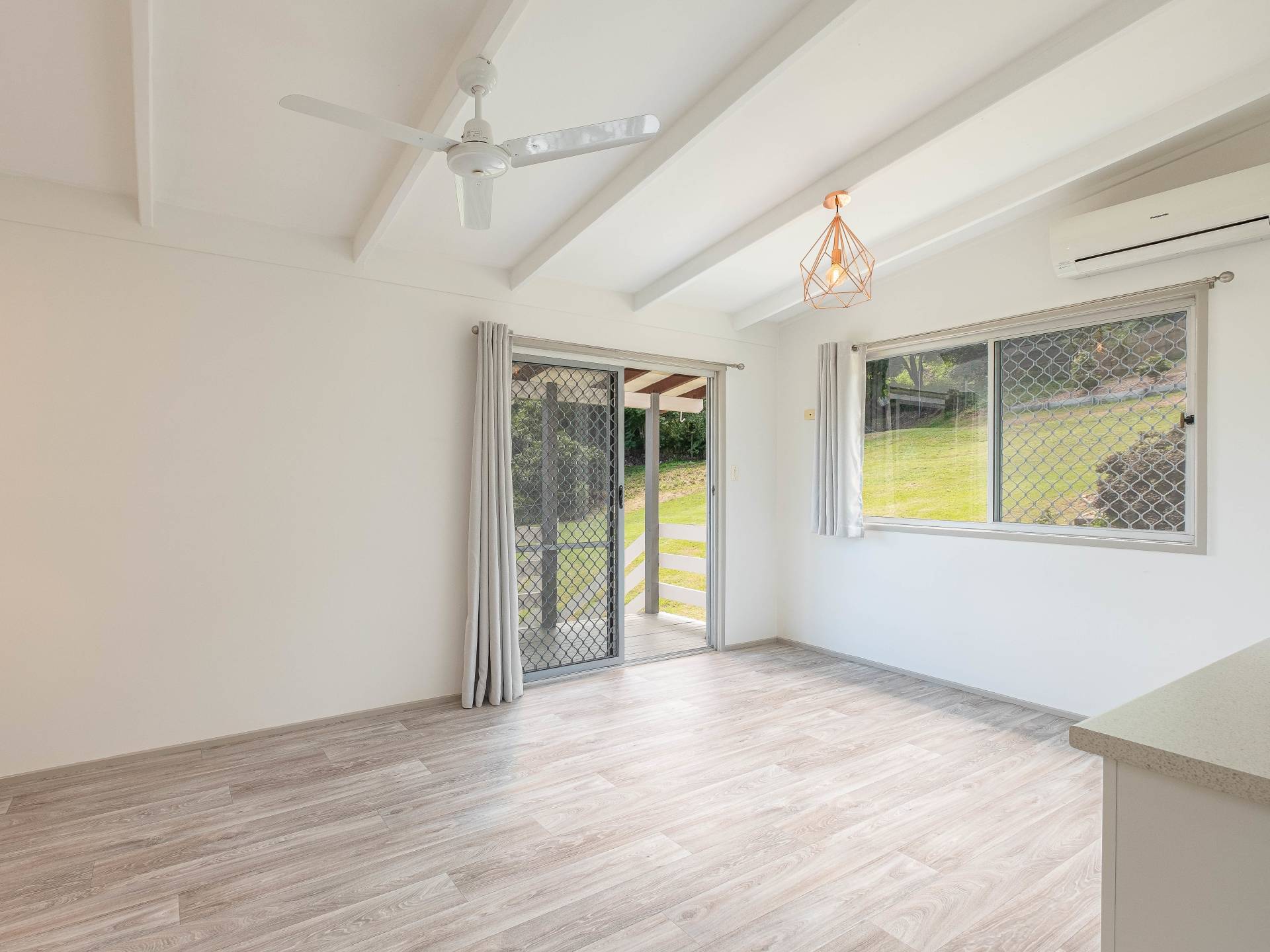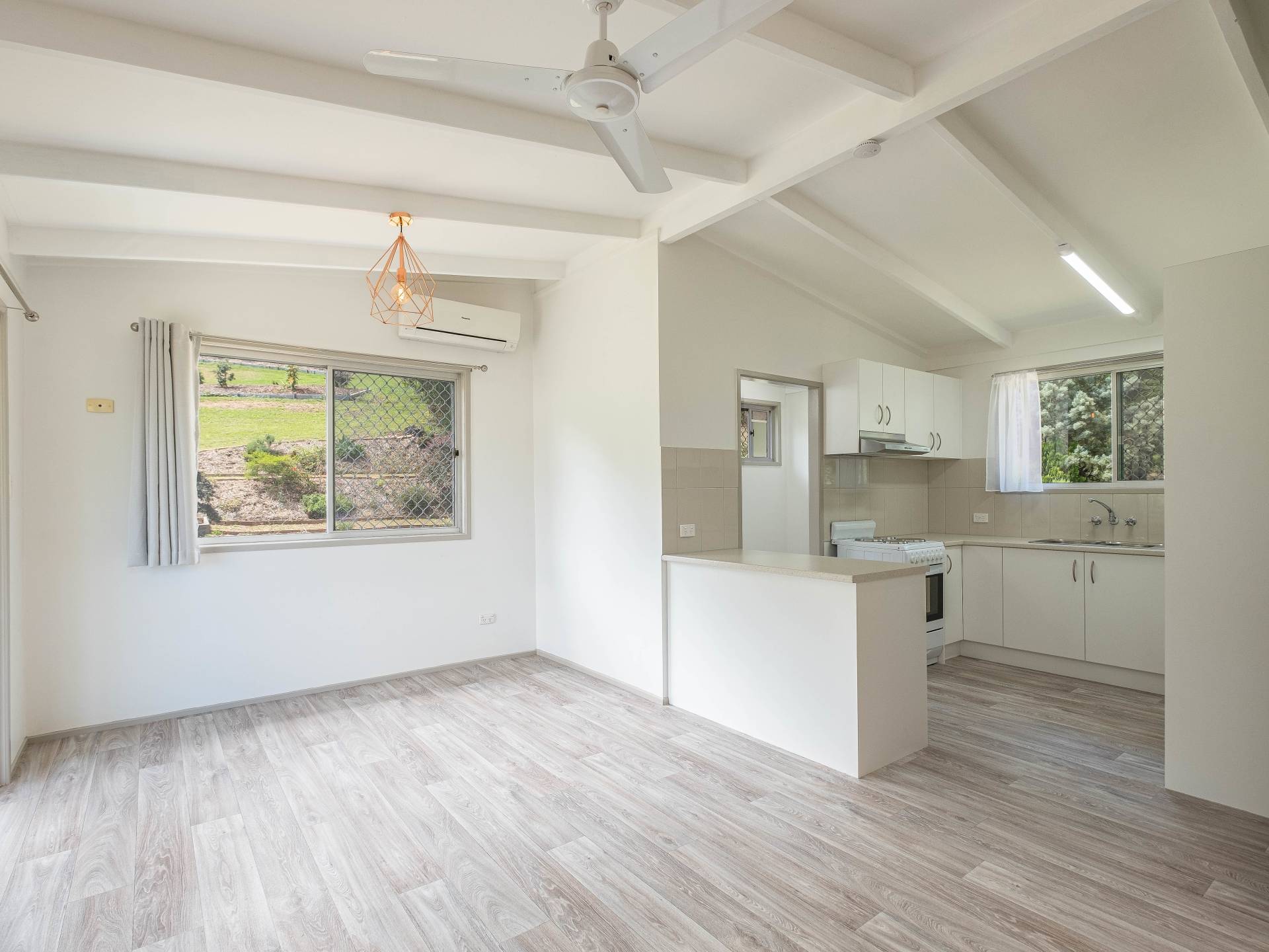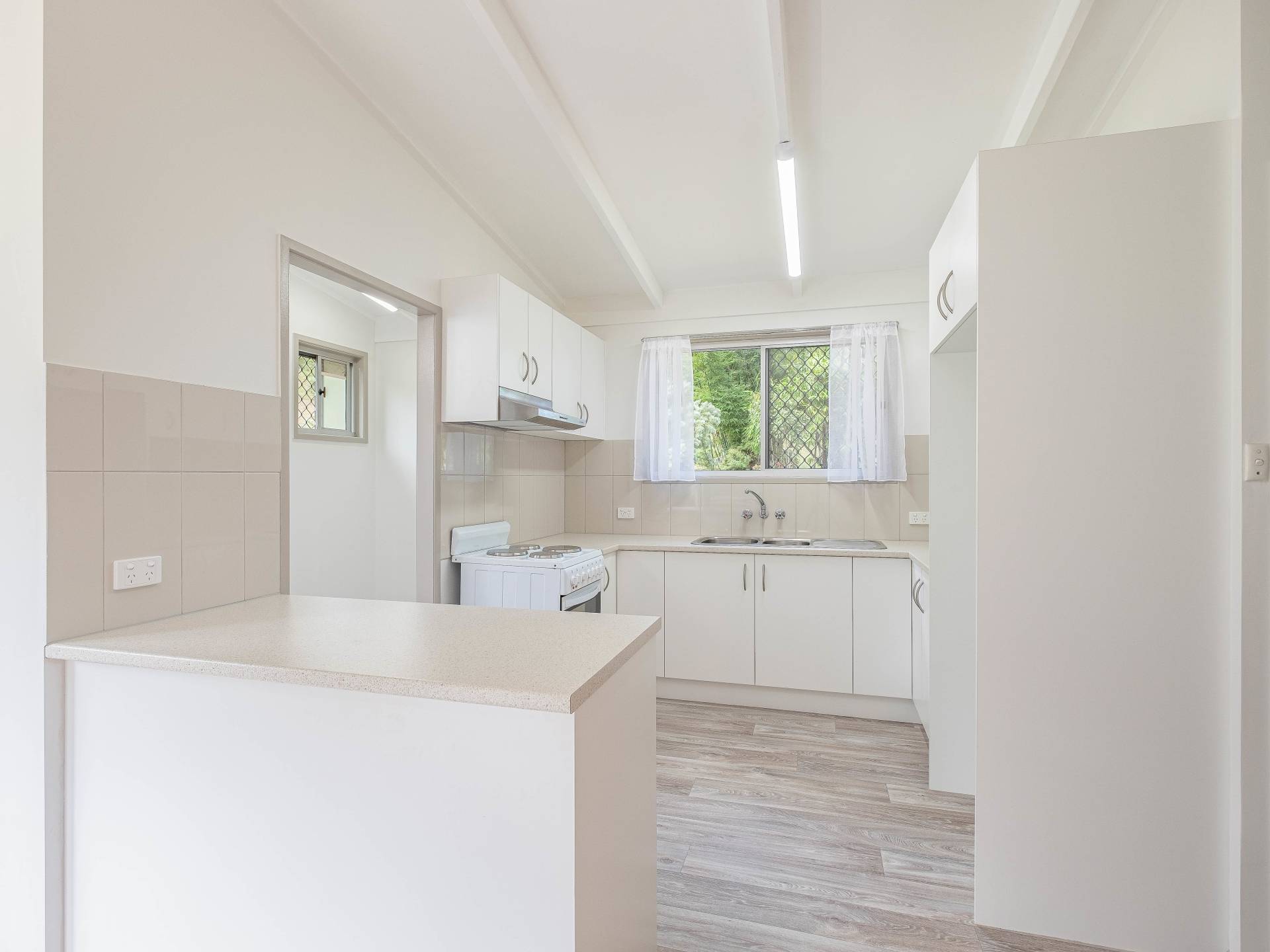 Walk into the renovated living and kitchen area with new laminate wood floors, skilion roof, split system air conditioning and a new kitchen.
