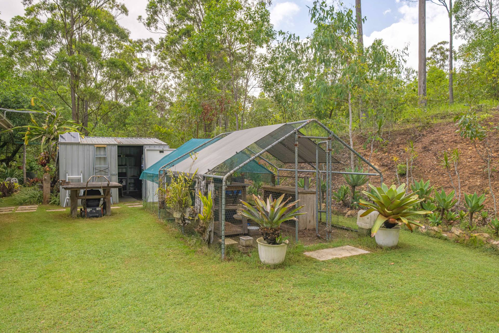 The property has an impressive chicken coop, large shade house for the avid herbalist or orchard enthusiast. To the left side of the property there's a snaking seasonal creek perfect for the local wallabies and birdlife that make this place home. To the front of the property there is a large 5mx6m carport for car accommodation, a garden utility shed and 2 x 5000gl water tanks to the rear. The owners have really worked on ensuring the property flows with stunning trails and garden beds. This property has views looking across the tree line to the creek and gardens.  You could be anywhere in the world!