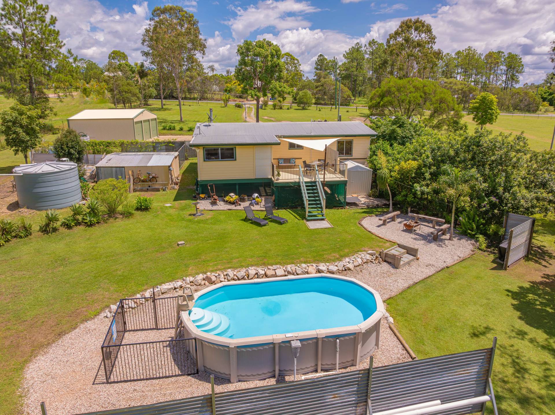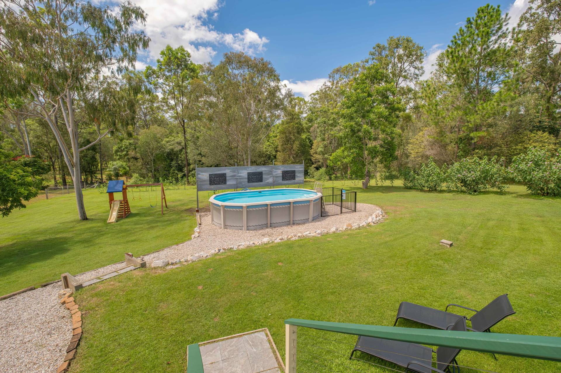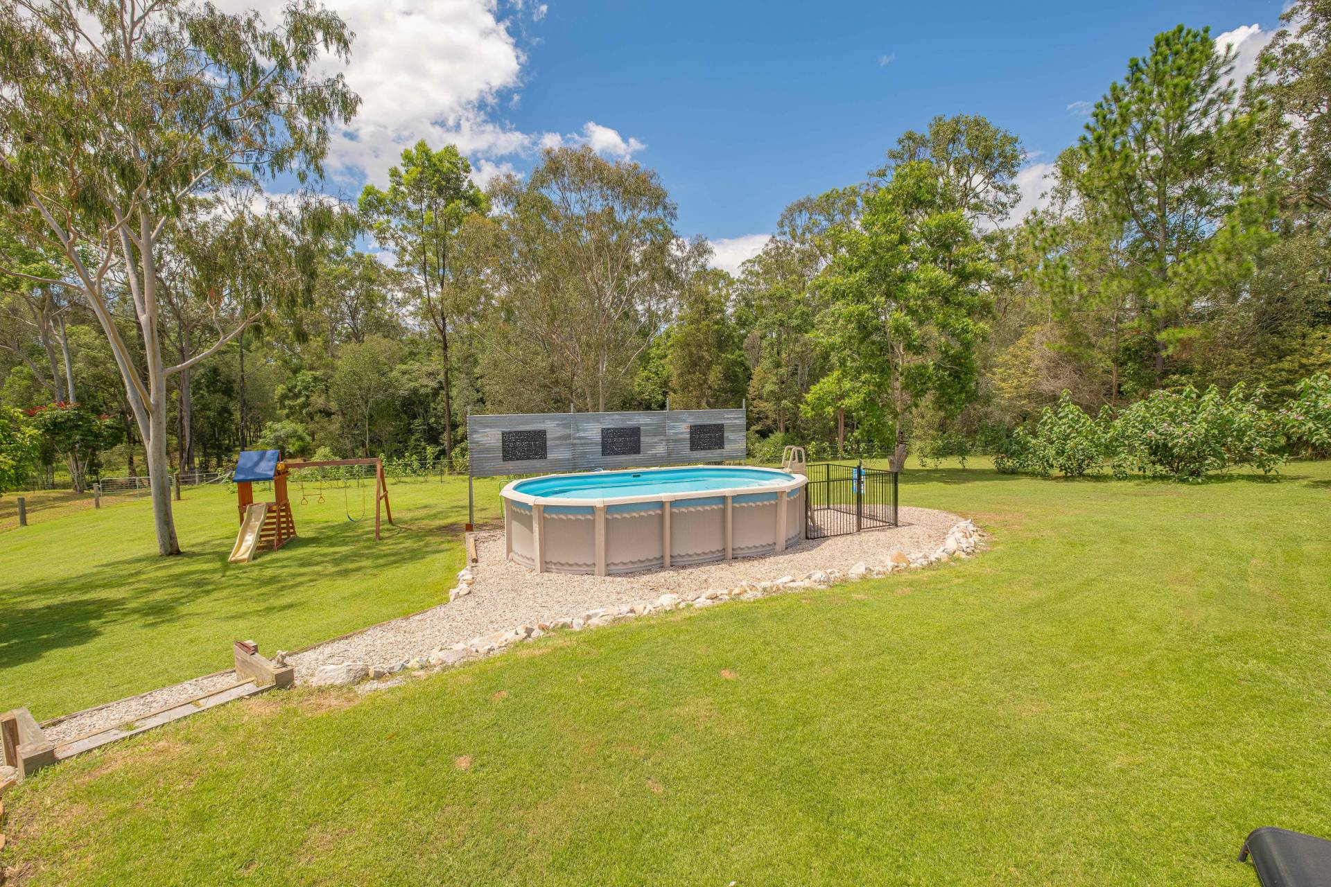 Outside: Large patio for entertaining at the rear or sitting out and enjoying the serenity of your surrounds with above ground pool and landscaped gardens.