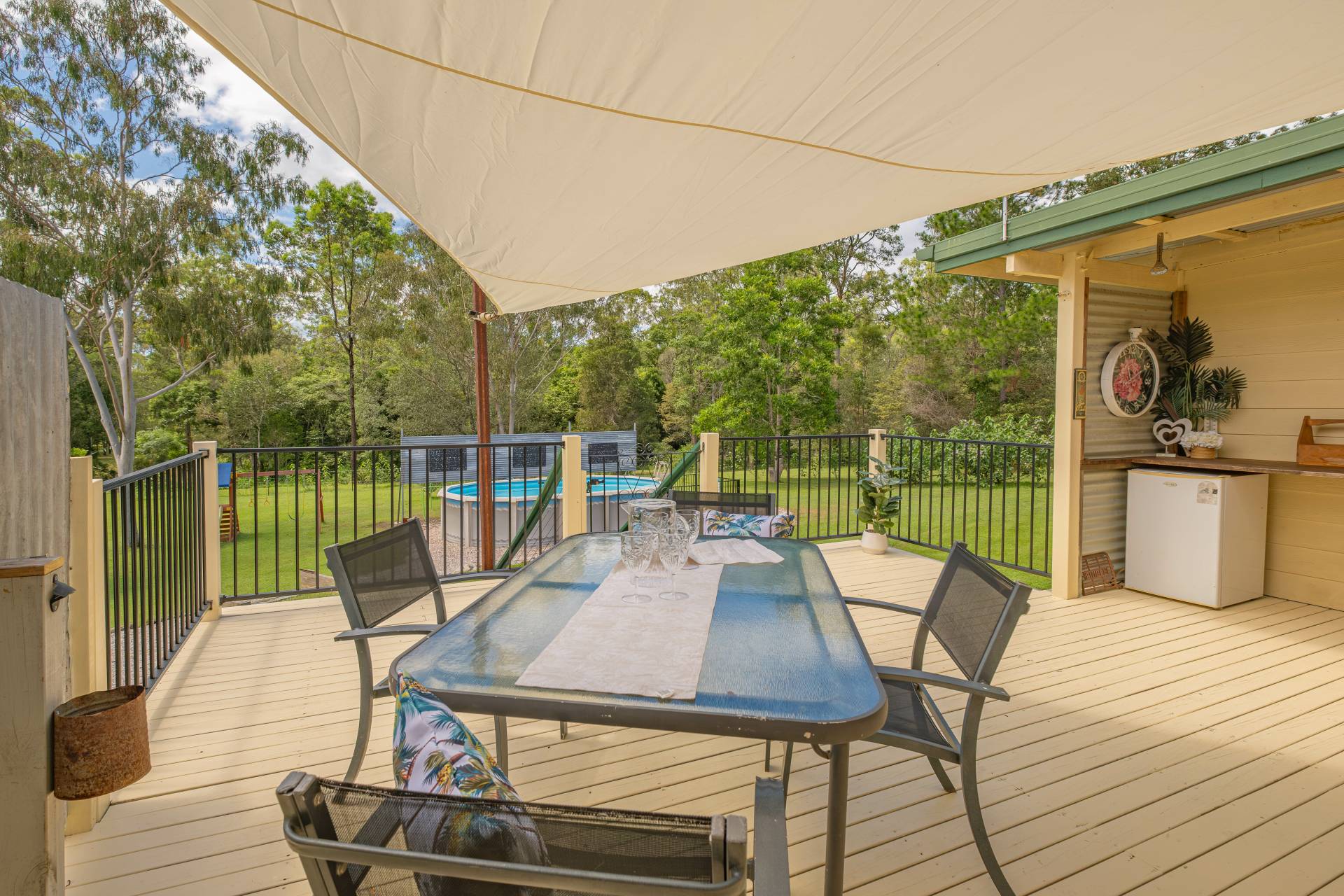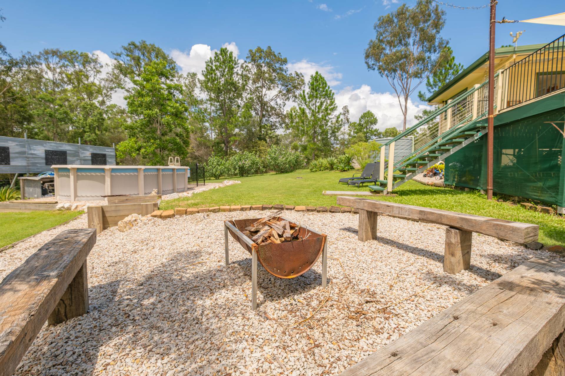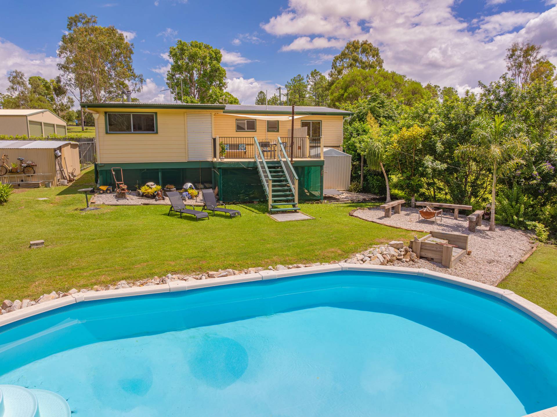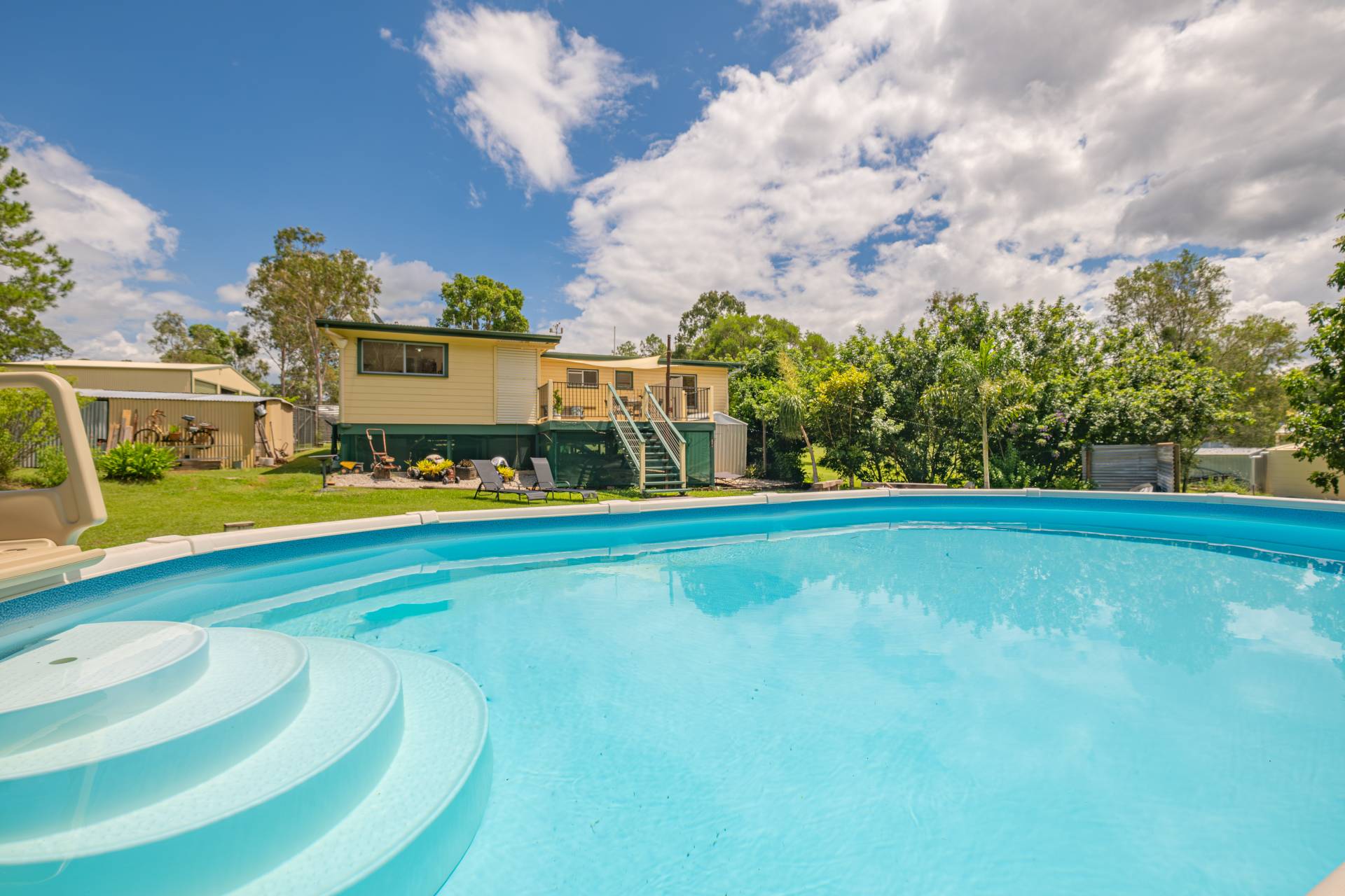 Outside: Large patio for entertaining at the rear or sitting out and enjoying the serenity of your surrounds with above ground pool and landscaped gardens.