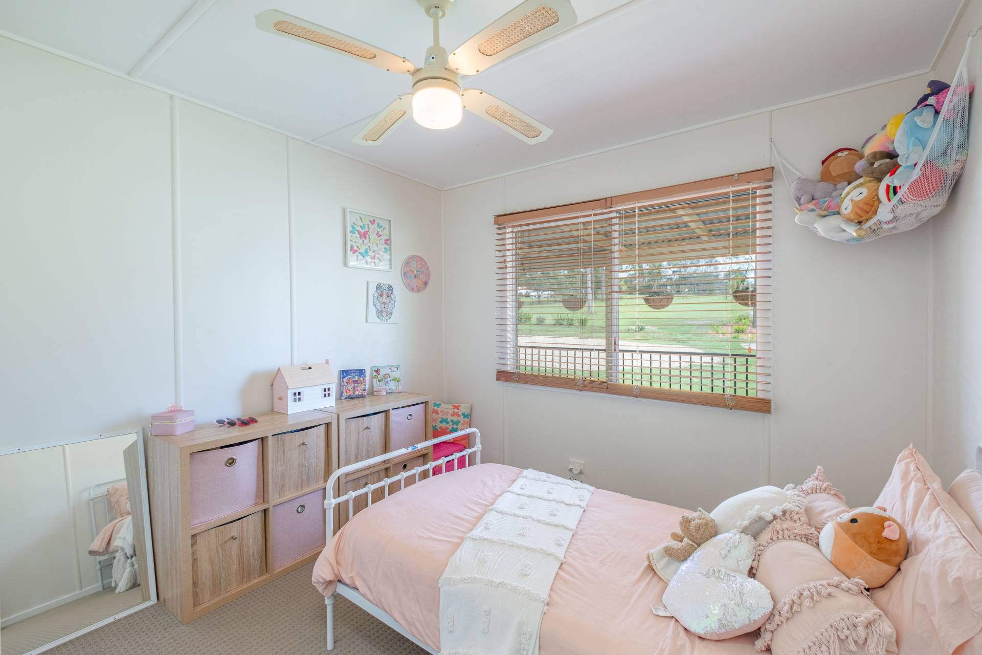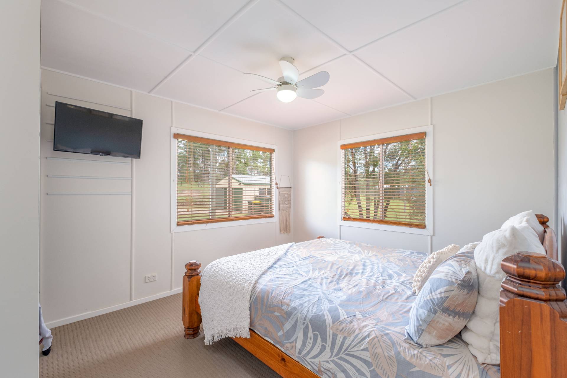 Home: 3 carpeted bedrooms with ceiling fans.